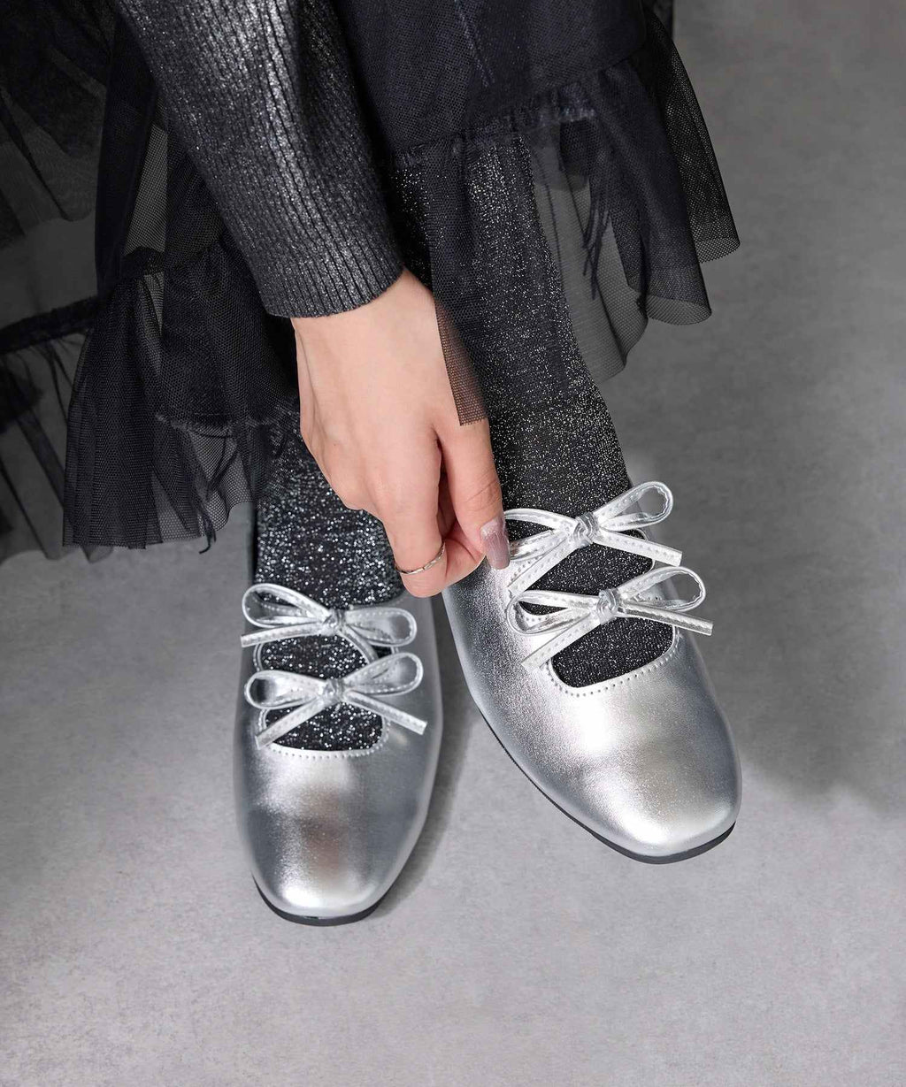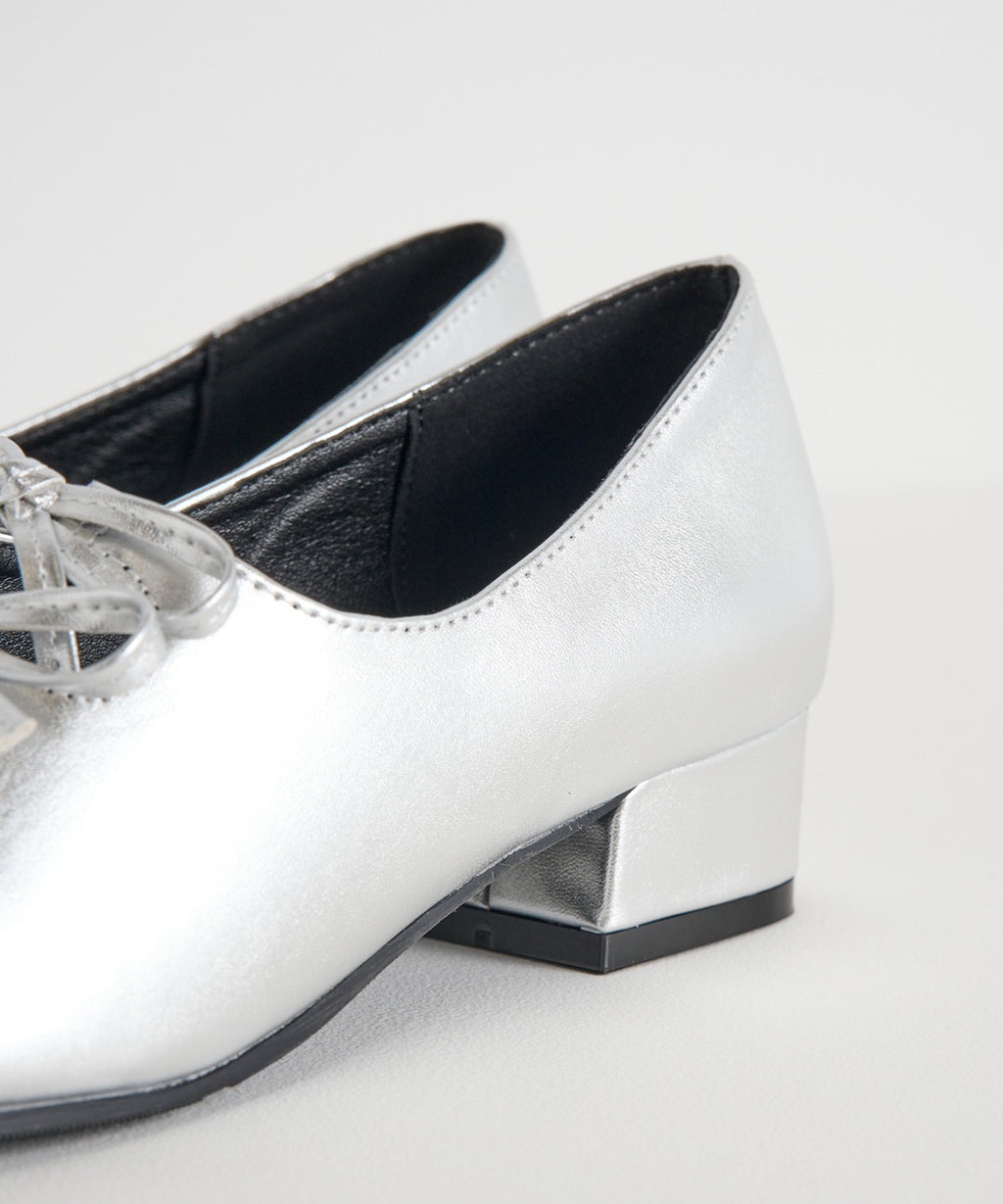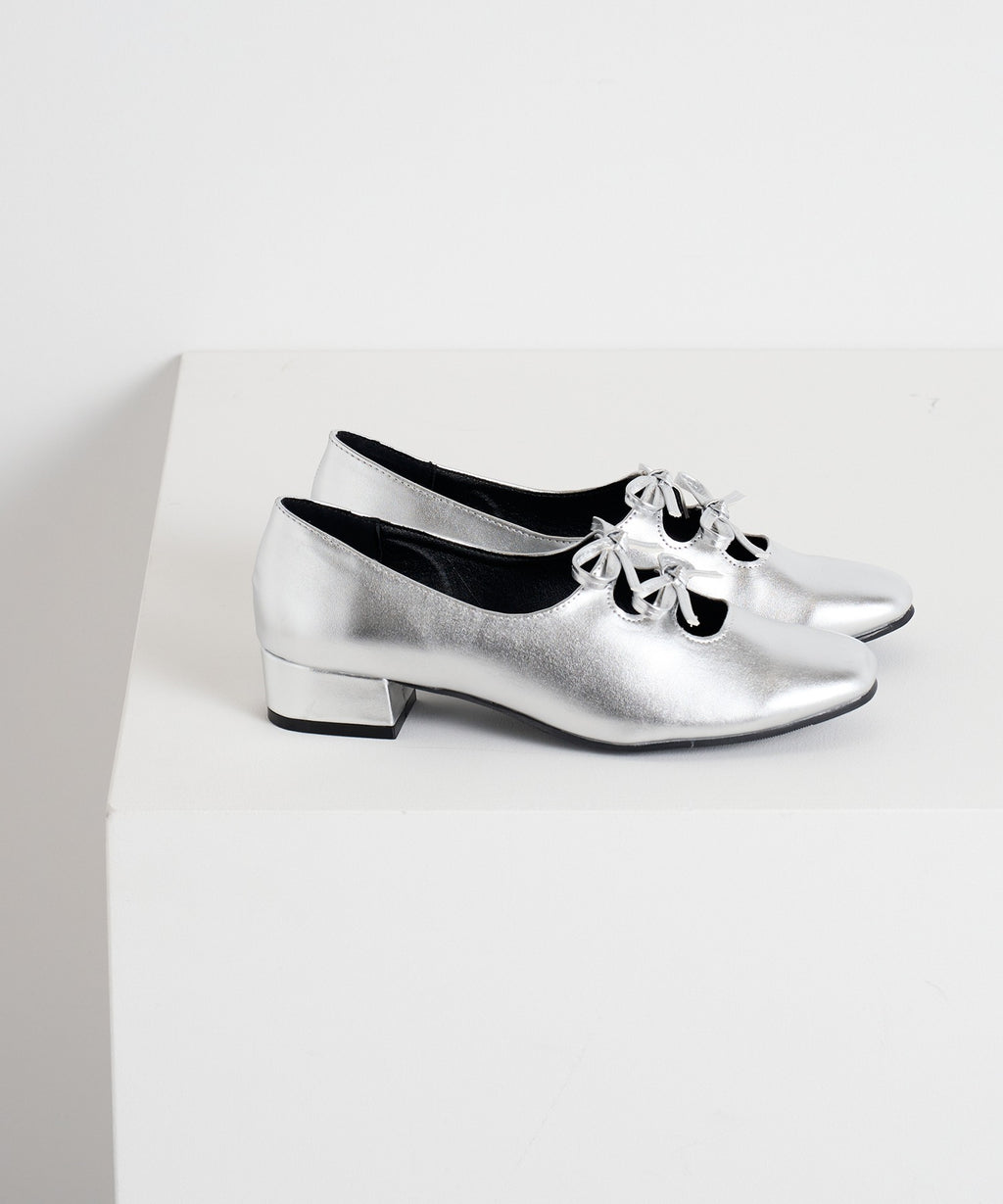 MAISON BREEZE reveur リボン パンプス シルバー ローヒール メタリック フラットシューズ シューズ 靴 エナメル