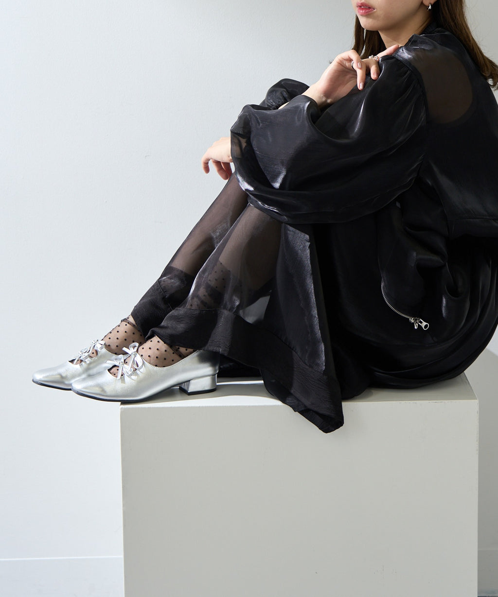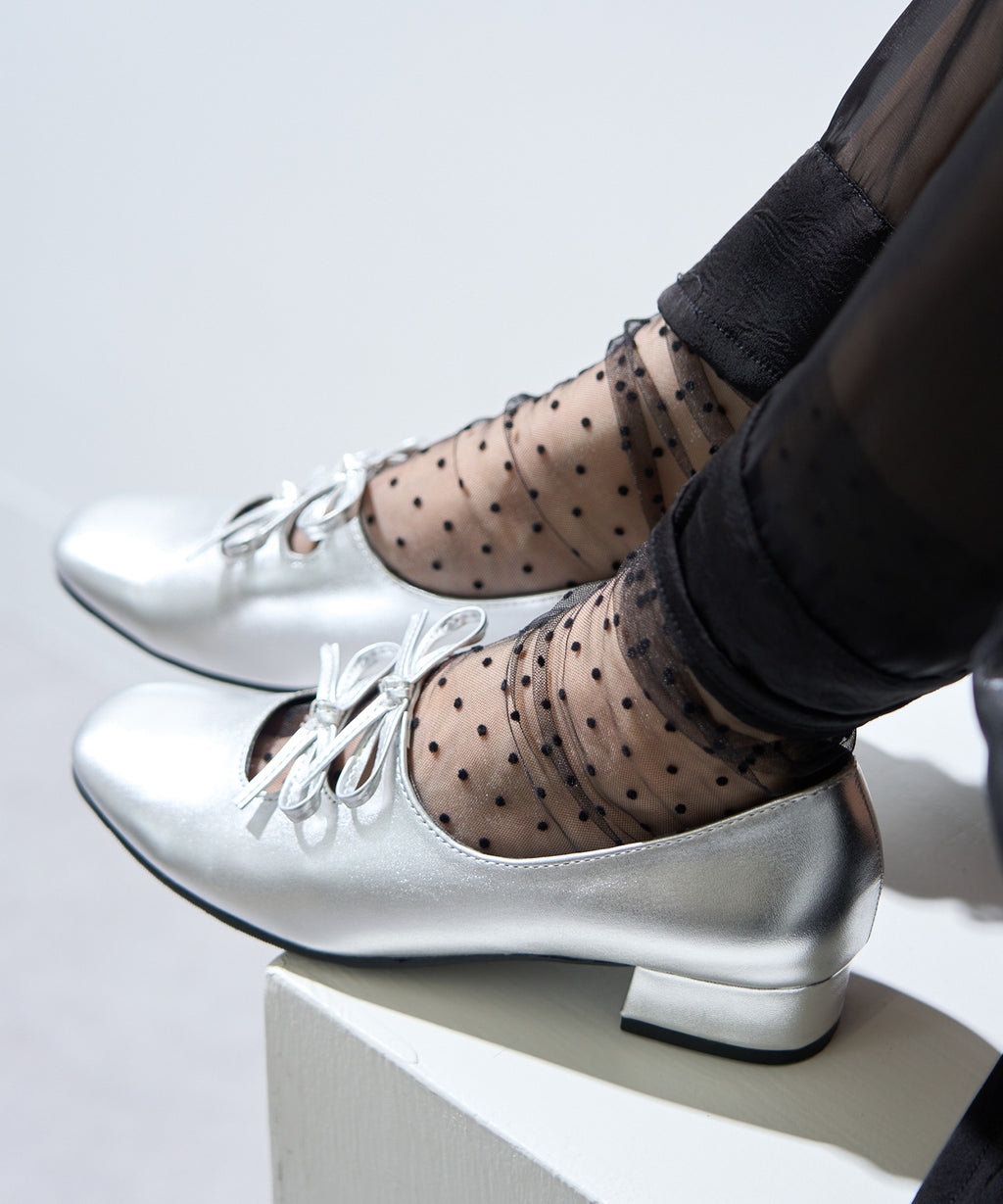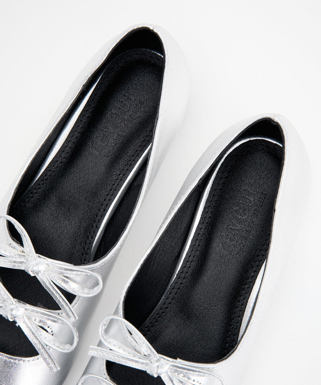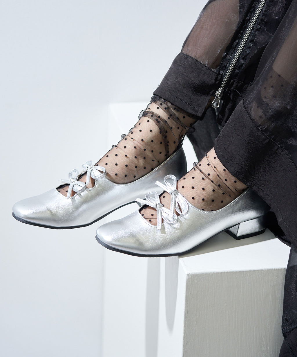 MAISON BREEZE reveur リボン パンプス シルバー ローヒール メタリック フラットシューズ シューズ 靴 エナメル
