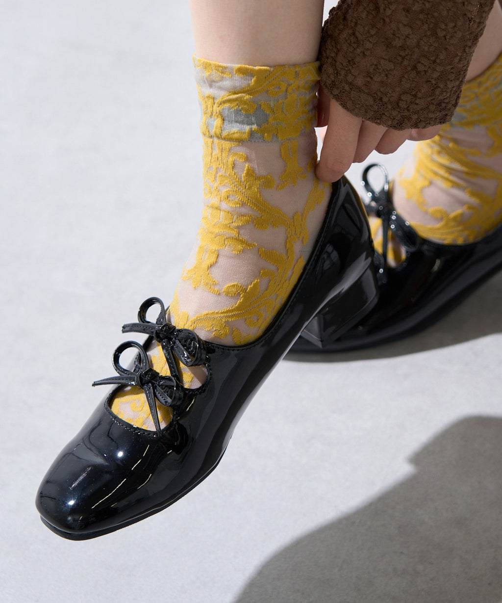 フェミニンなダブルリボンがトレンド感のあるパンプス