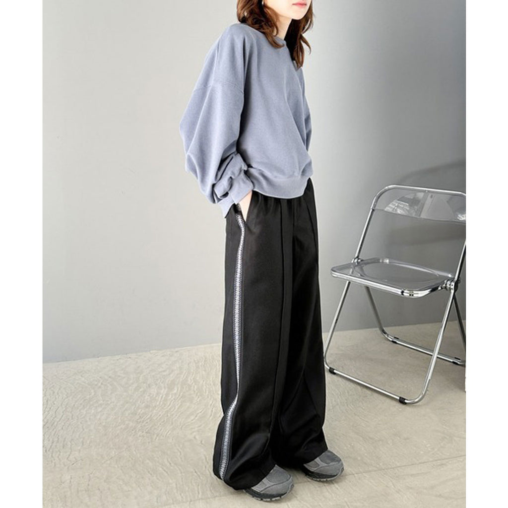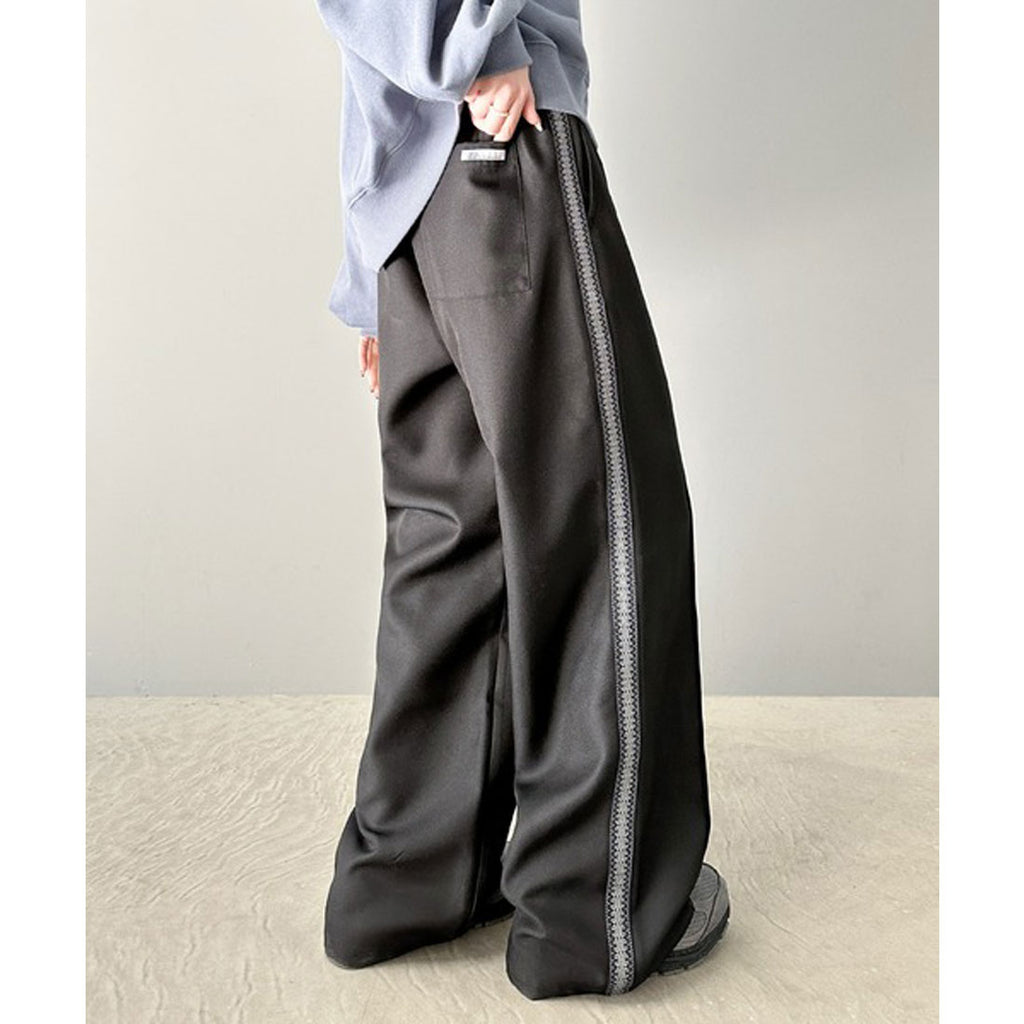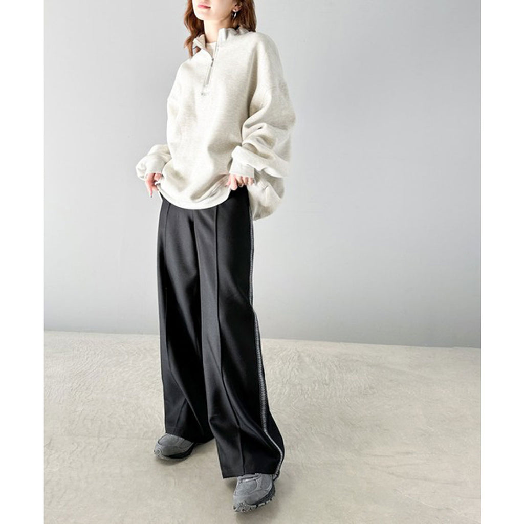 クラシカルな雰囲気も醸し出してくれる、モード感漂うワイドトラックスラックス。