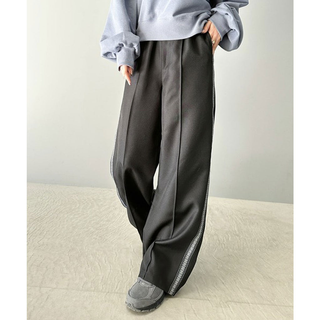 トレンドのトラックパンツを側章デザインと素材感でキレイ目にも穿ける商品にアップデート。
