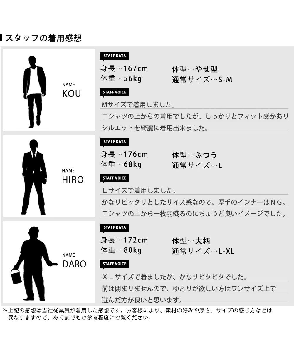 身長:188cm 体重:69kg 普段着用サイズ:L 着用サイズ:L