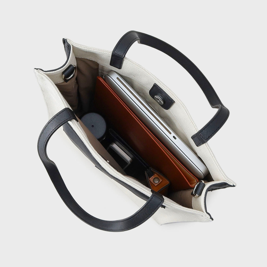 カジュアルさと上品さを兼ね備えた2WAYトートバッグ。