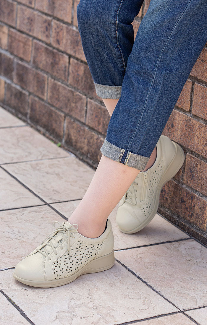 涼しげで華やかなパンチングデザインがおしゃれなコンフォートシューズ。