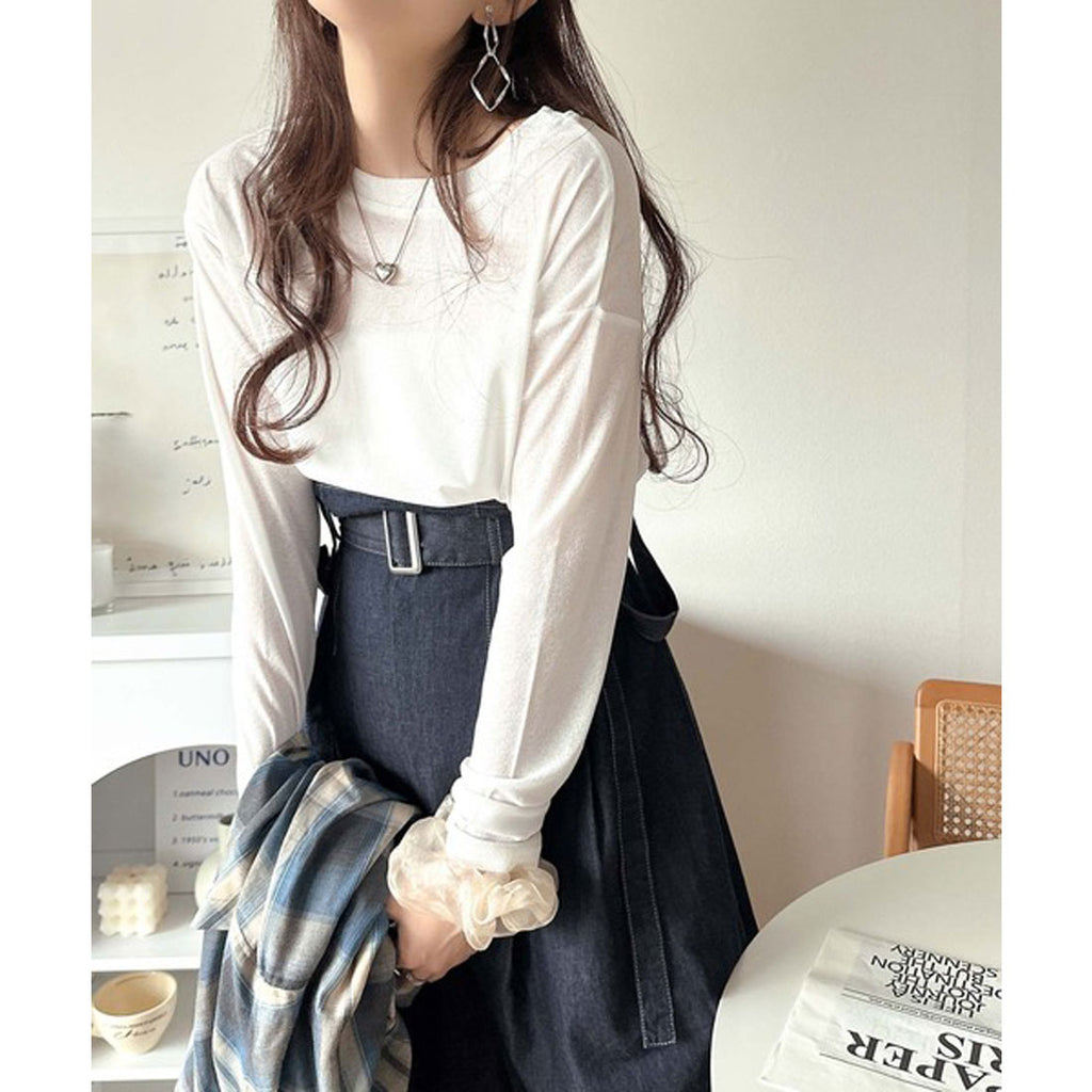 バストの太ベルトがアクセントに、程よいルーズ感がこなれた印象に。