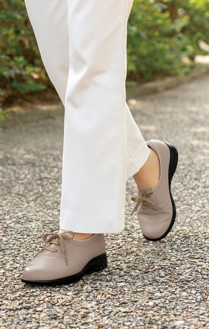 幅広&脱ぎ履きもラクなレースアップシューズ。