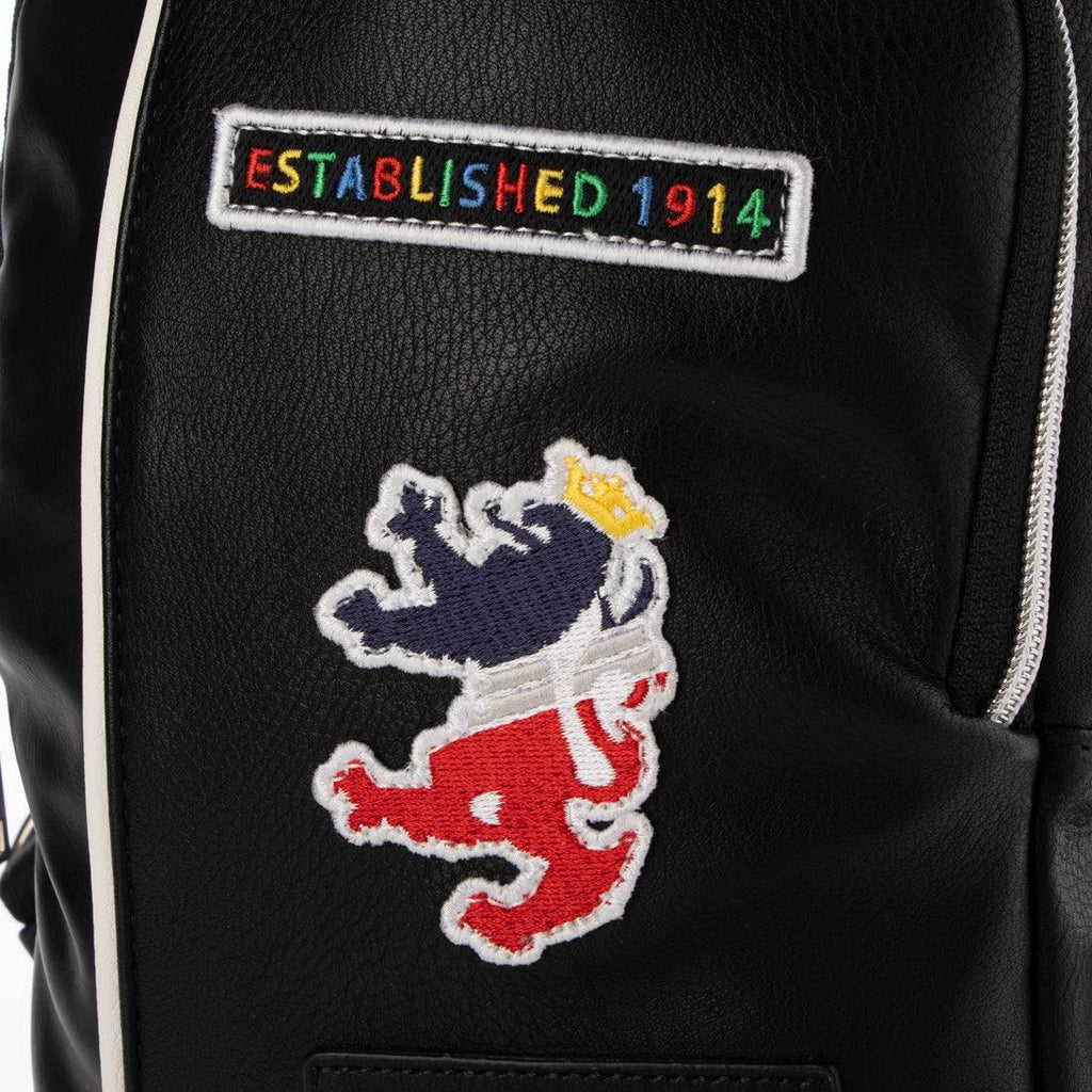 フロントにはエンブレム風ワッペンとブランドロゴが施され、個性的なアクセントに。