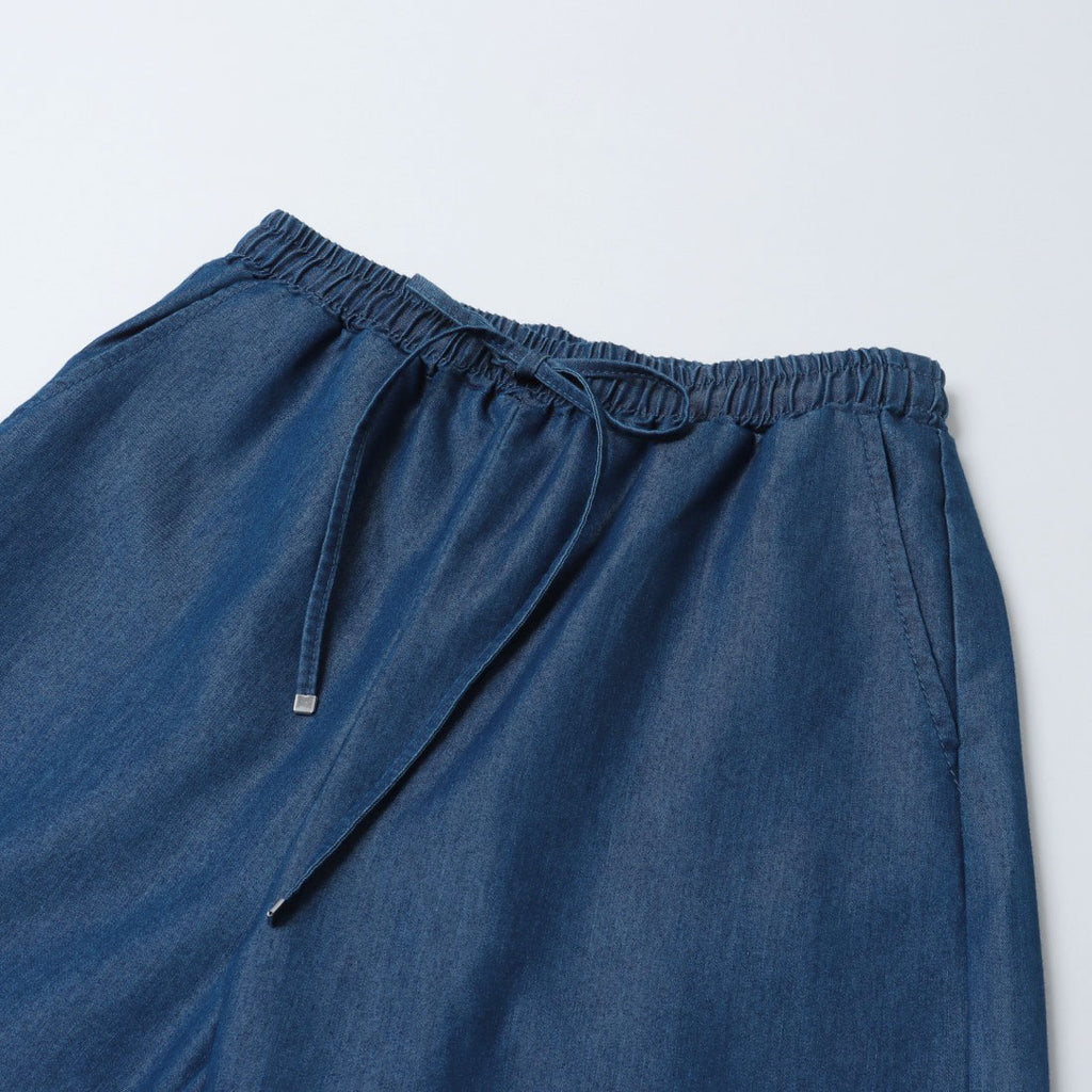 カジュアルなアイテムながら程良い光沢が大人っぽさを演出してくれます。デイリーからお出かけまで幅広く活躍し、さらりとした生地が心地よく、リラックス感もあるのでこれからのシーズン大活躍間違いなしです!ブラウスと合わせてきれいめに、サマーニットとスタイリングするとより女性らしさがアップします。もちろんTシャツやスニーカーでデイリーにも◎暑い日に快適にアクティブに着回せるワイドパンツです。