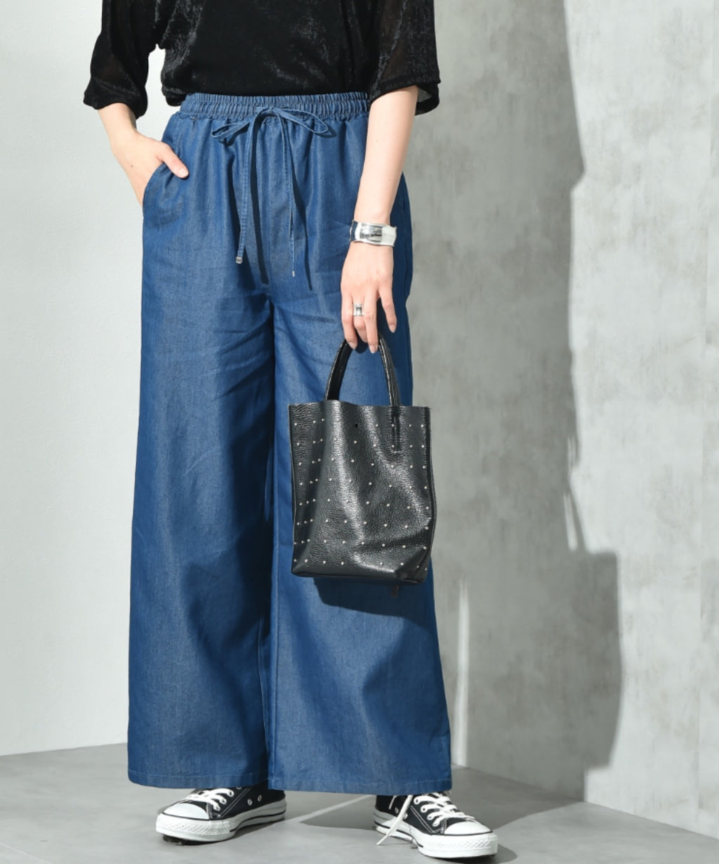 インタープラネット INTERPLANET ライトデニムワイドパンツ