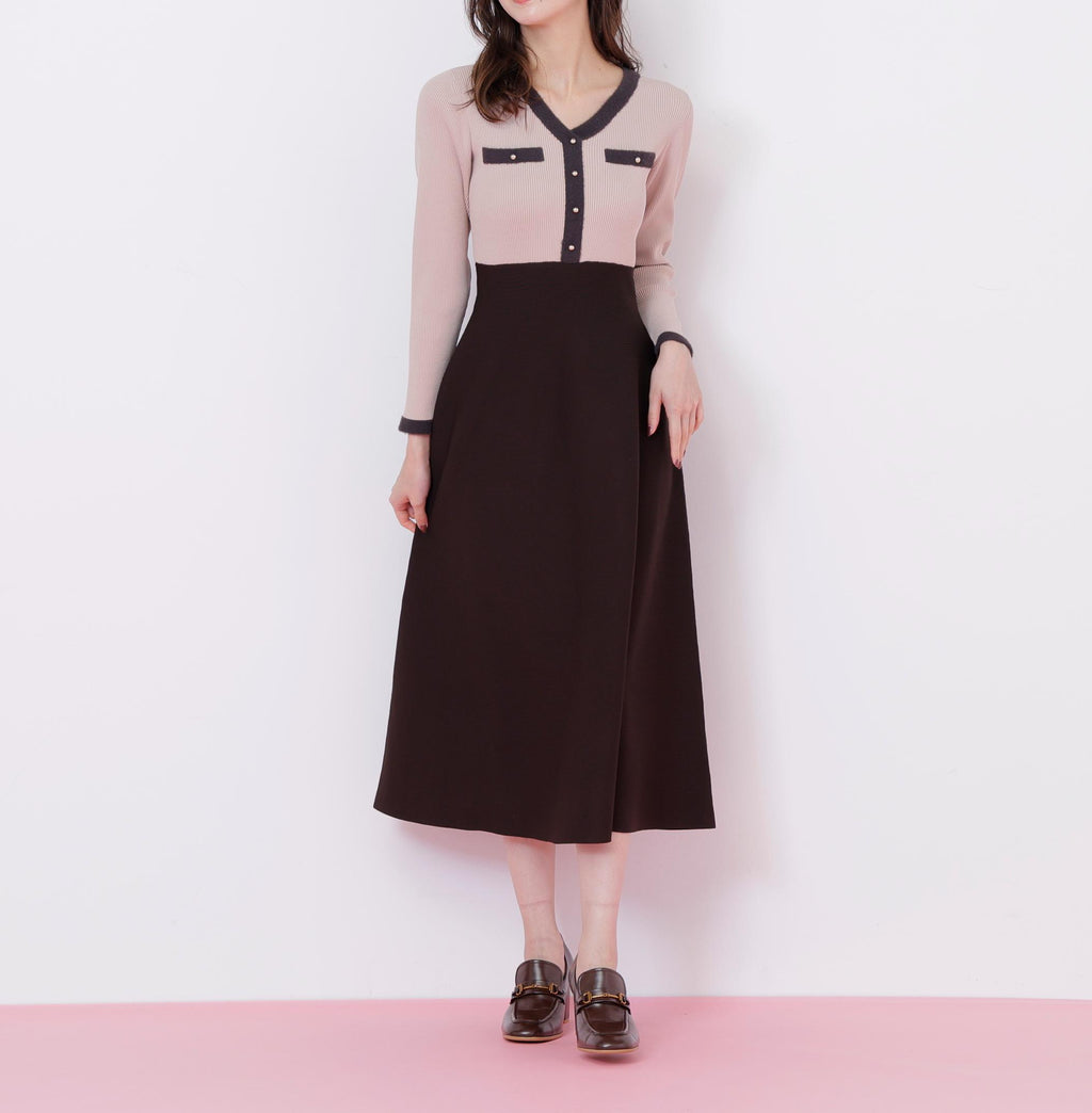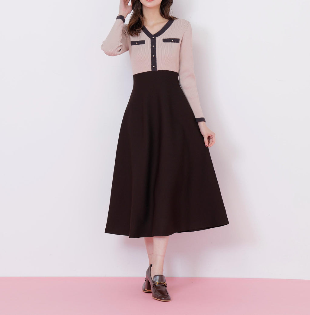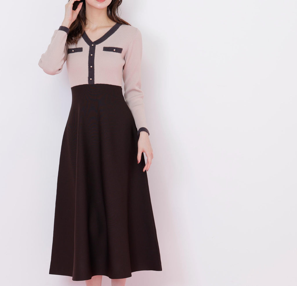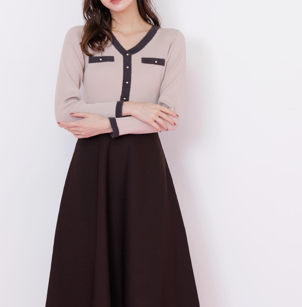 JILL by JILL STUART 定番のポリエステル素材を使用したニットワンピースを、秋冬らしいディテールに仕上げた1枚。襟から前立て、胸と袖口の配色パイピングに、風合いのある短いシャギーを加えたデザインです。小さい金色ボタンが品の良いアクセントになり、オフィスシーンにもぴったり。シンプルながら華やかさのあるデザインです。※撮影時照明の関係により、色味が違って見える場合がございます。