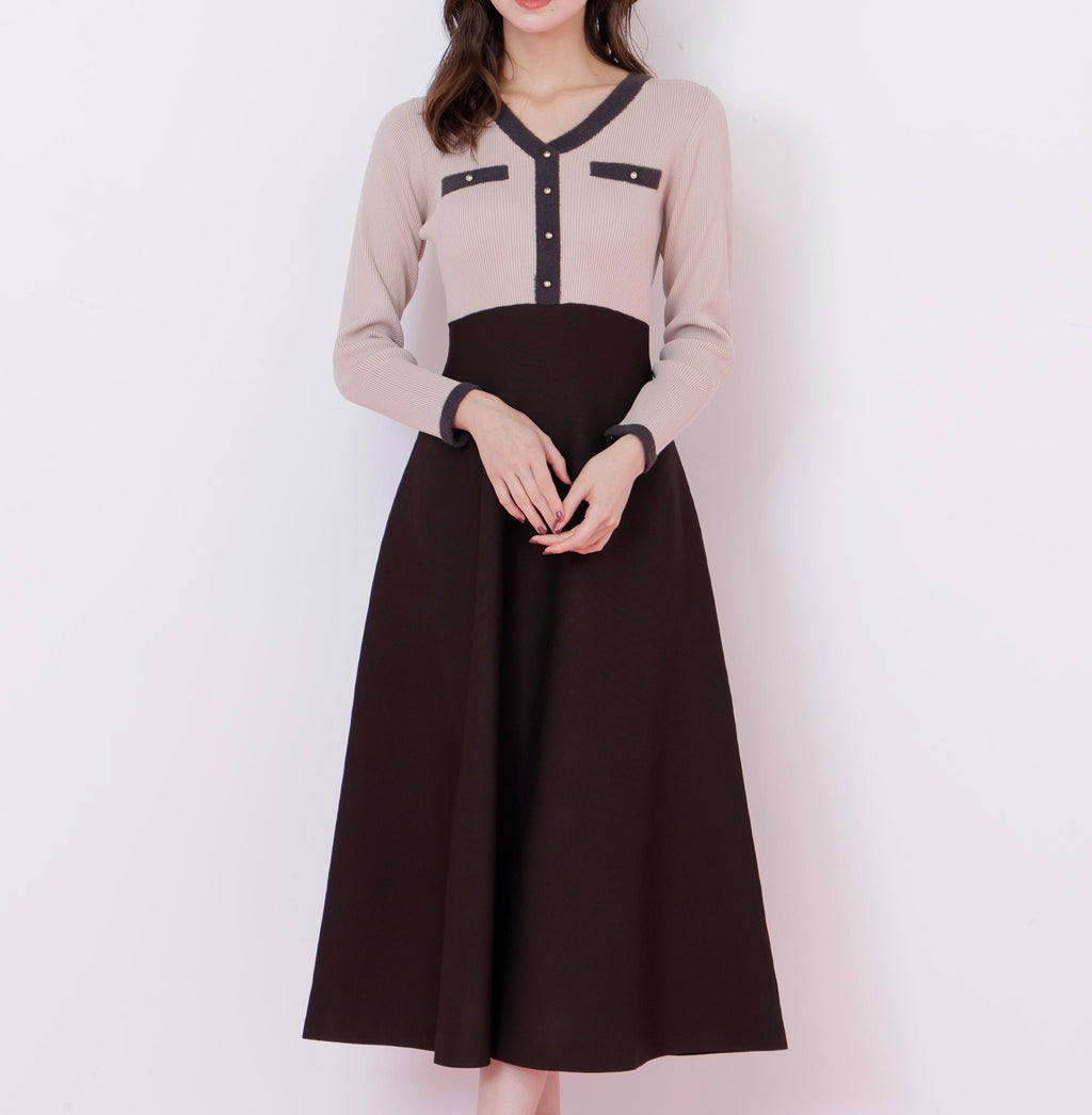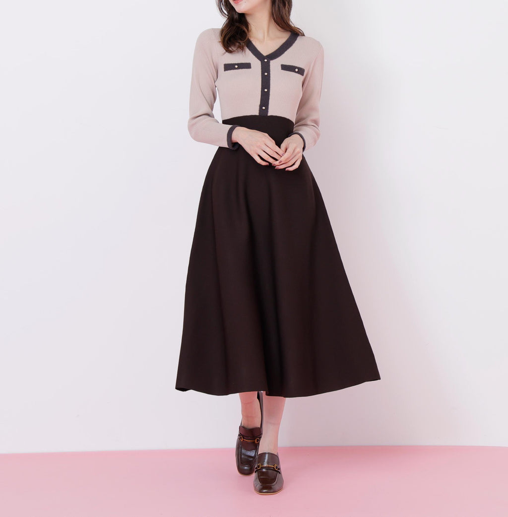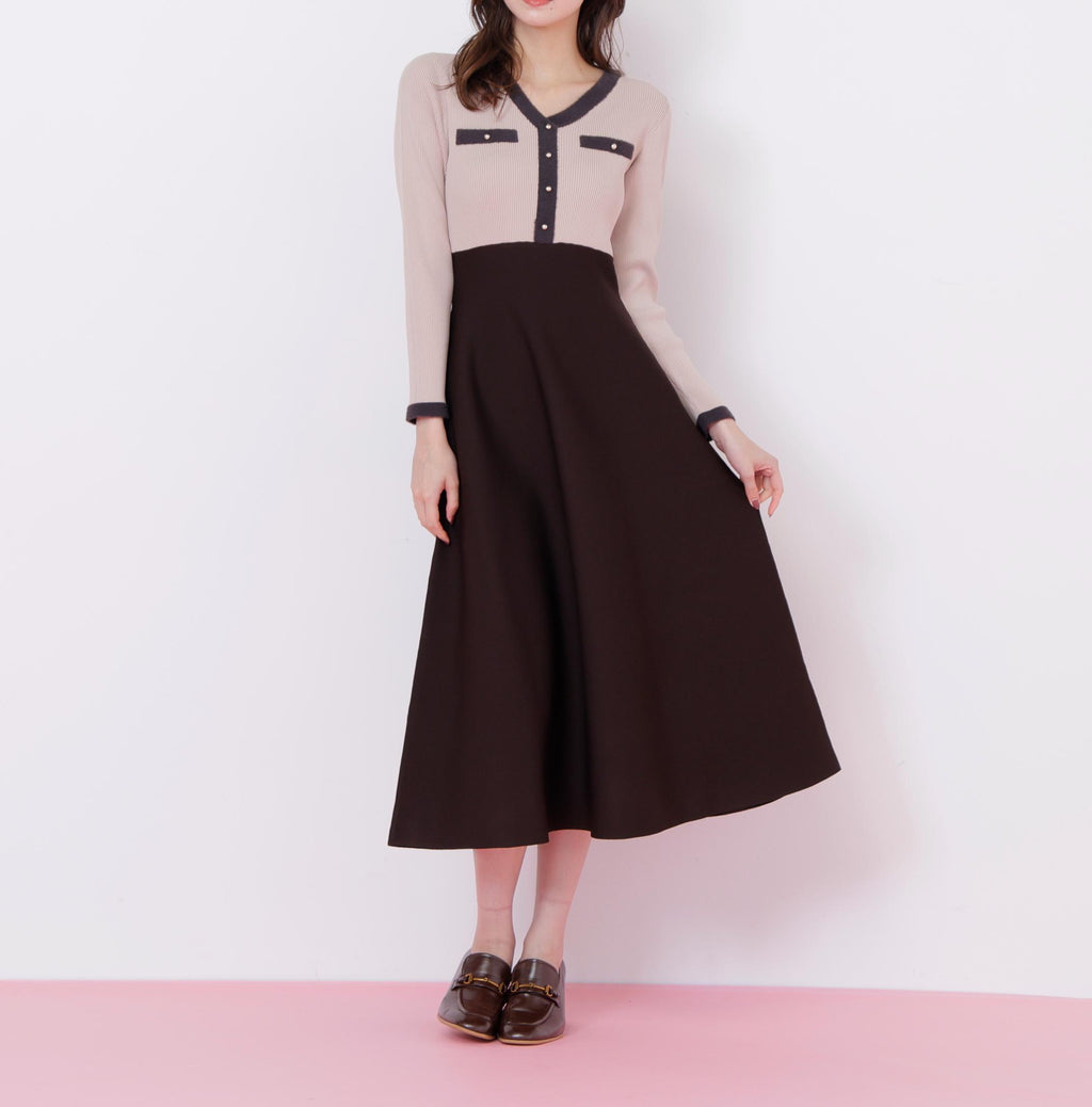 JILL by JILL STUART 定番のポリエステル素材を使用したニットワンピースを、秋冬らしいディテールに仕上げた1枚。襟から前立て、胸と袖口の配色パイピングに、風合いのある短いシャギーを加えたデザインです。小さい金色ボタンが品の良いアクセントになり、オフィスシーンにもぴったり。シンプルながら華やかさのあるデザインです。※撮影時照明の関係により、色味が違って見える場合がございます。