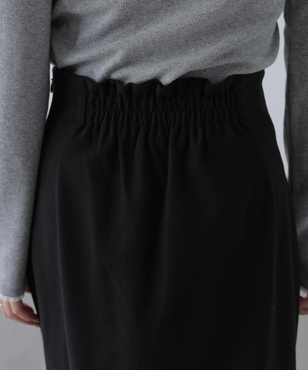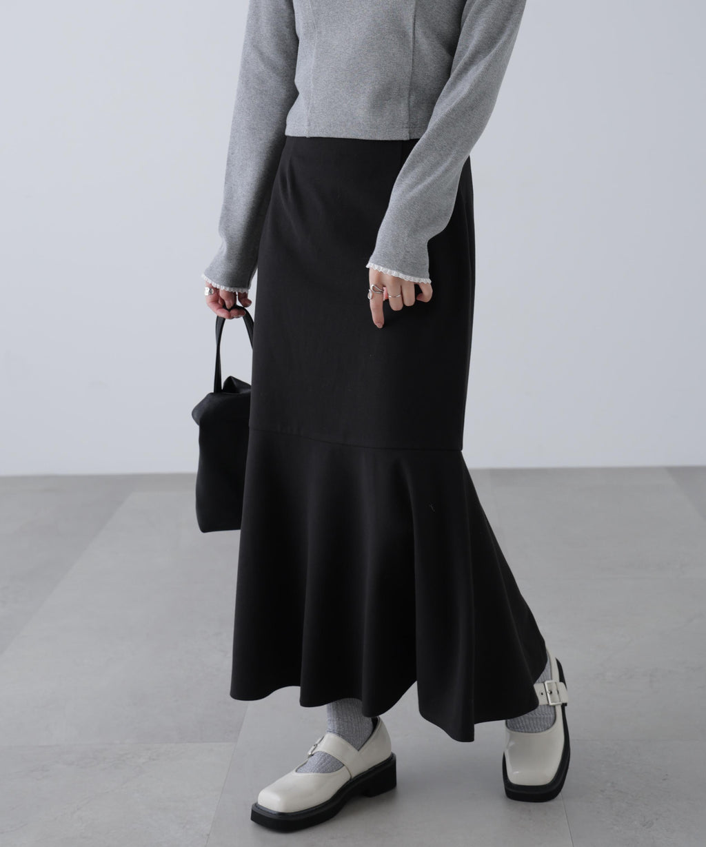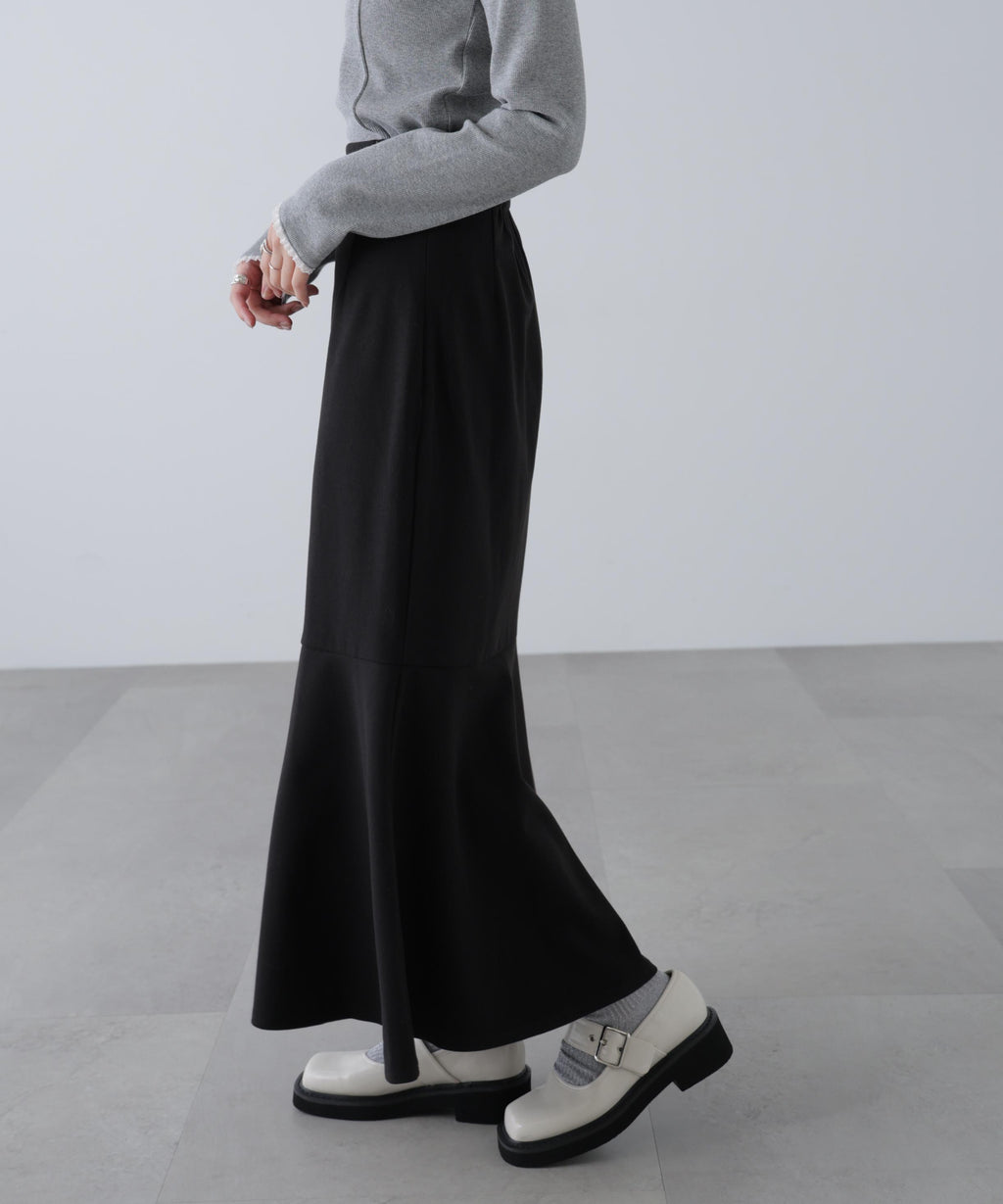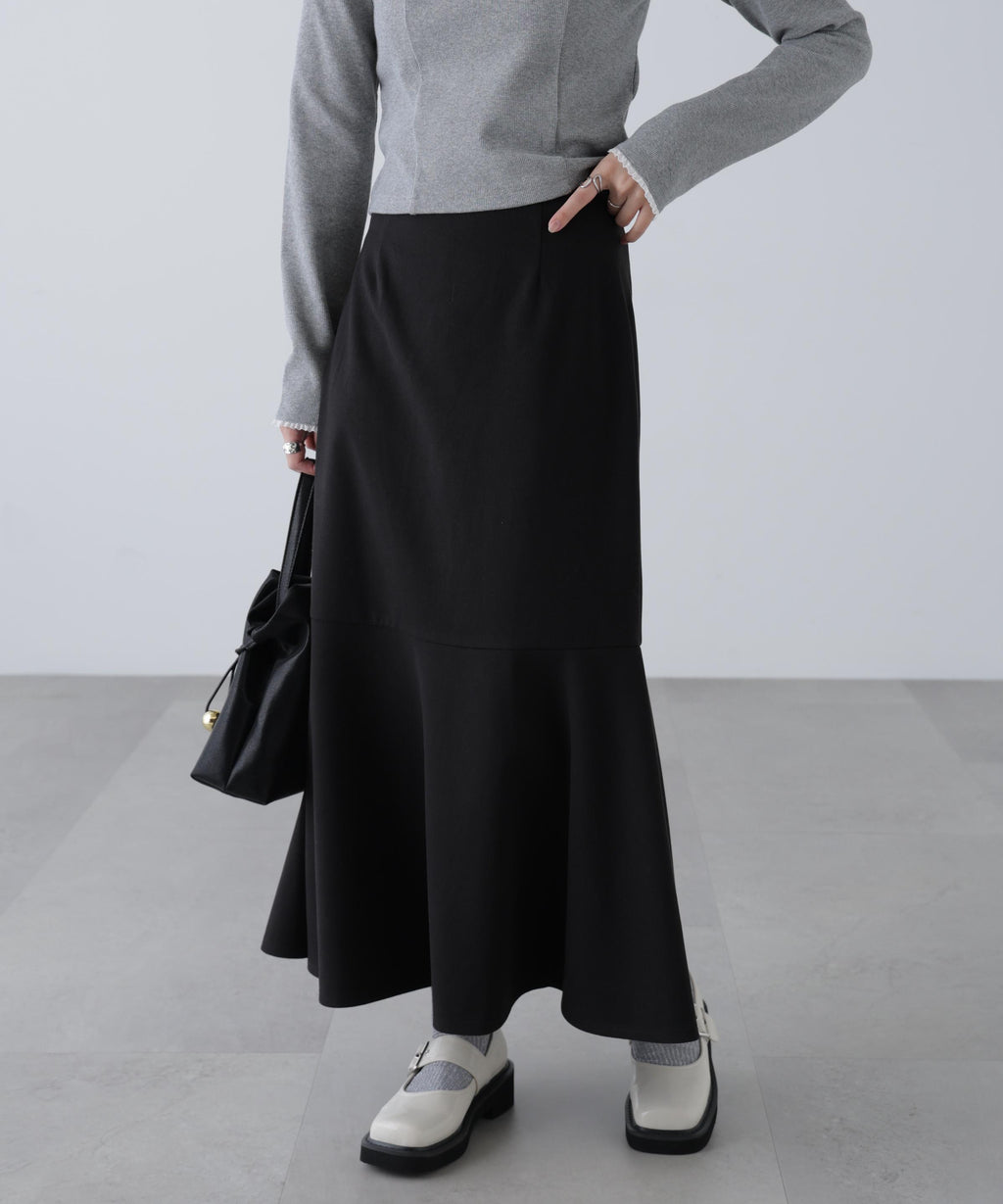 昨シーズンご好評いただいたスカートが新色を加えて再登場!ウォーム感のある微起毛が入ったなめらかな生地を使用したスカート。柔らかすぎず程よい弾力があるので、マーメイドフリルがキレイに出ます。ハイウエストでスタイルUPしつつ、ナロー気味のラインなので、フェミニンにもカジュアルにも着まわせます。オフの日はスウェットトップスと合わせてカジュアルに。通勤にもぴったりで、ベーシックニットやブラウスをINしたコーディネートもおススメです。ベーシックな黒とオフホワイトに加え、新色のベージュとブラウンを揃えた4色展開です。