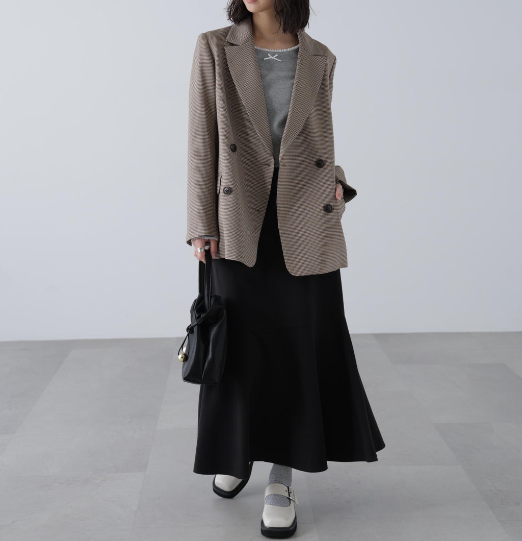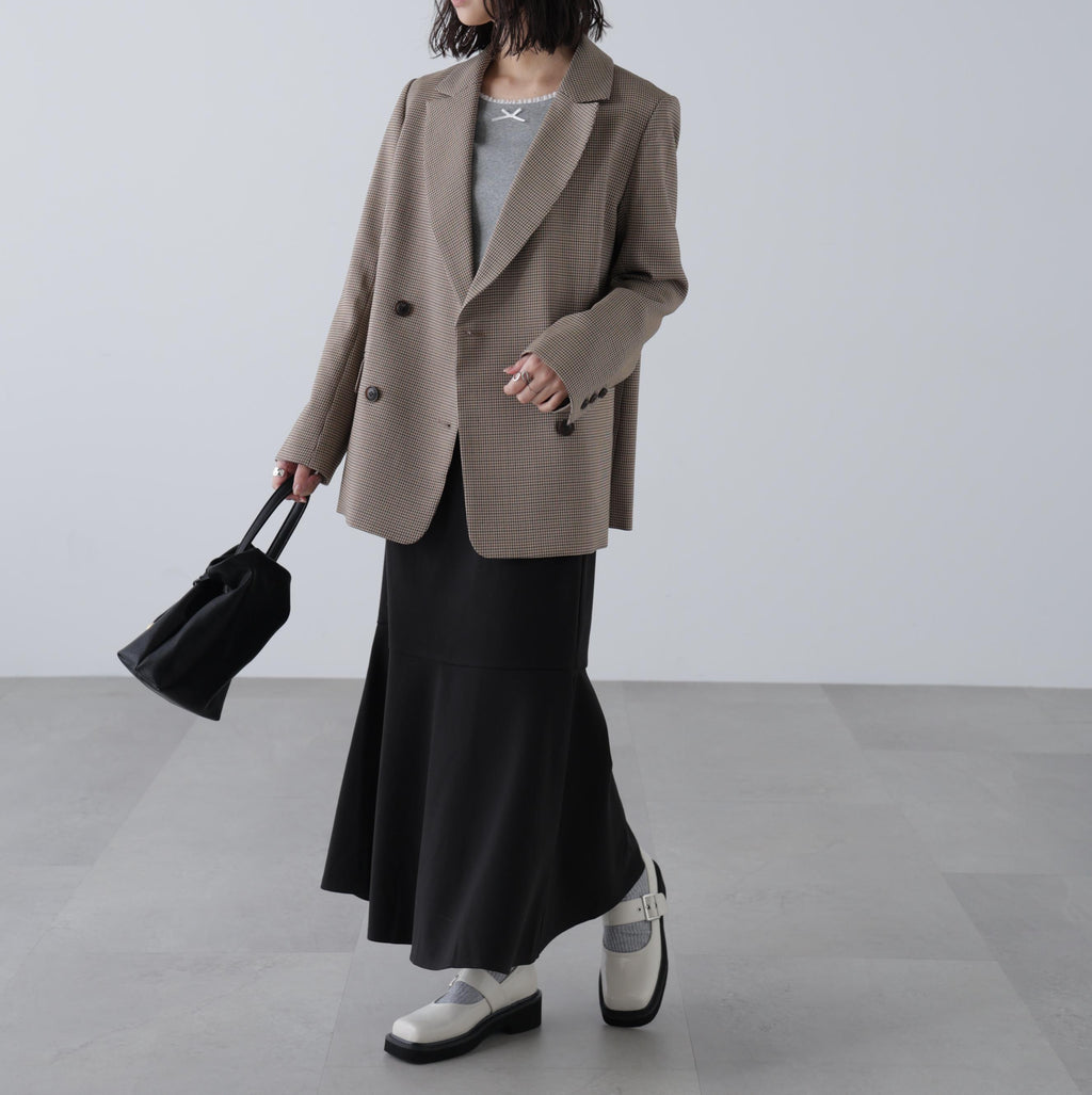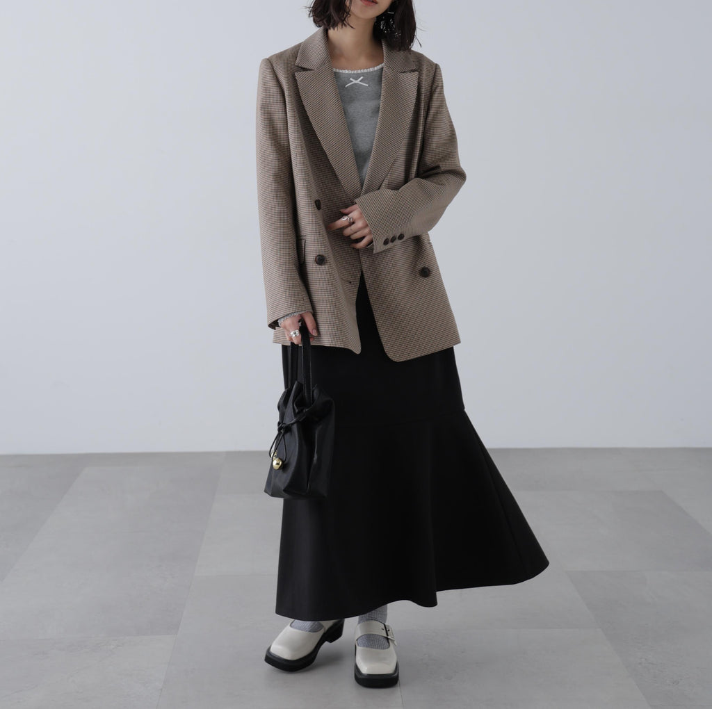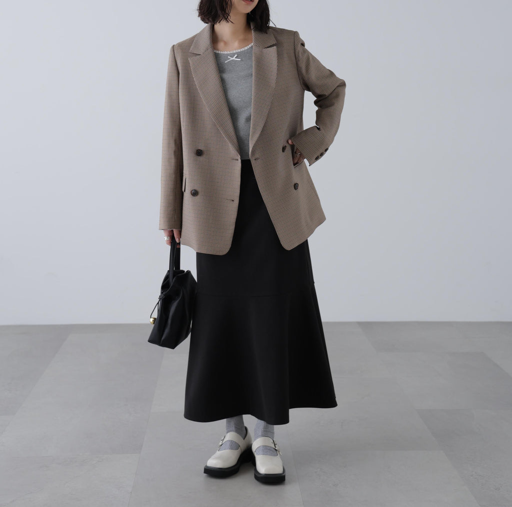 昨シーズンご好評いただいたスカートが新色を加えて再登場!ウォーム感のある微起毛が入ったなめらかな生地を使用したスカート。柔らかすぎず程よい弾力があるので、マーメイドフリルがキレイに出ます。ハイウエストでスタイルUPしつつ、ナロー気味のラインなので、フェミニンにもカジュアルにも着まわせます。オフの日はスウェットトップスと合わせてカジュアルに。通勤にもぴったりで、ベーシックニットやブラウスをINしたコーディネートもおススメです。ベーシックな黒とオフホワイトに加え、新色のベージュとブラウンを揃えた4色展開です。