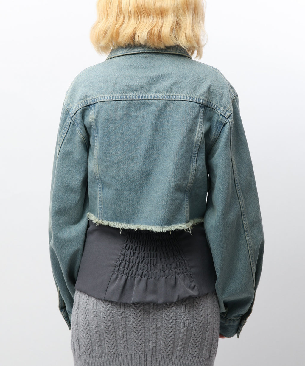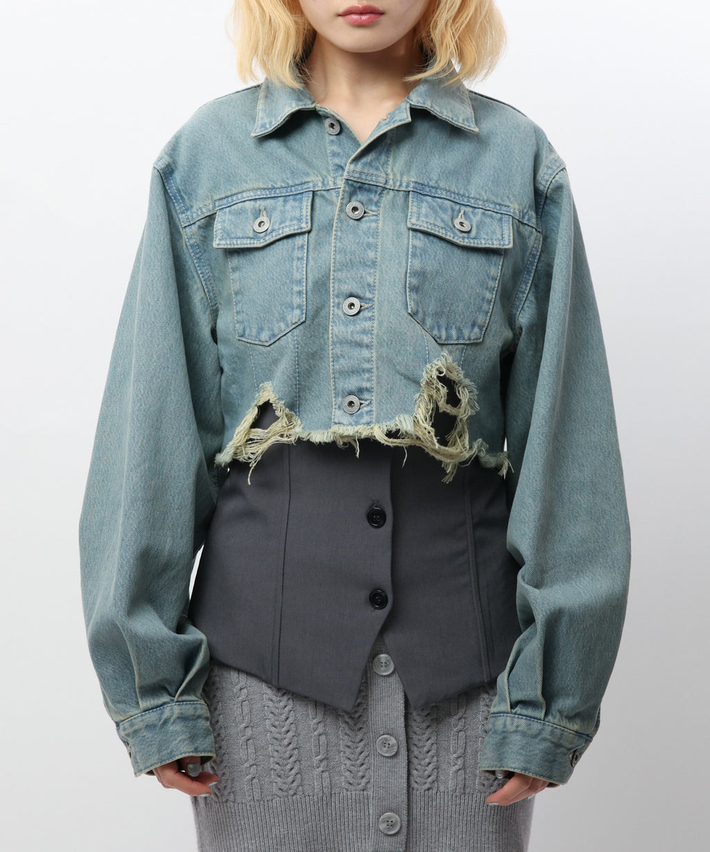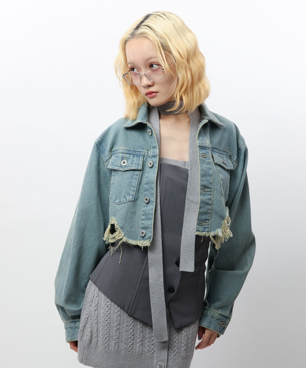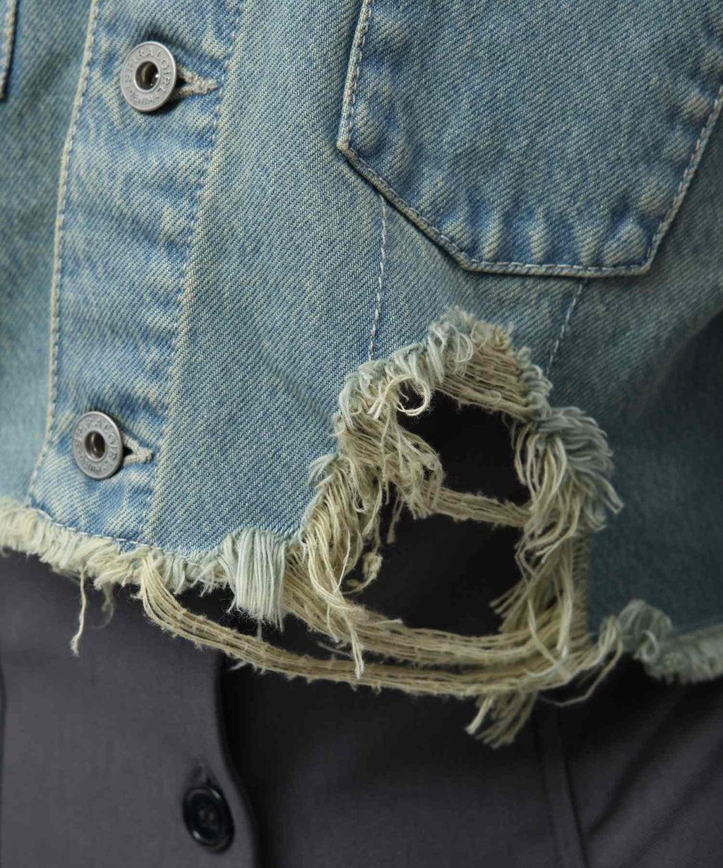 裾のクラッシュデザインがヴィンテージ感のある可愛いデニムジャケット。