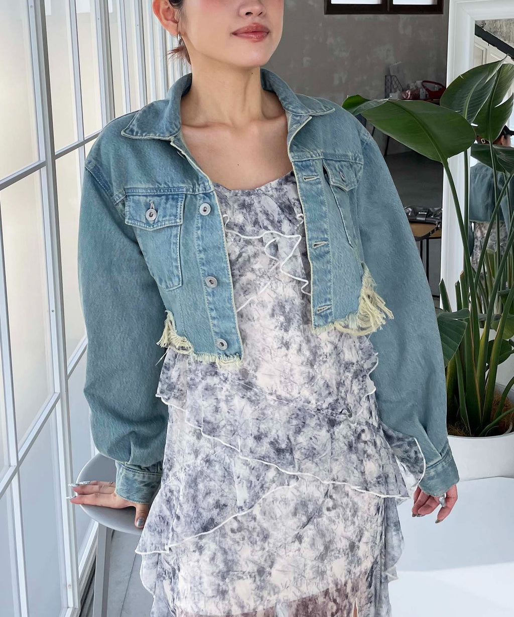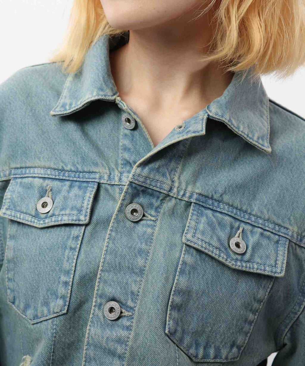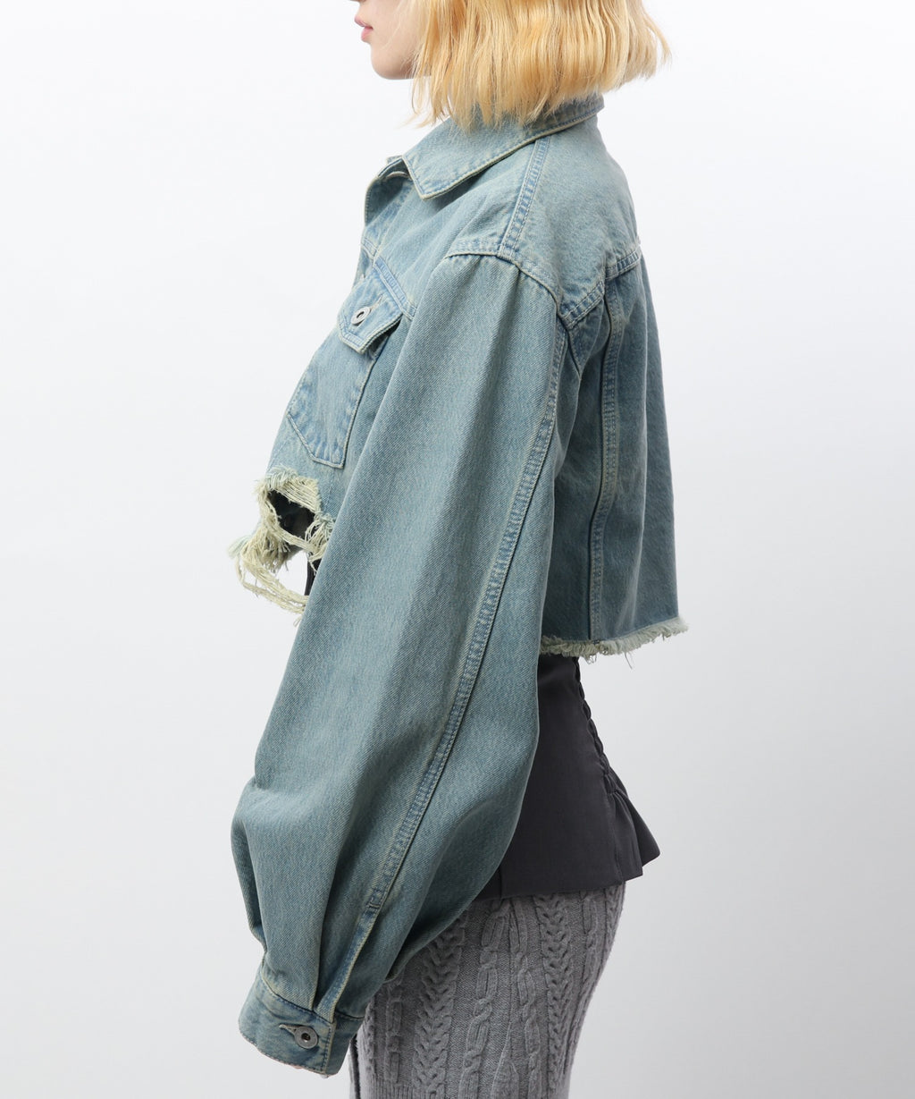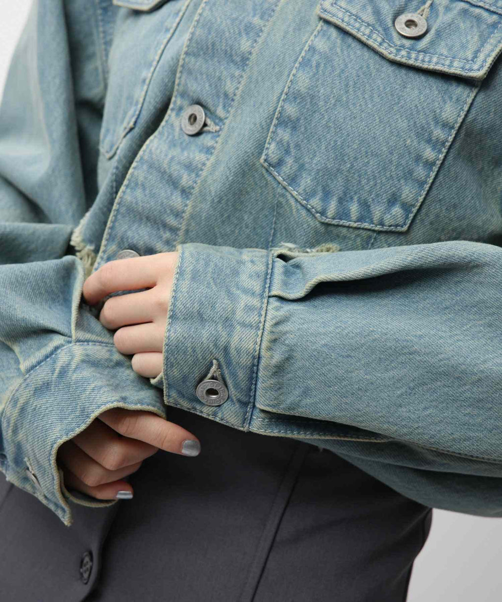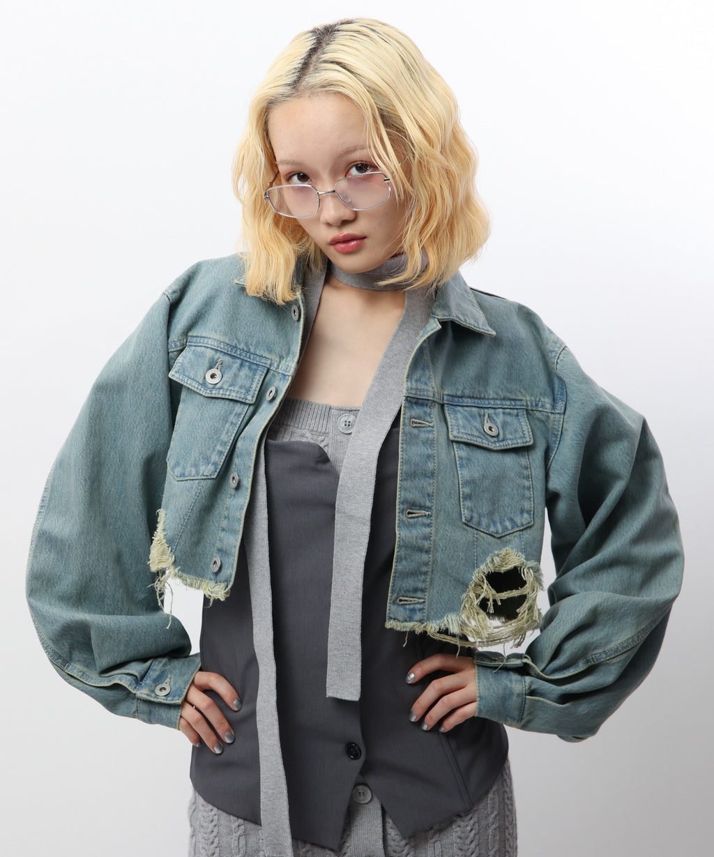 裾のクラッシュデザインがヴィンテージ感のある可愛いデニムジャケット。