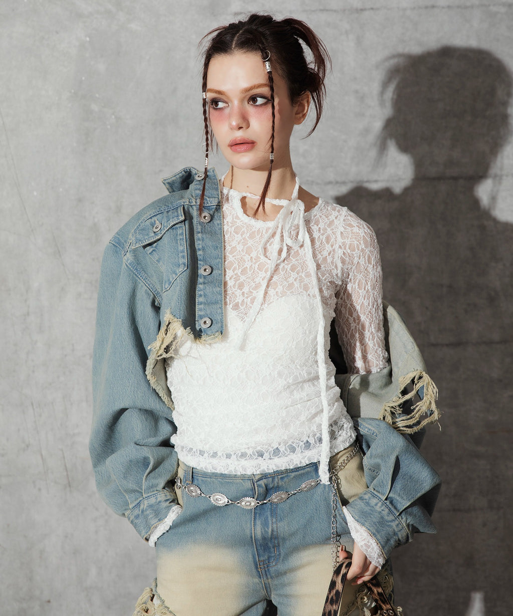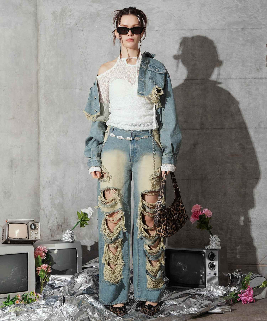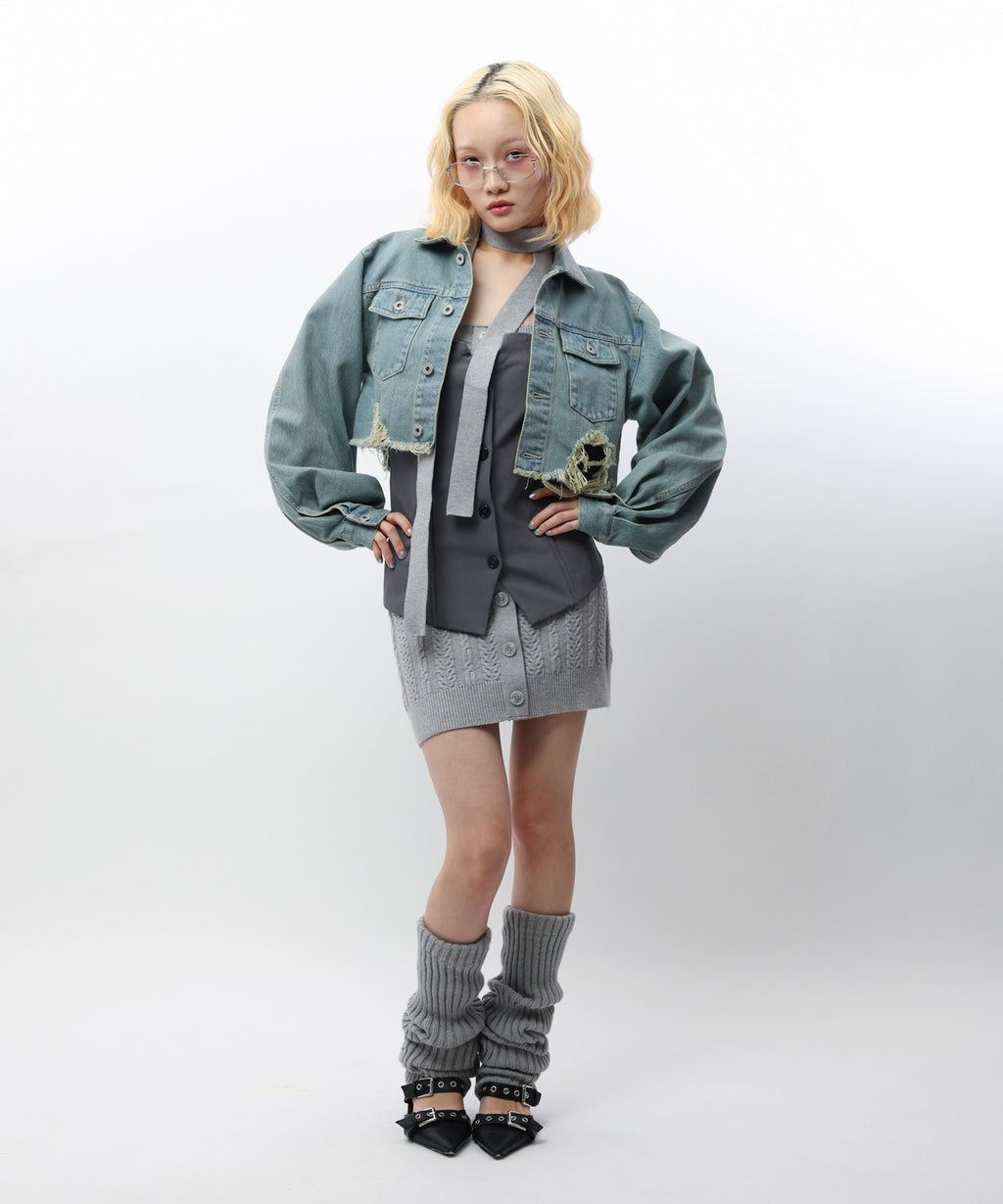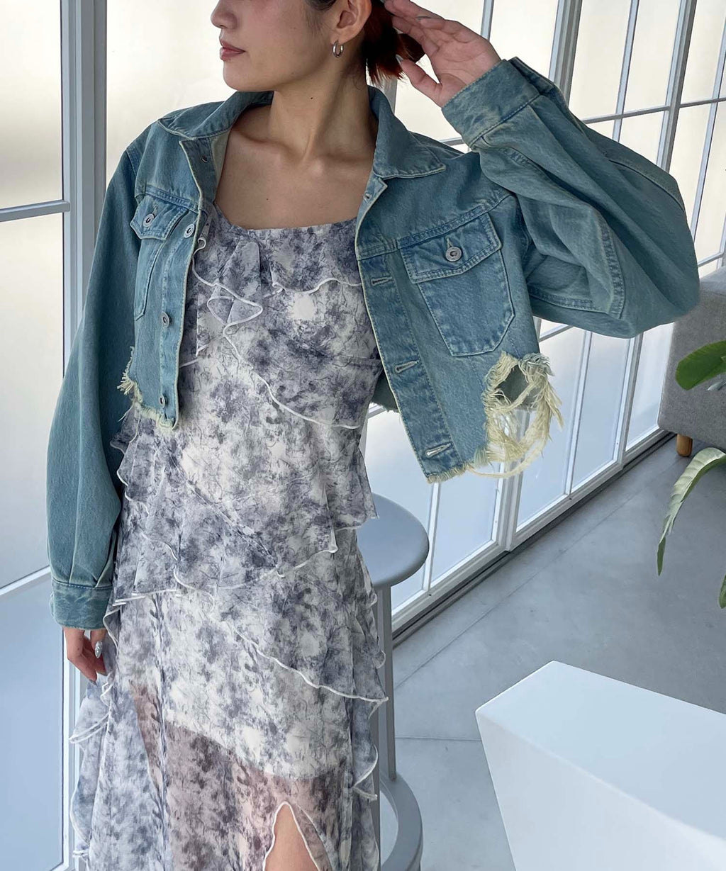 裾のクラッシュデザインがヴィンテージ感のある可愛いデニムジャケット。