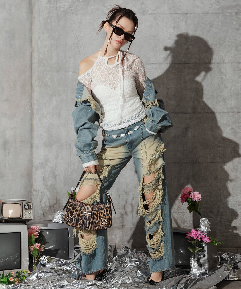 同じ素材のクラッシュワイドデニムデニムパンツ(62511417)と合わせると周りと差のつくスタイリングに。