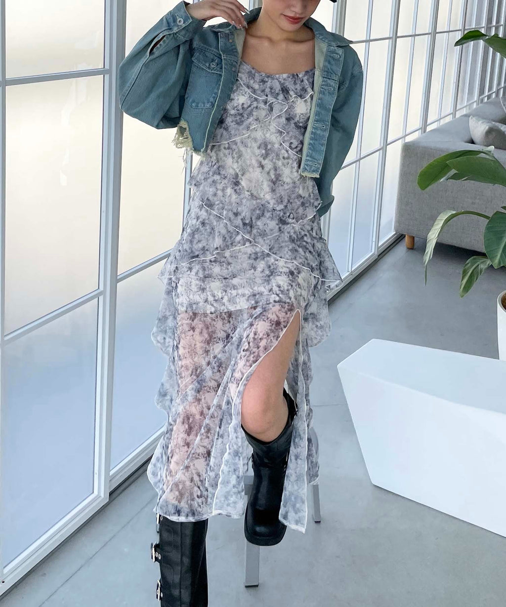 ロングワンピースやスカート、ボトムを選ばず着回しができます。