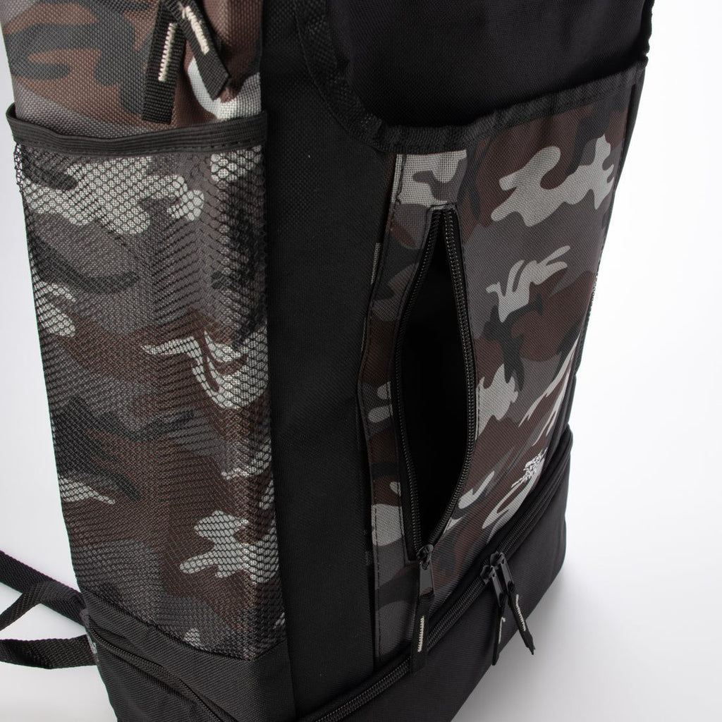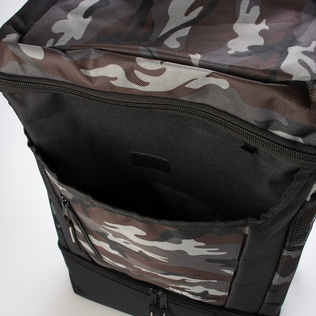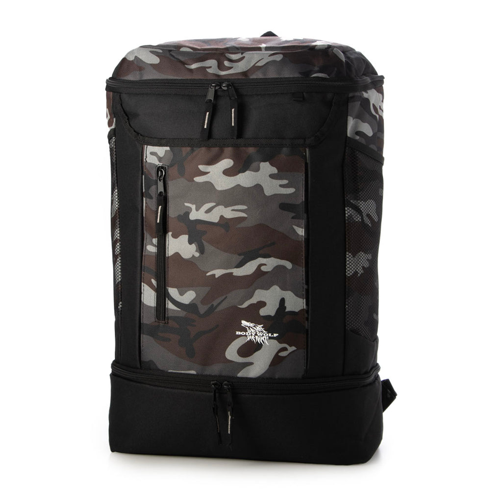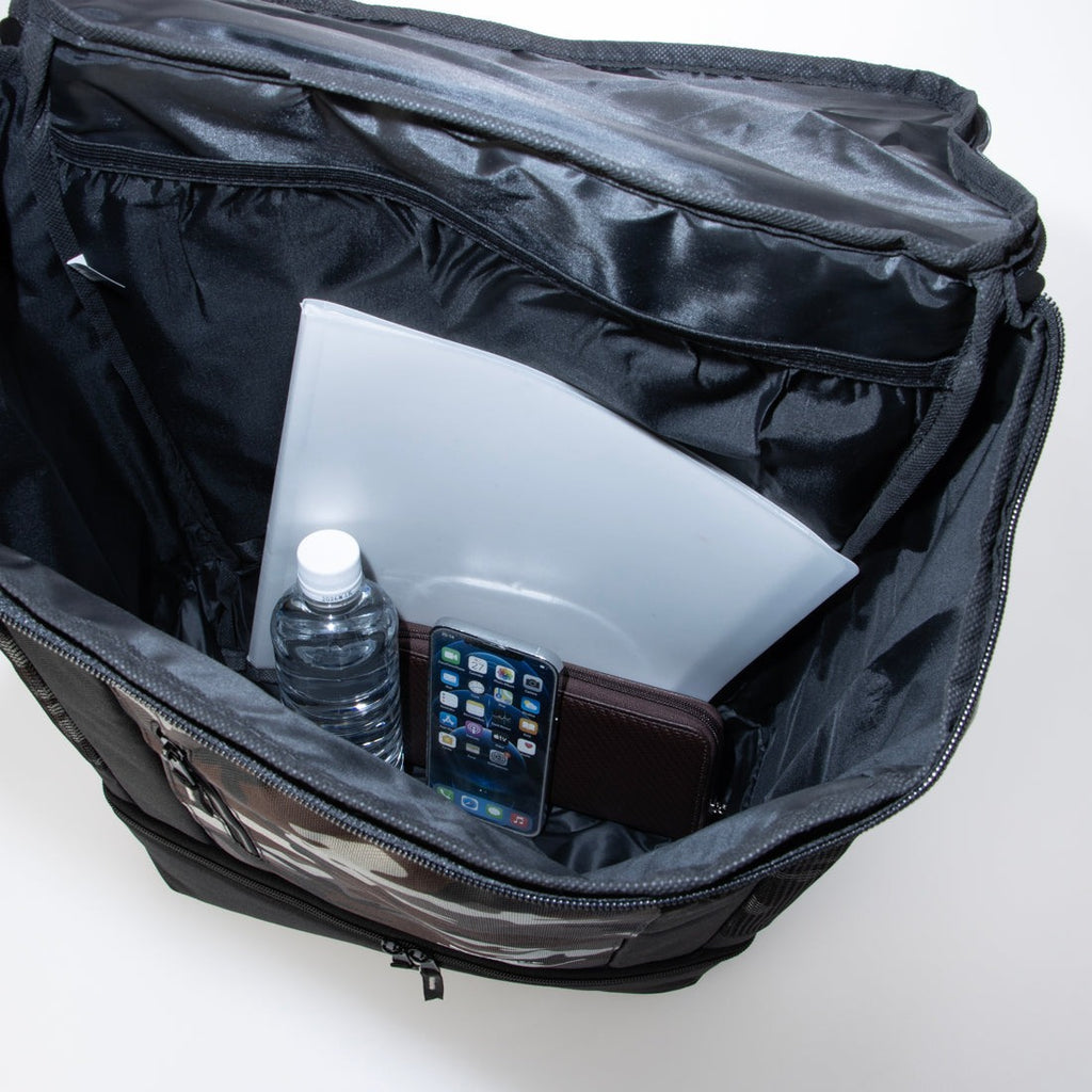 多数の収納ポケット付きで様々な用途に合わせて使える上下2層式バックパック。