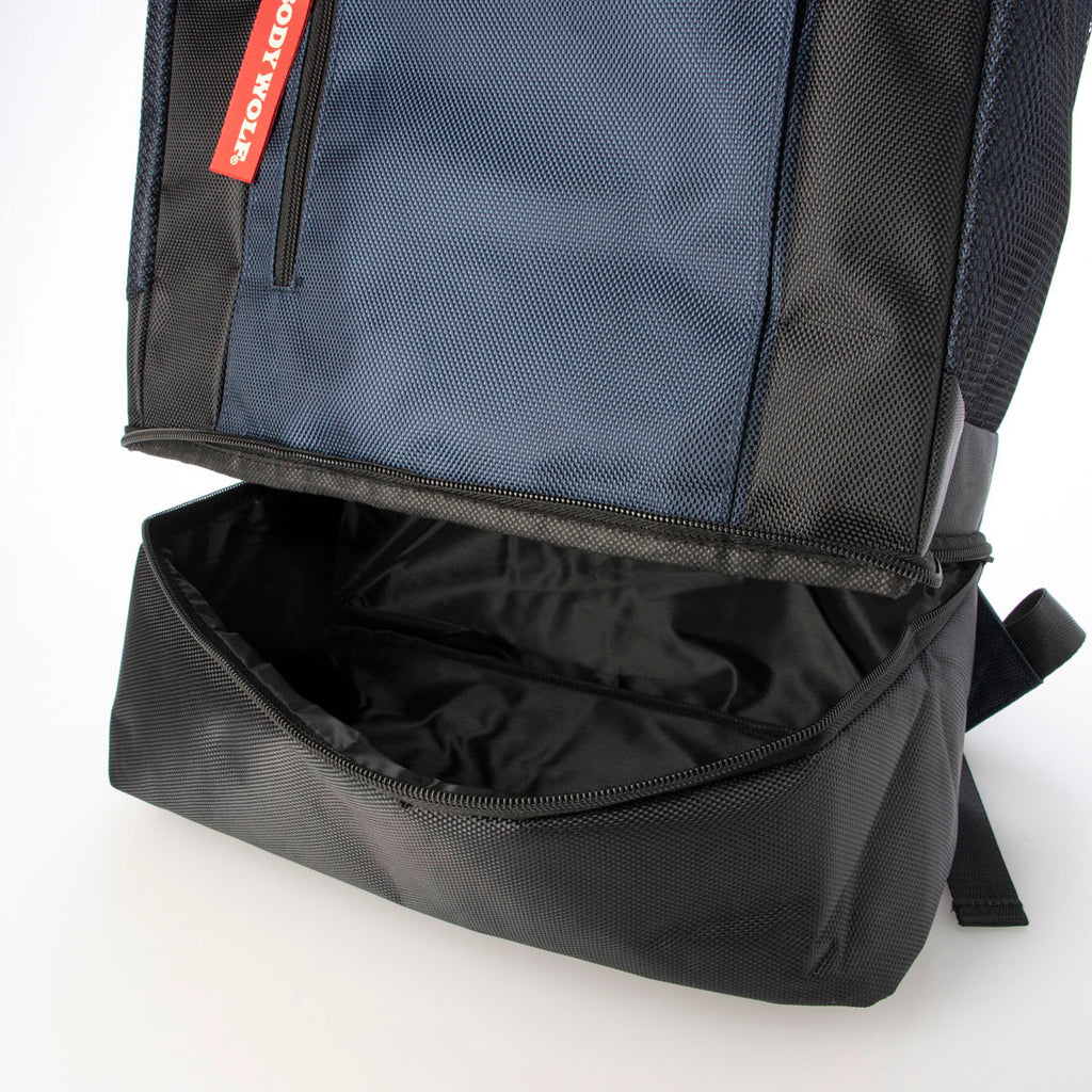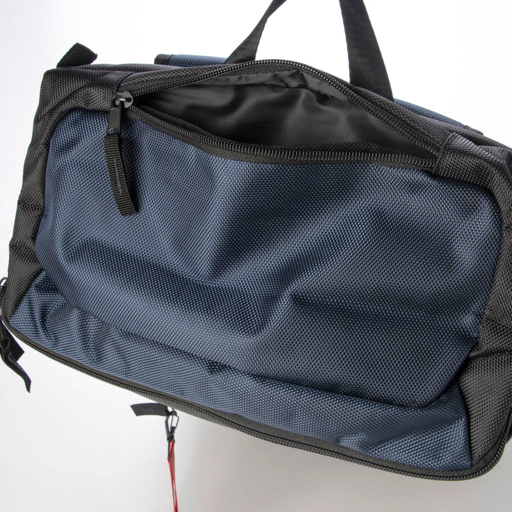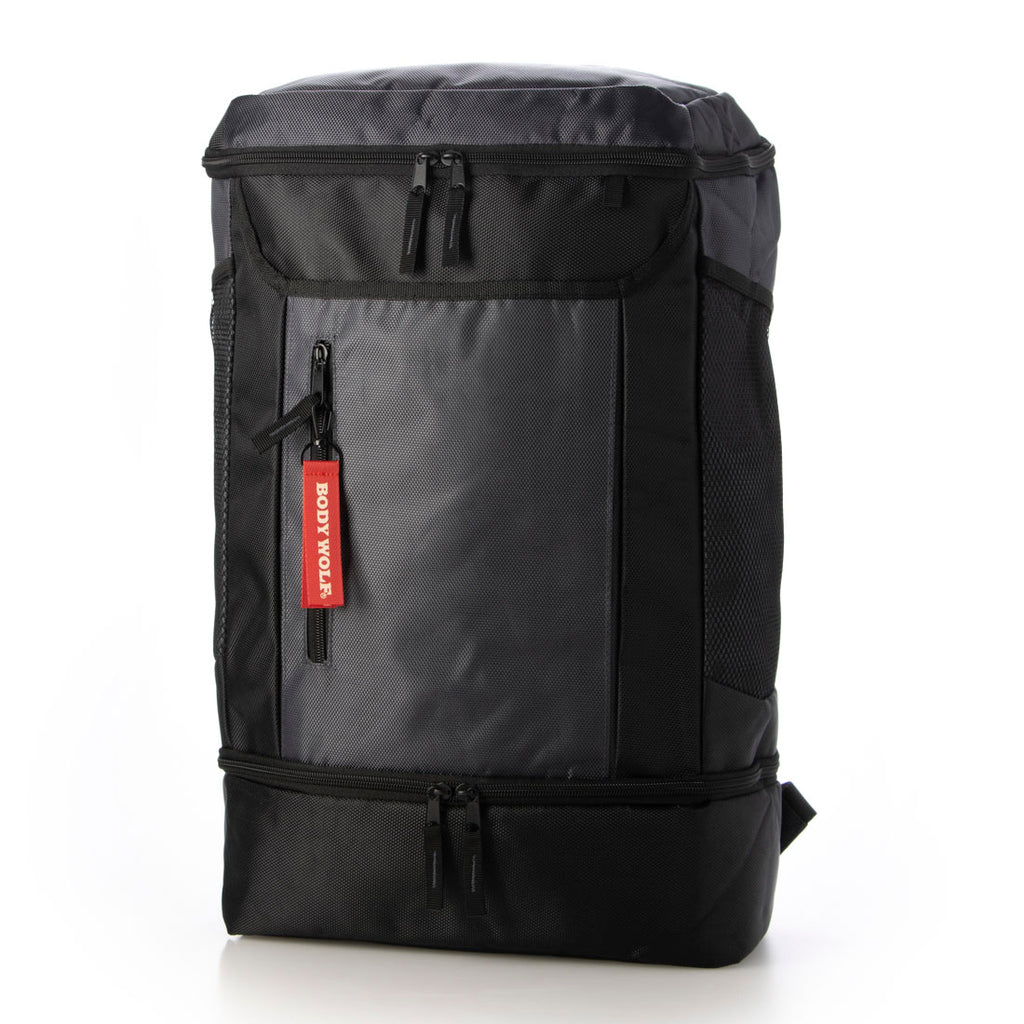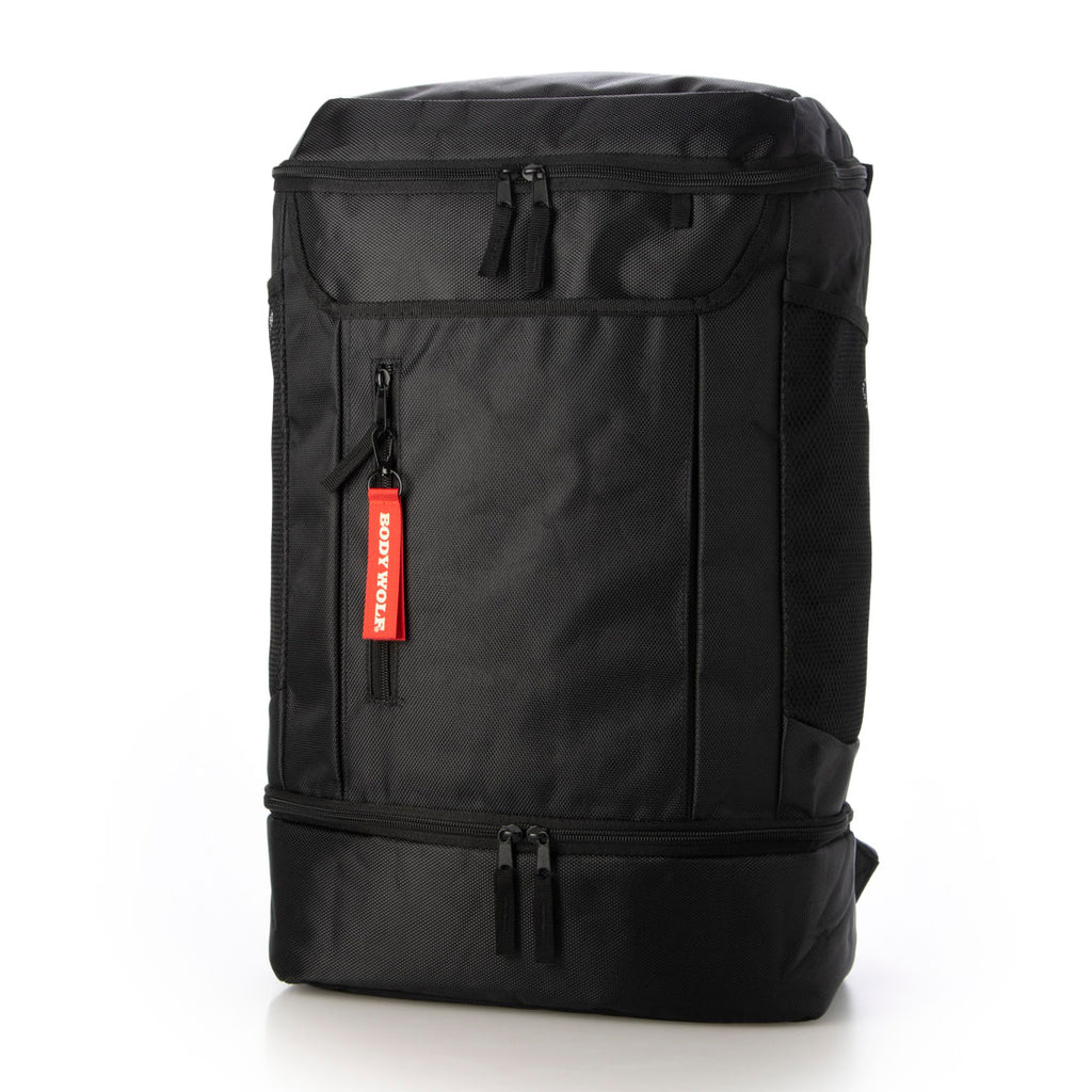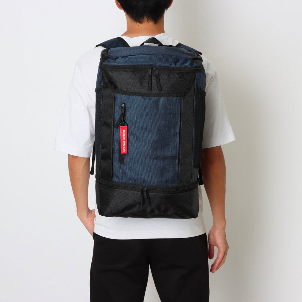 耐久性に強い1680デニールのポリエステル素材を使用した上下2層式のリュック。