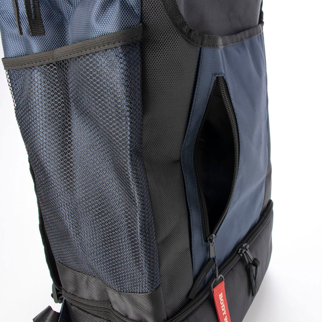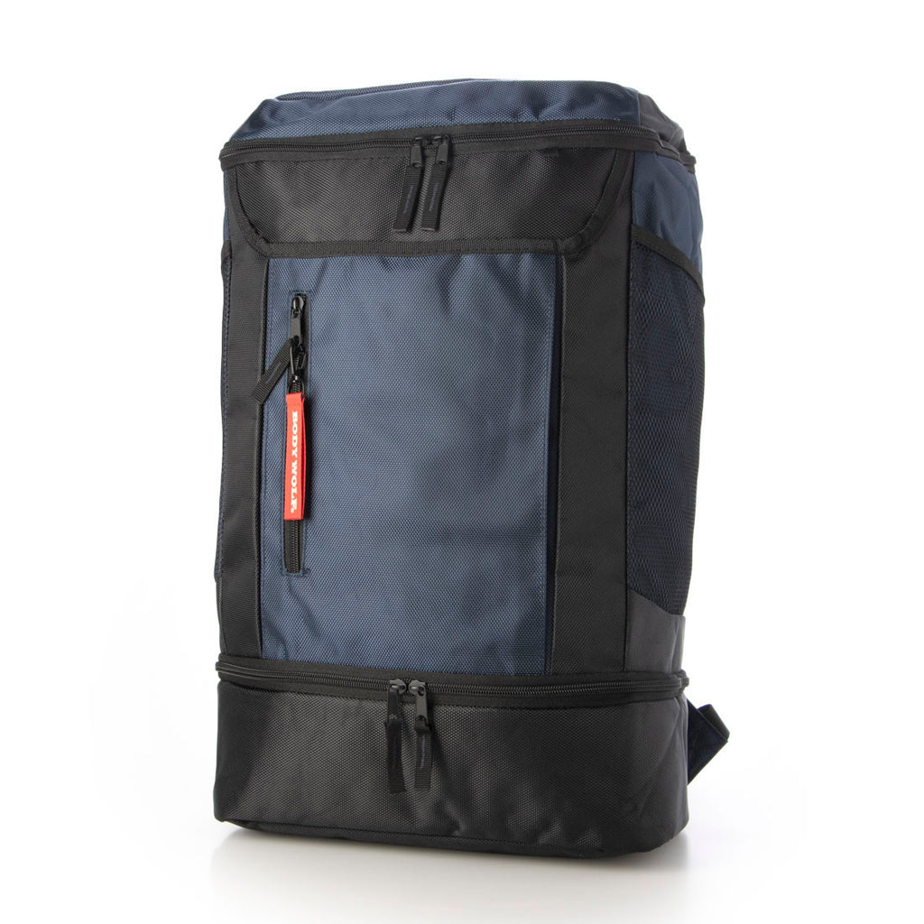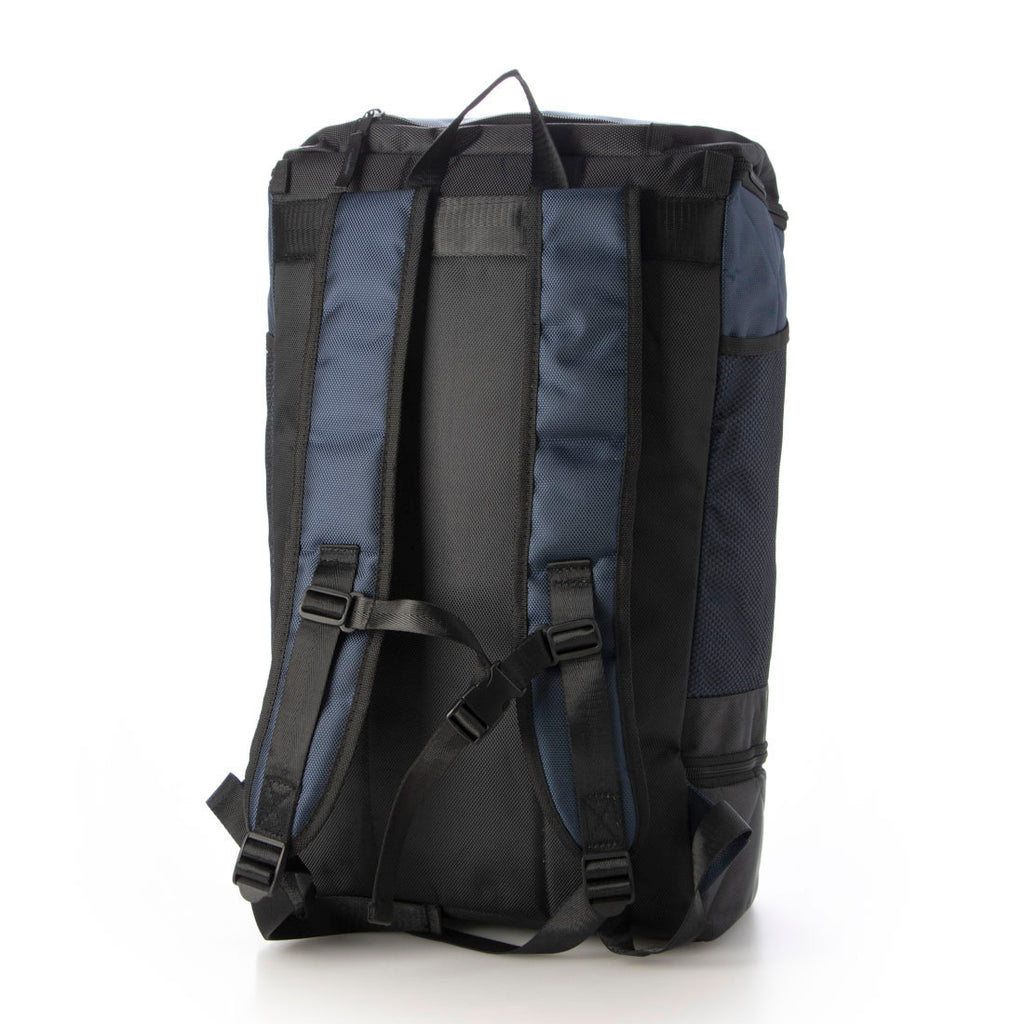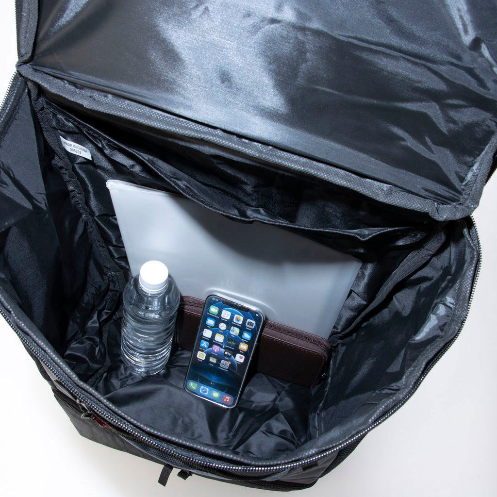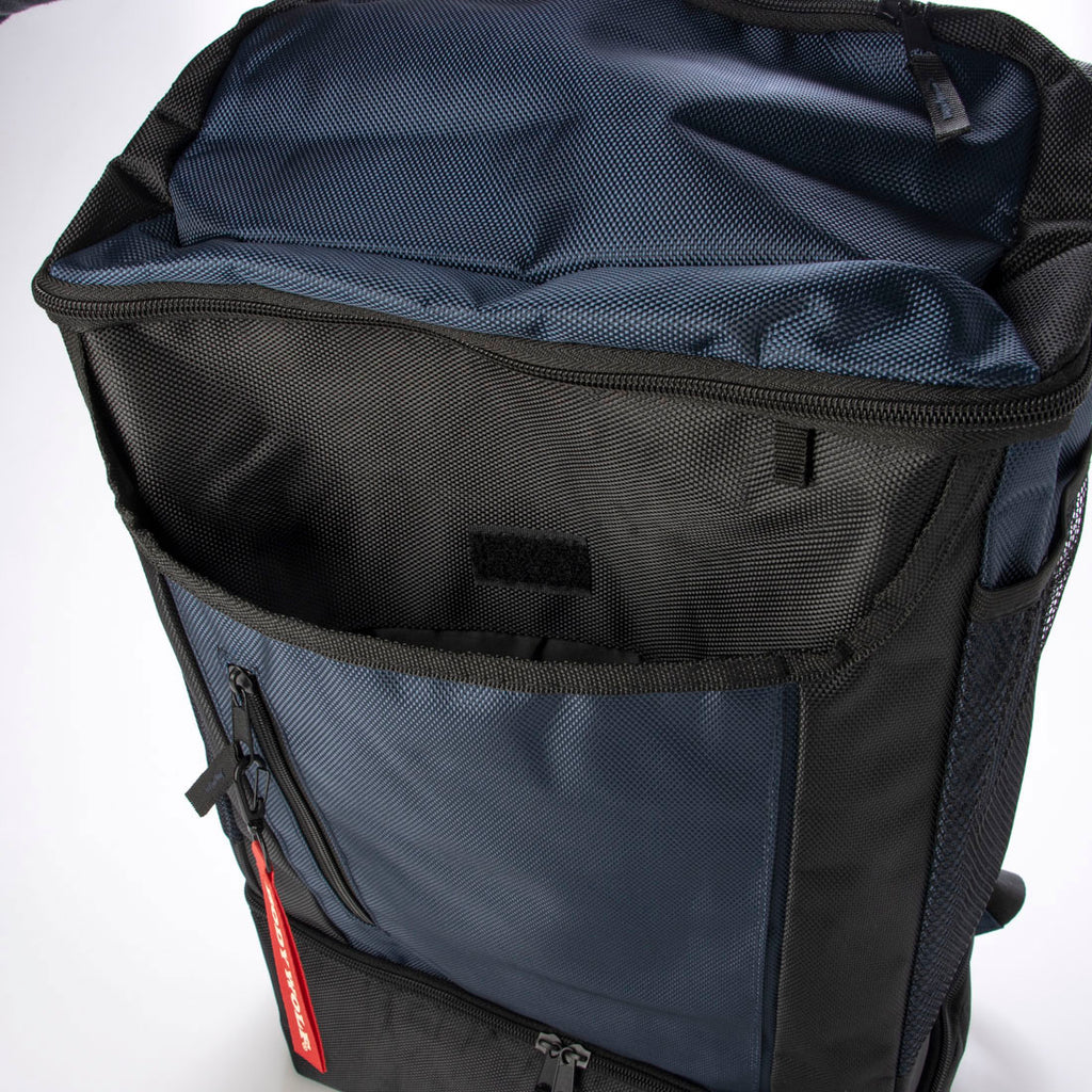 耐久性に強い1680デニールのポリエステル素材を使用した上下2層式のリュック。