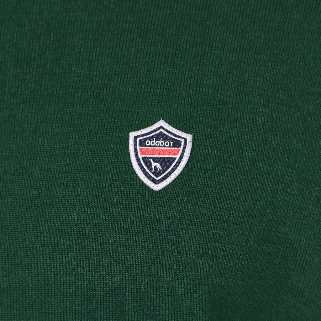 胸元のエンブレムワッペンがさりげないアクセントとなり、上品でトラッドな雰囲気を演出します。