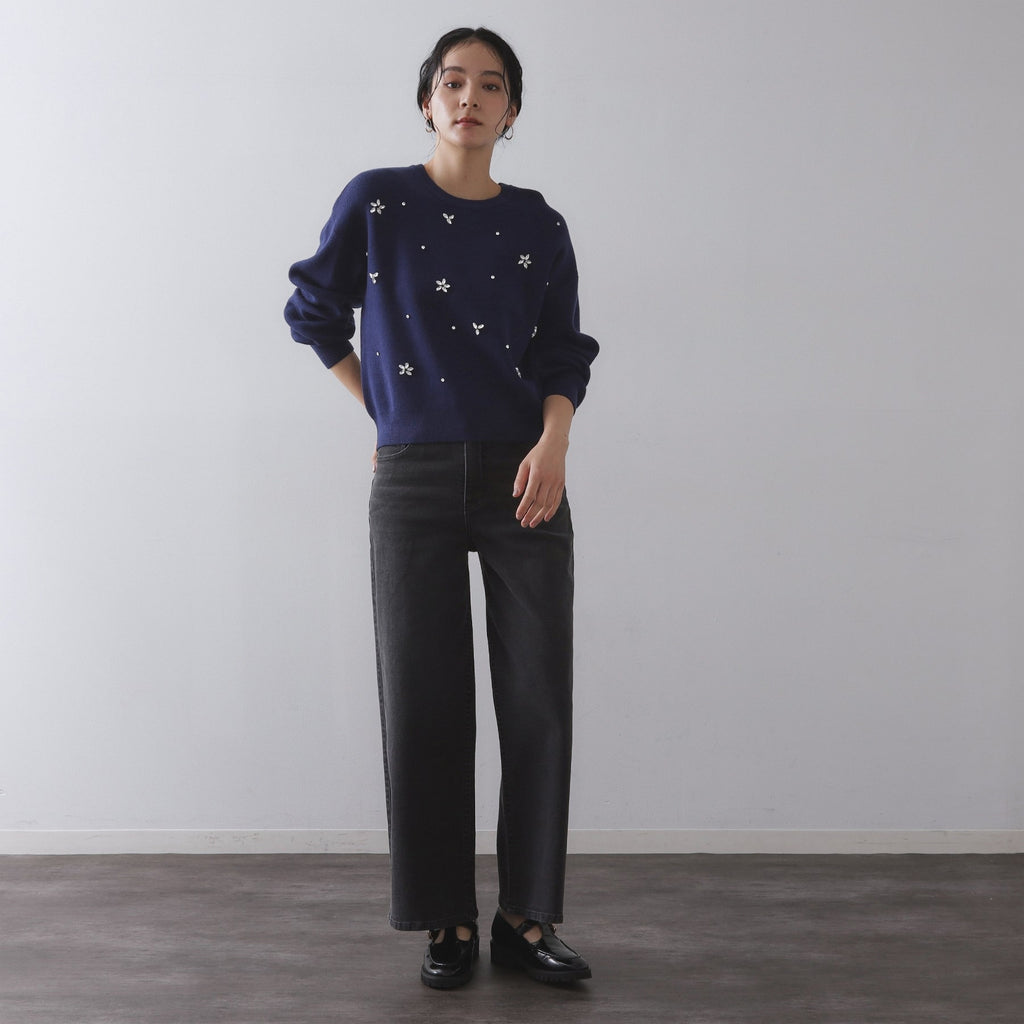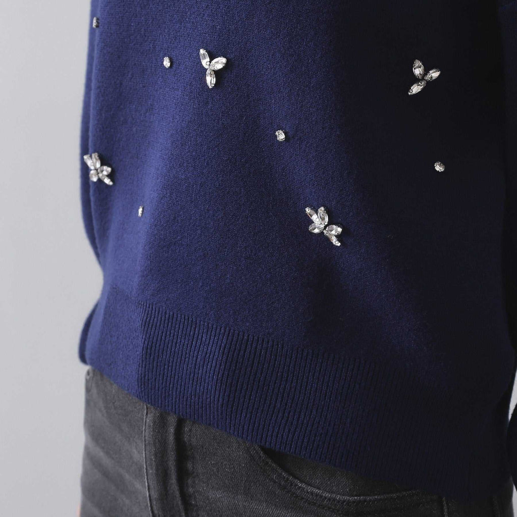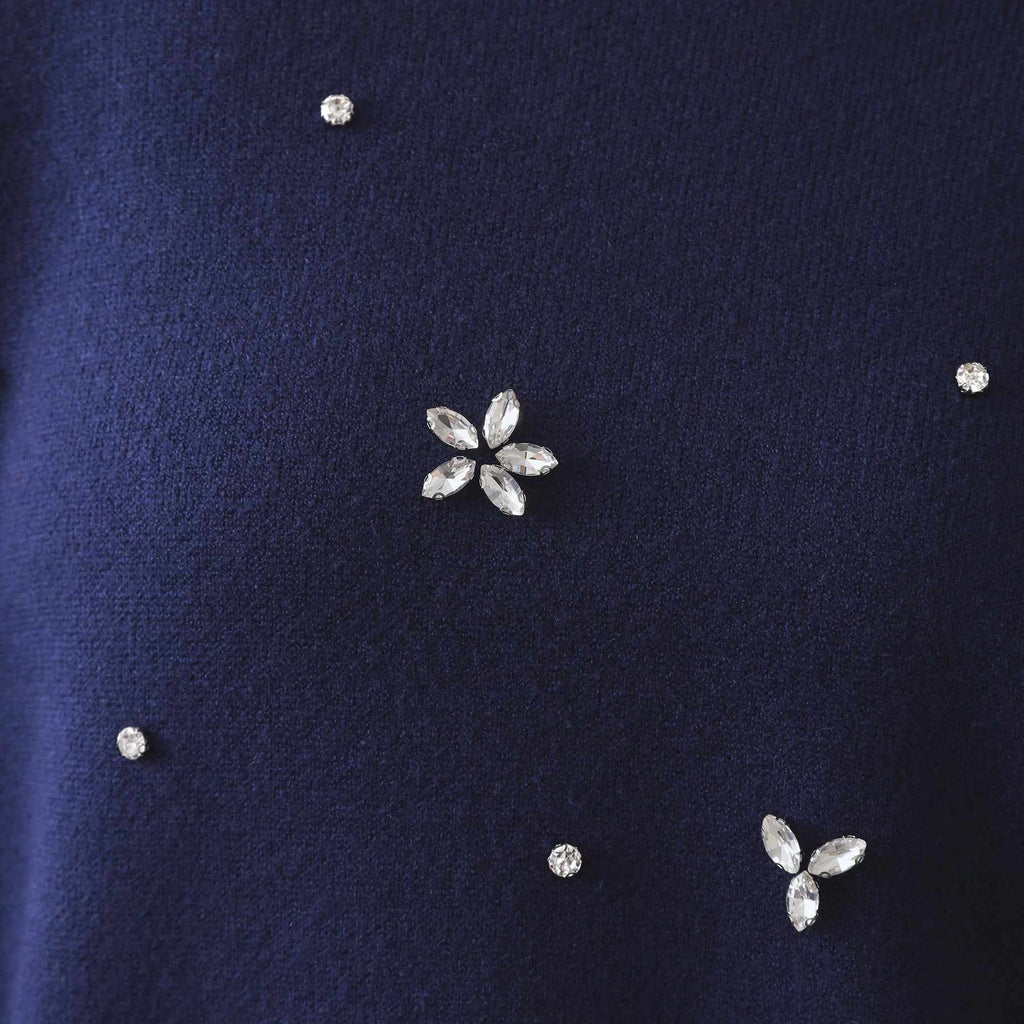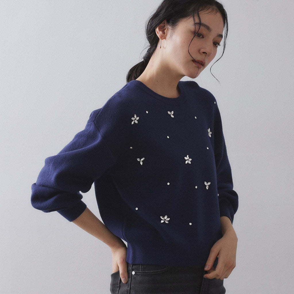 ・ニットトップスの前身頃に、ビジューをあしらった華やかなトップス。