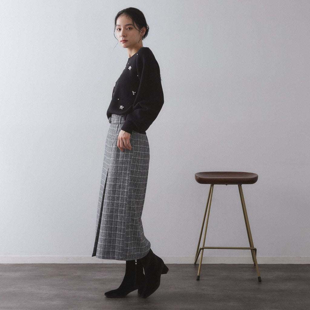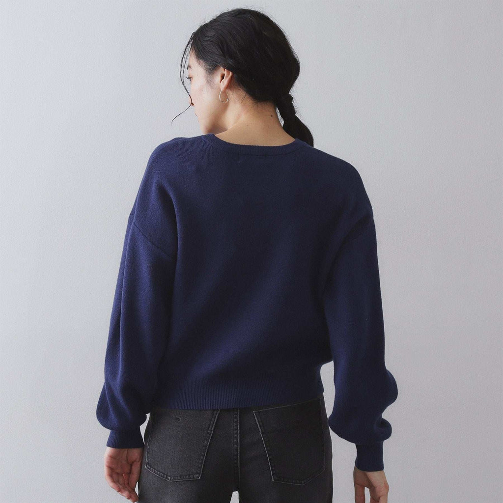 ・身頃はベーシックなクルーネックニットで、ボトムスを選ばず合わせられるニットトップスです。