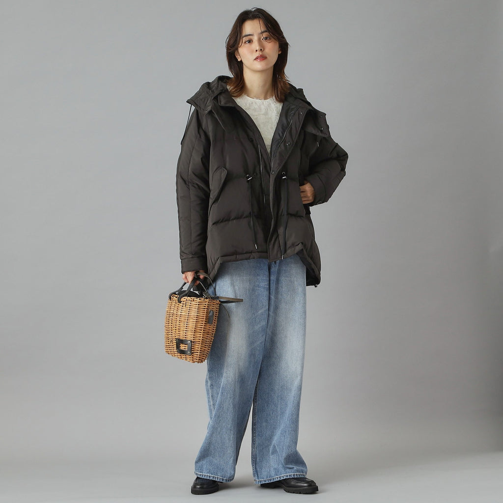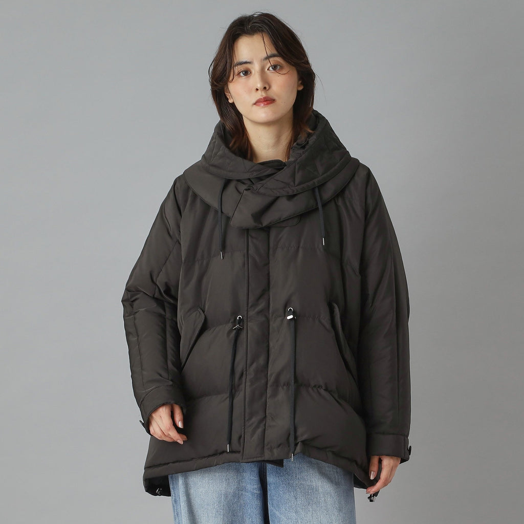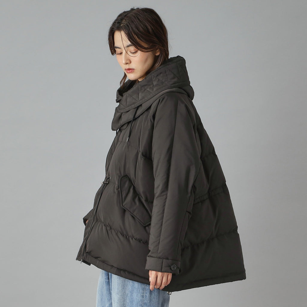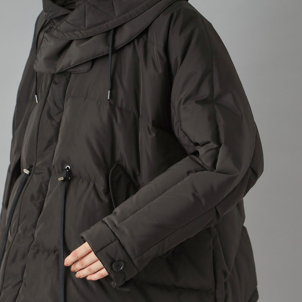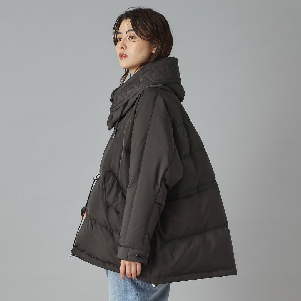ダウンジャケット特有の肩が太く見える現象をしっかり抑えるドルマンスリーブで華奢見えするのが嬉しいポイント。