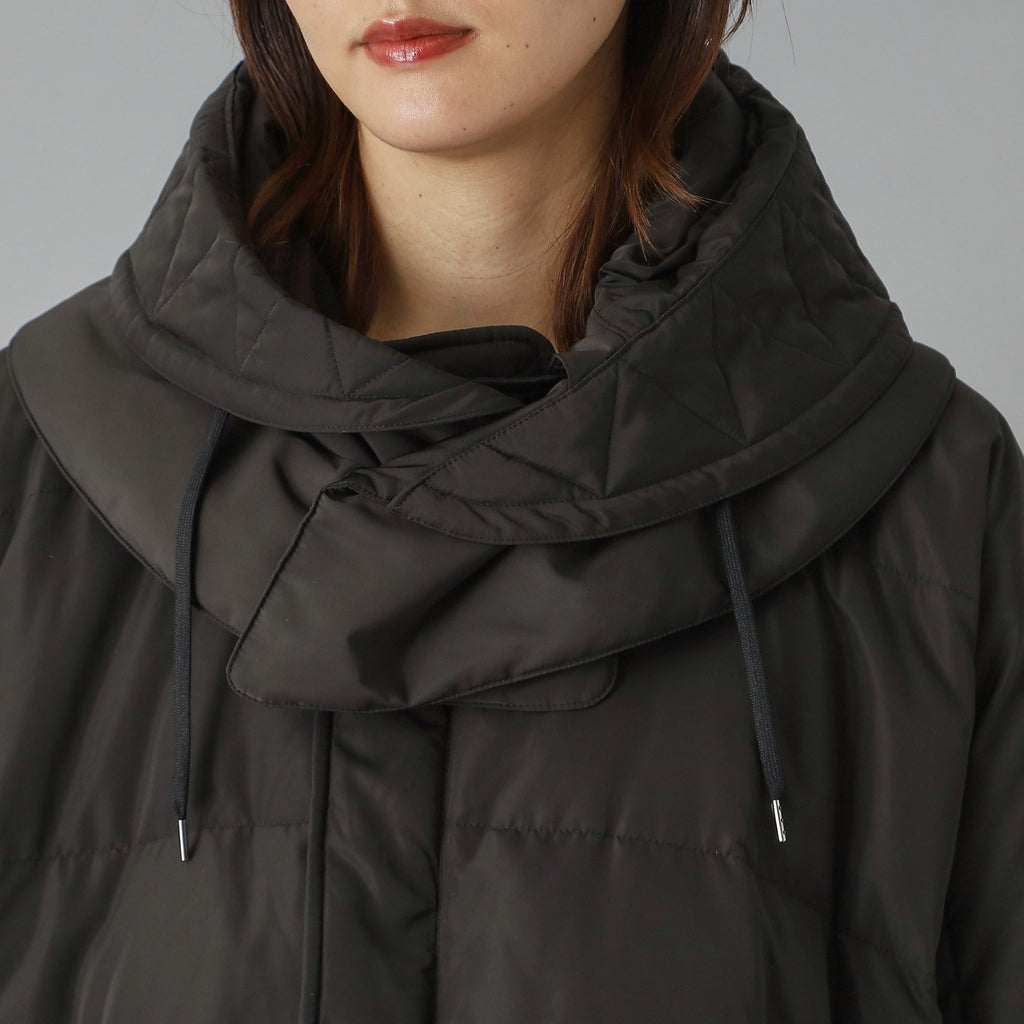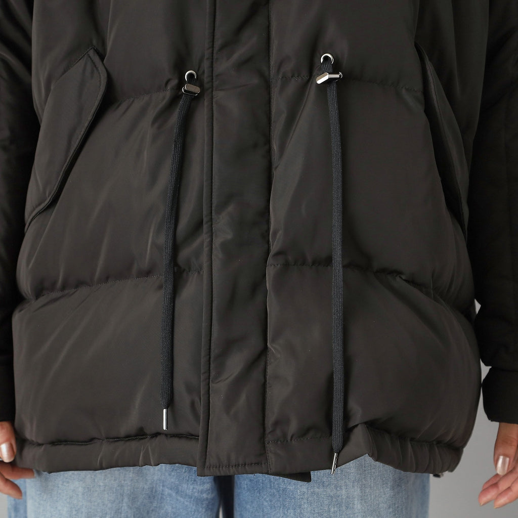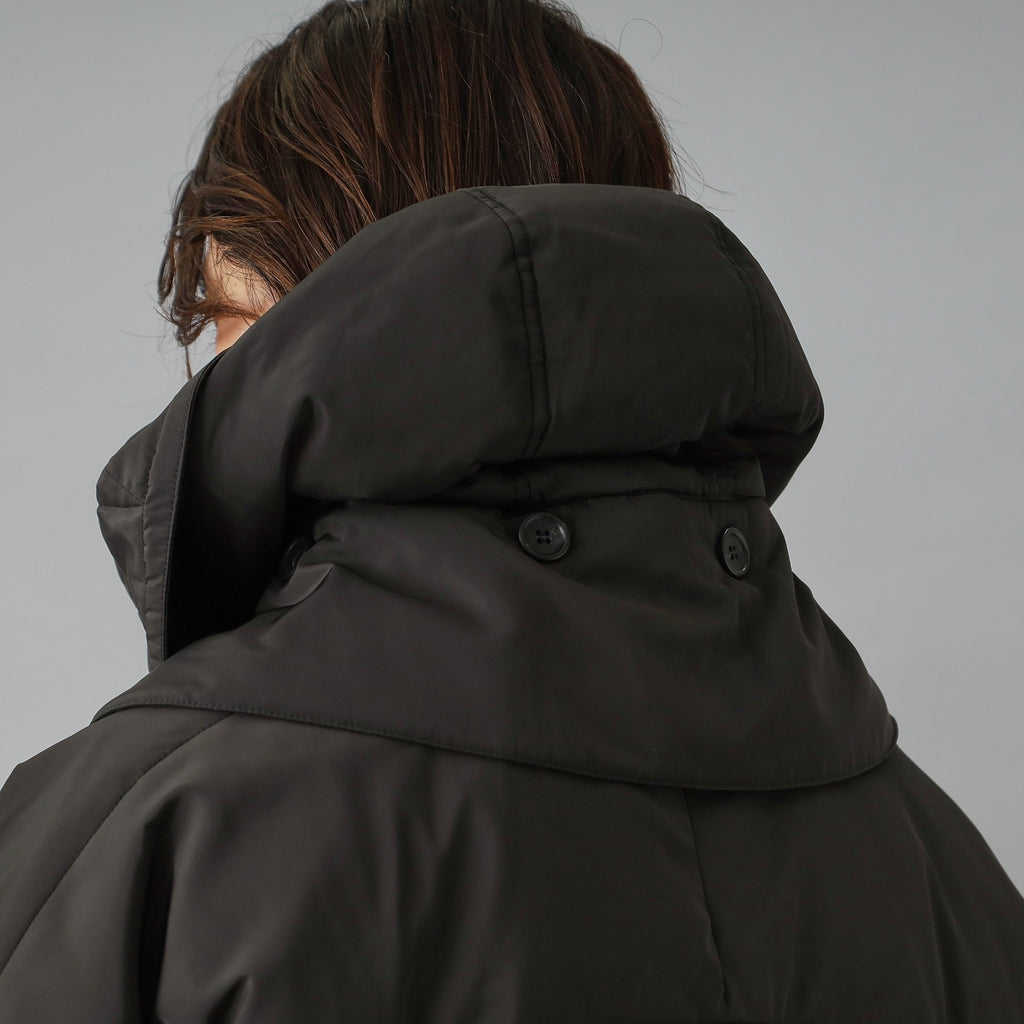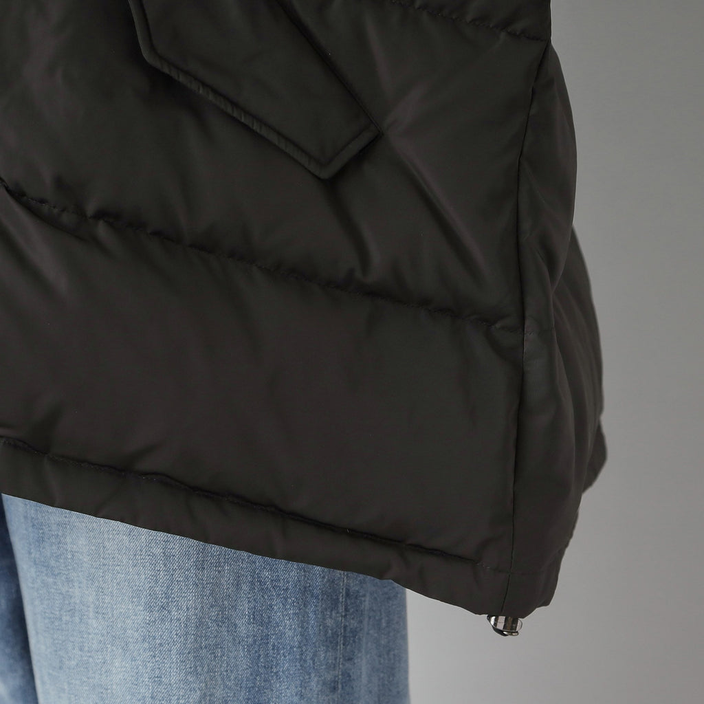 ダウンジャケット特有の肩が太く見える現象をしっかり抑えるドルマンスリーブで華奢見えするのが嬉しいポイント。