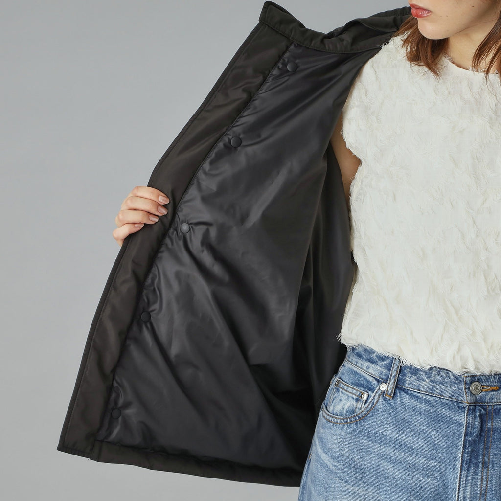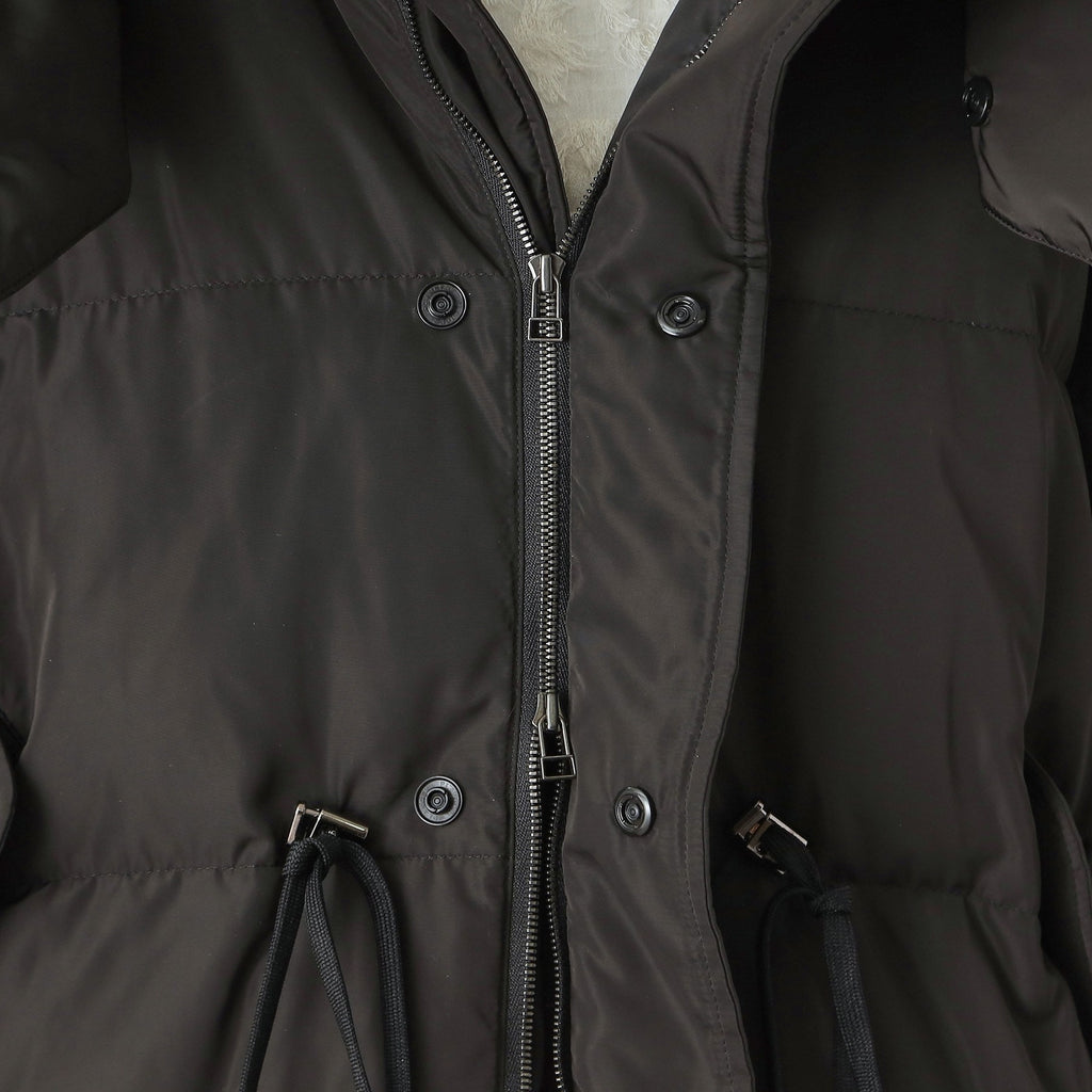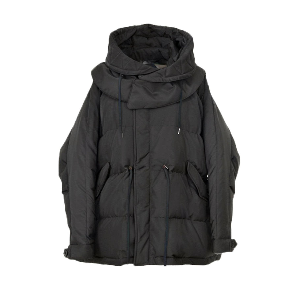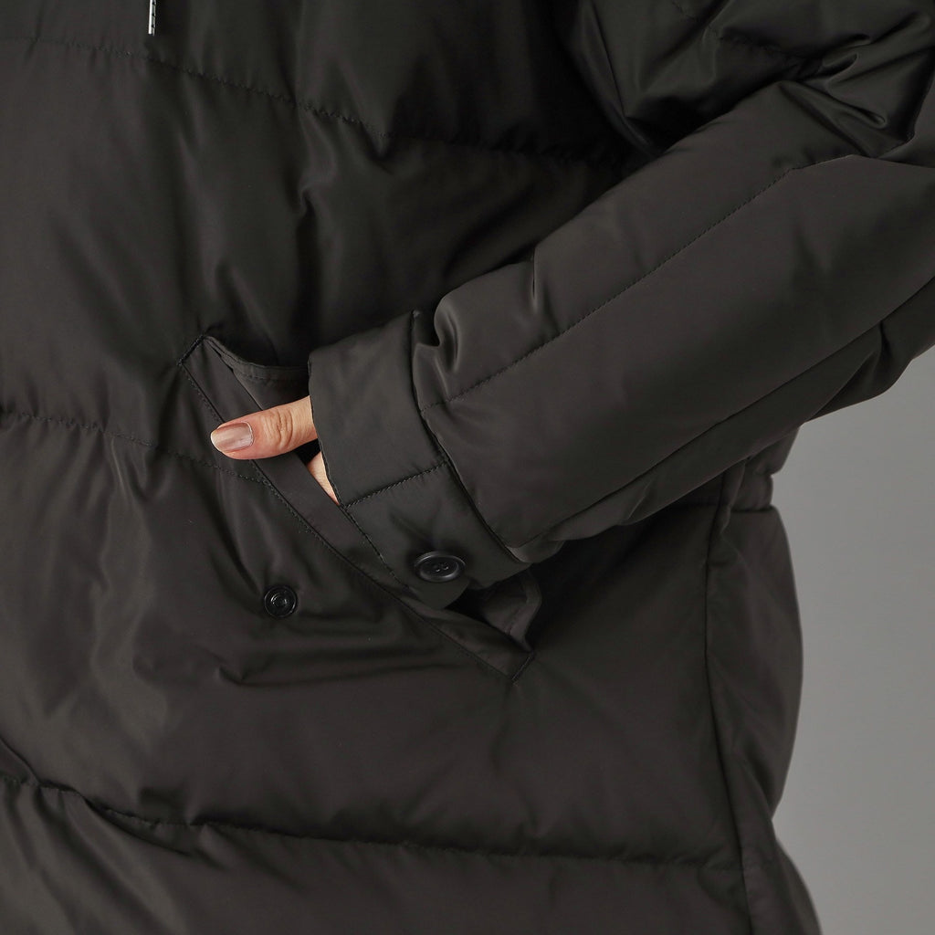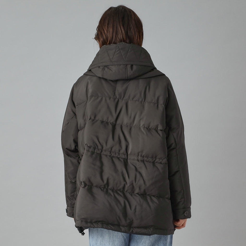 ダウンジャケット特有の肩が太く見える現象をしっかり抑えるドルマンスリーブで華奢見えするのが嬉しいポイント。
