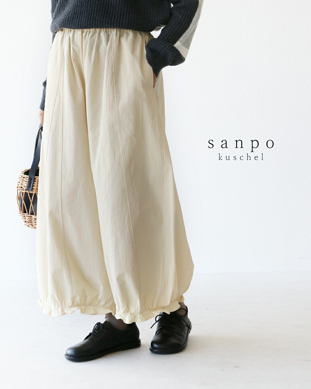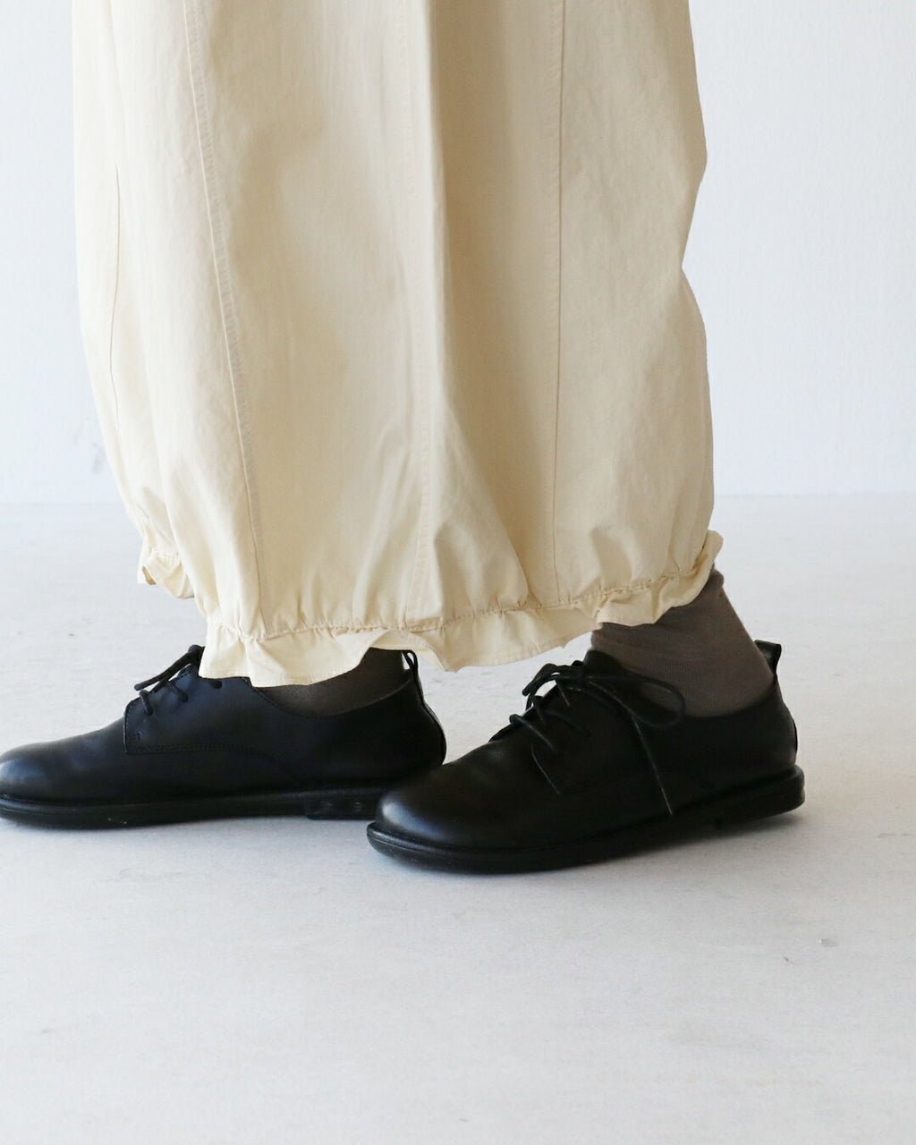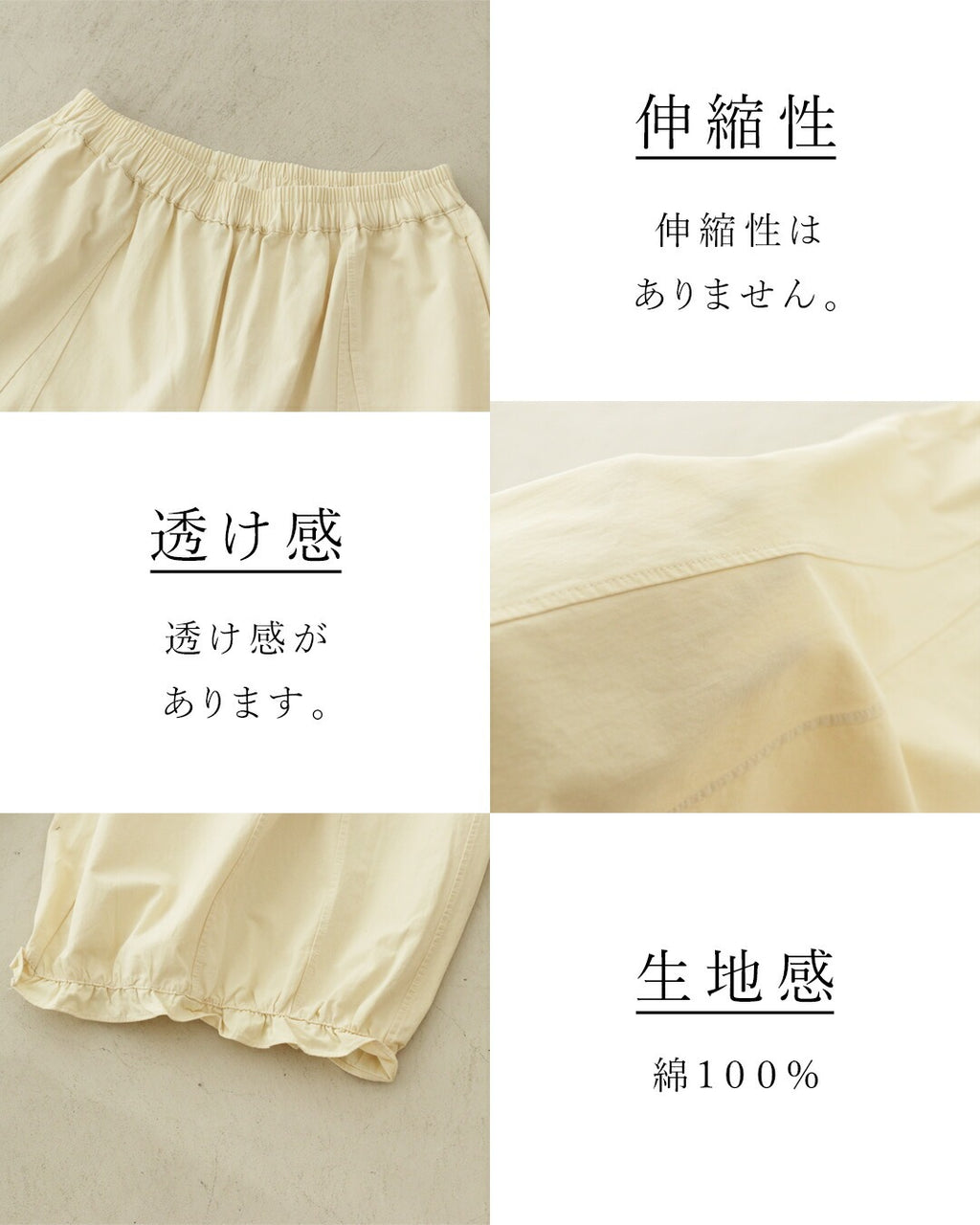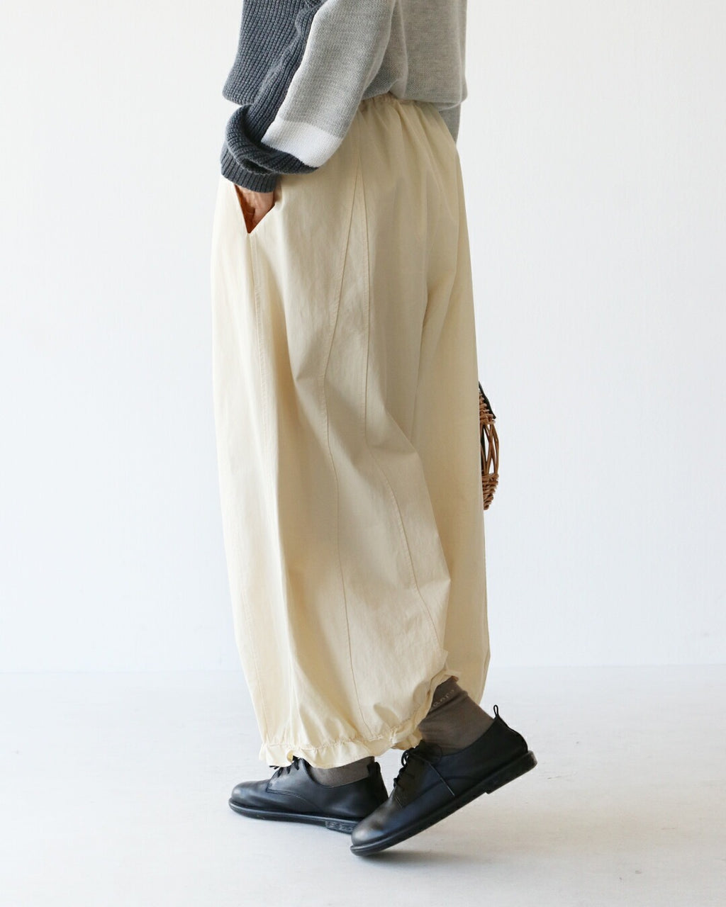 軽やかなコットン素材が心地よく、動くたびにやわらかく揺れるシルエットが印象的なパンツです。