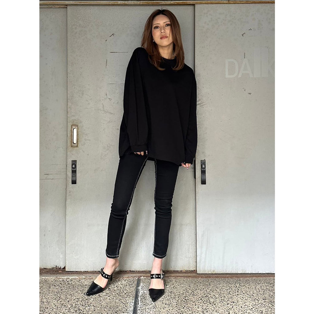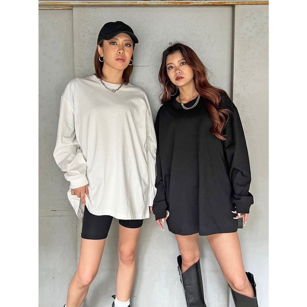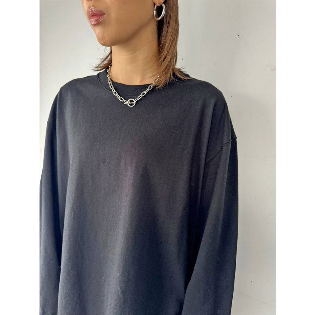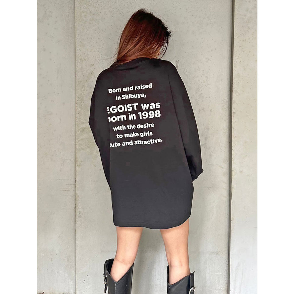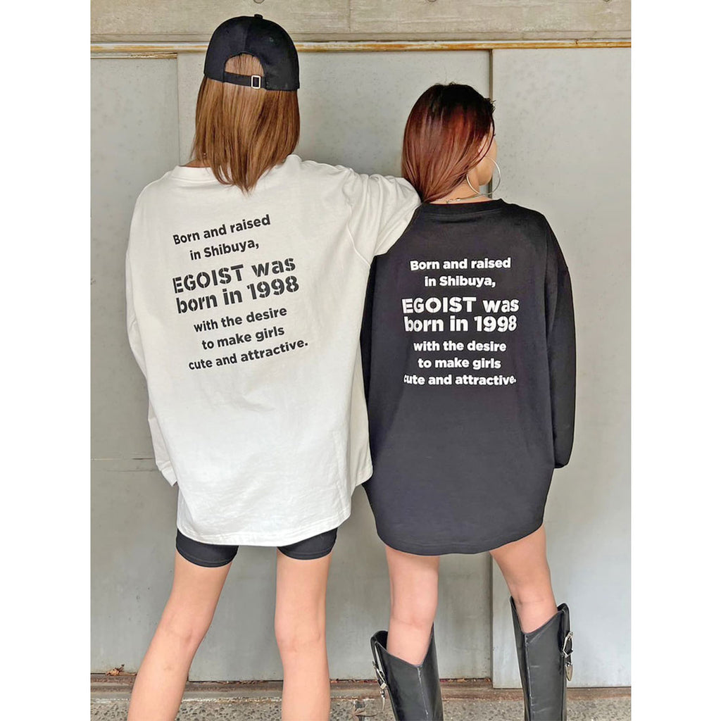Backのみモノトーンカラーでプリントを施したシンプルなロンT。