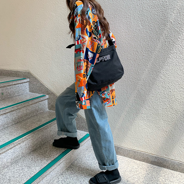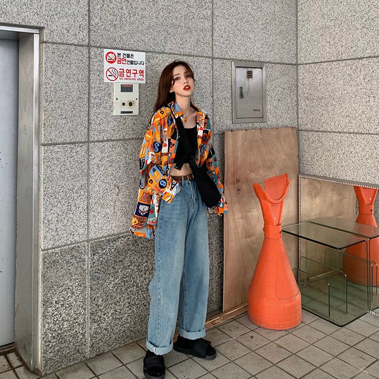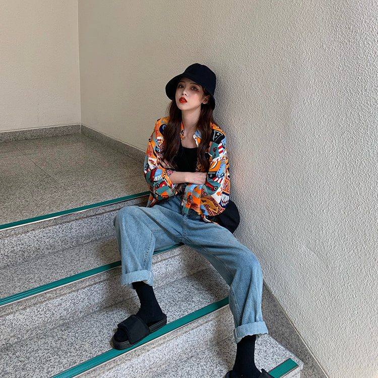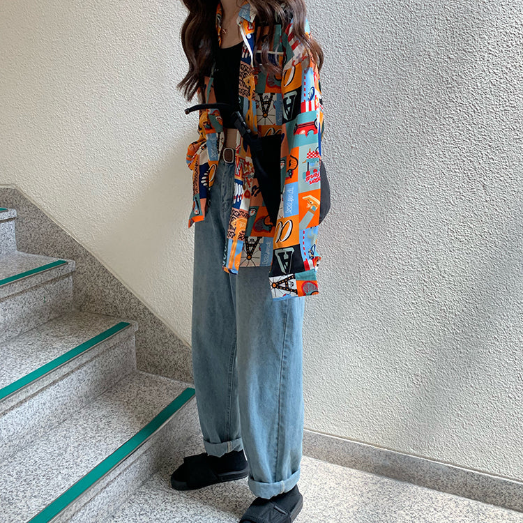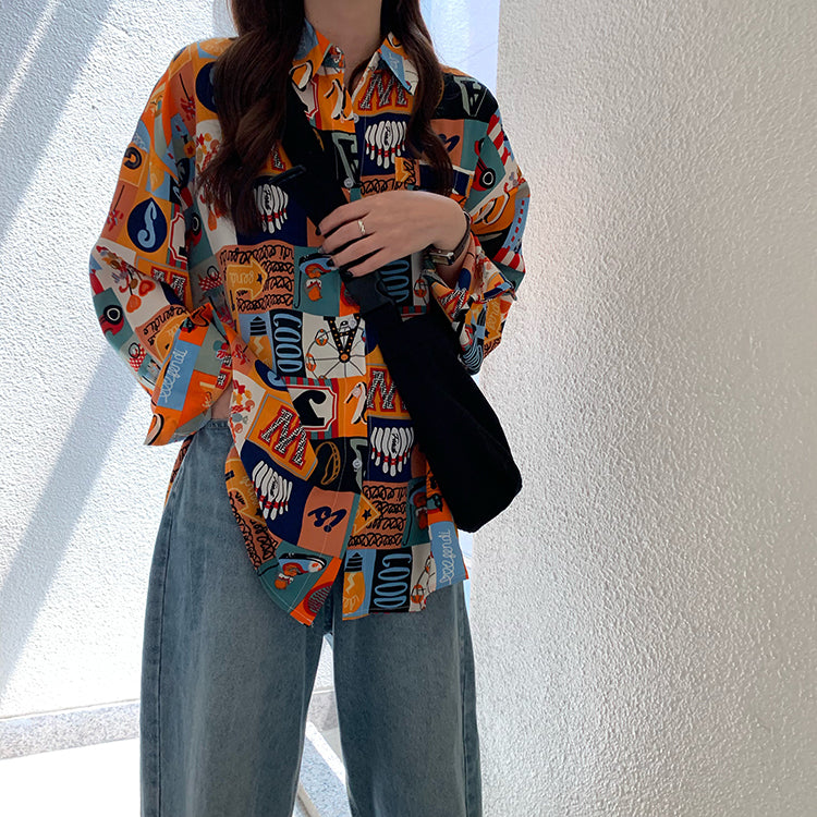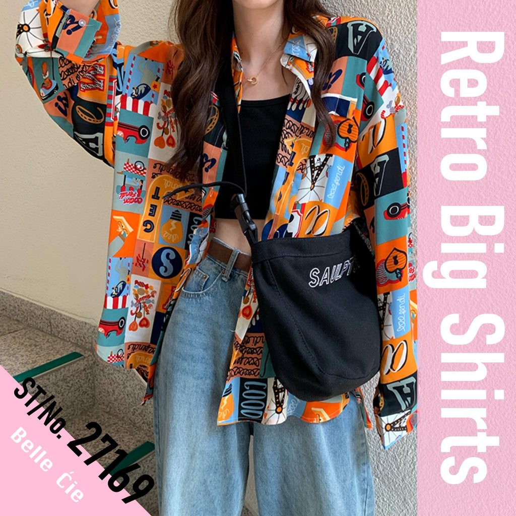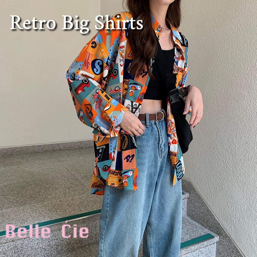 ベルシー Belle Cie レトロ柄ビッグシャツ レディース パネルプリント