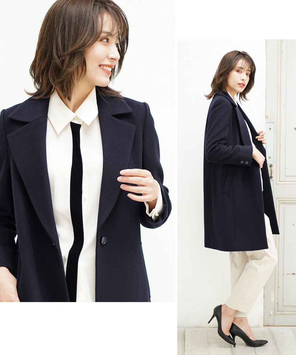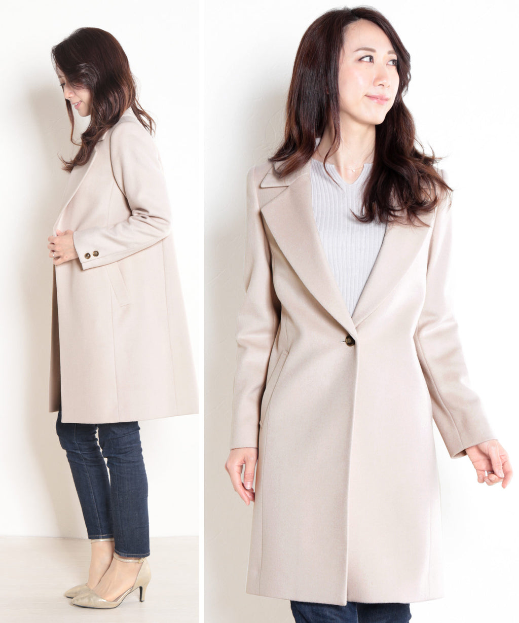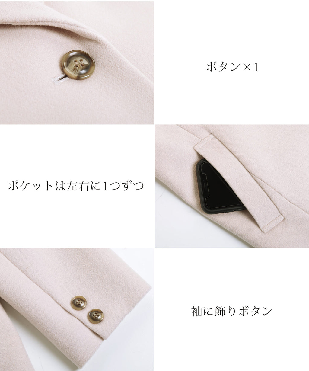 シングルボタンですっきりとしたシンプルなデザインで美しいシルエットです。
