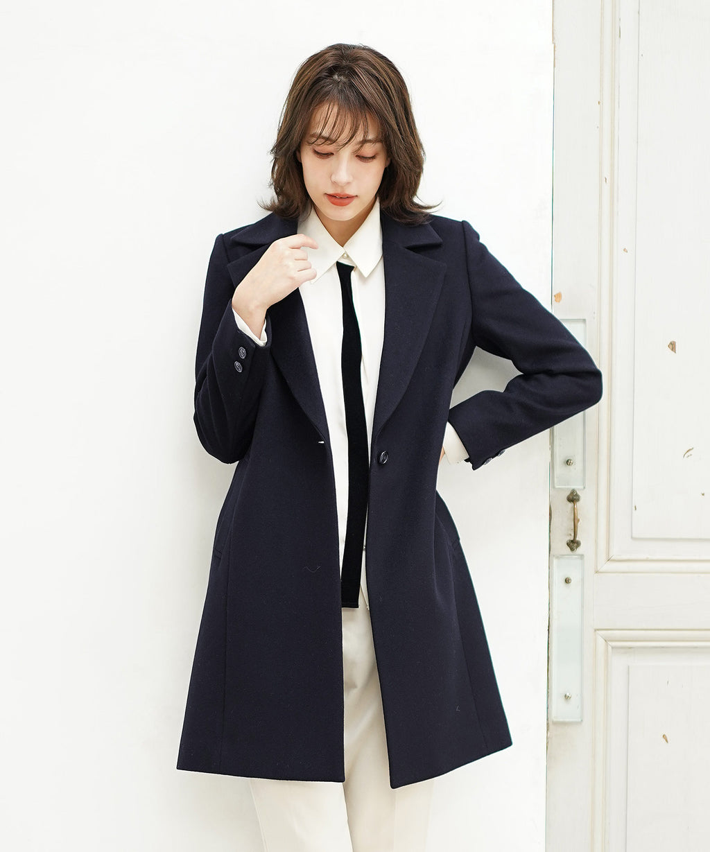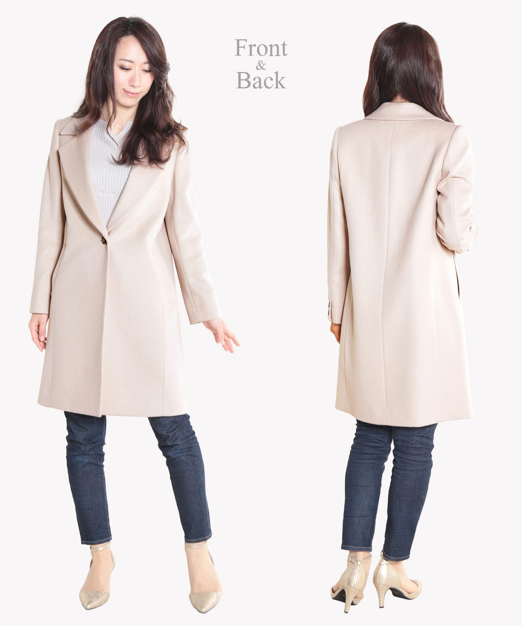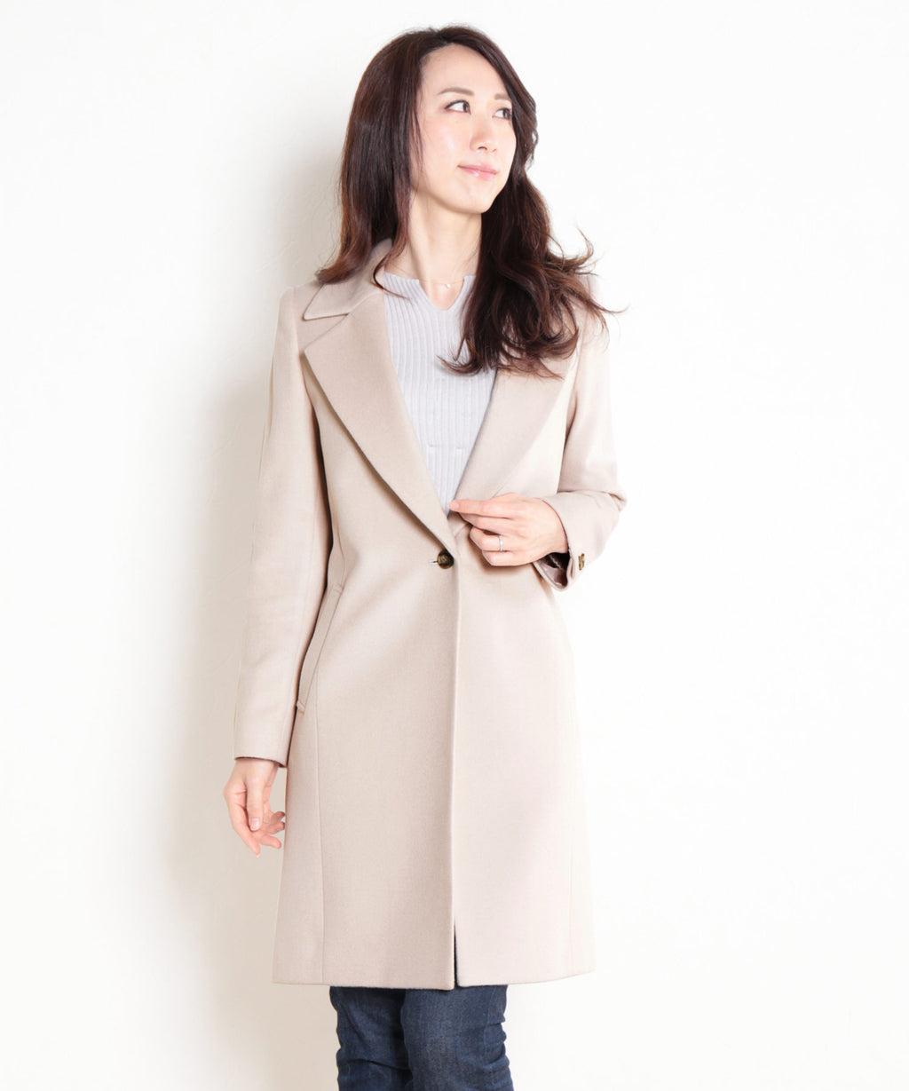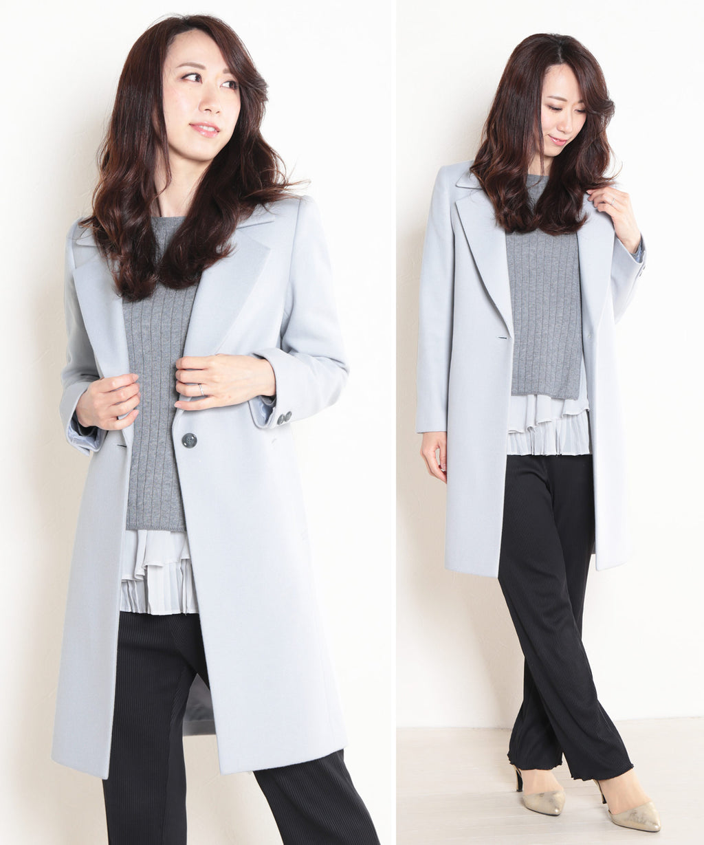 シングルボタンですっきりとしたシンプルなデザインで美しいシルエットです。