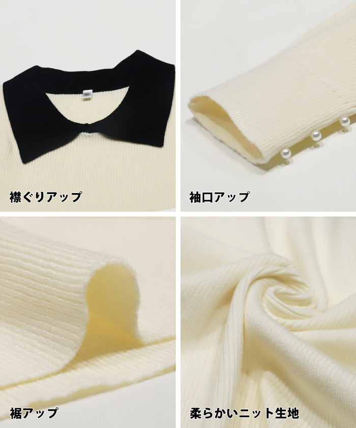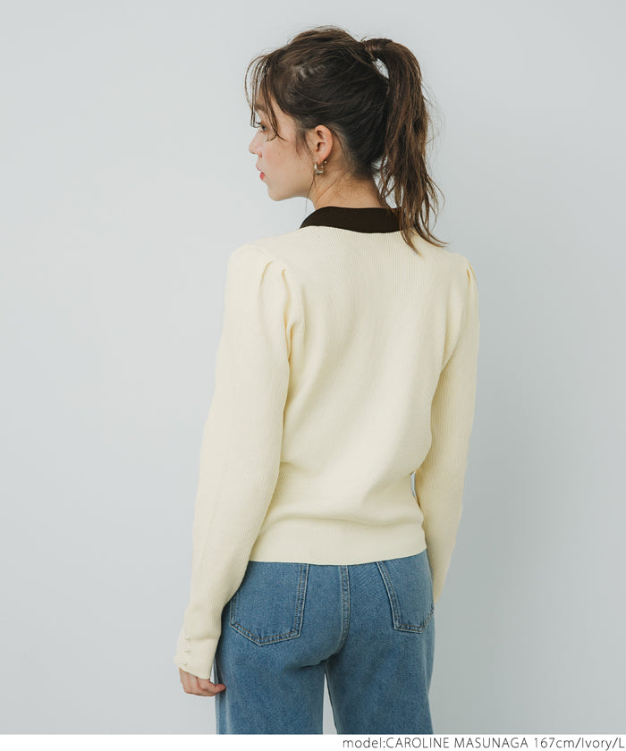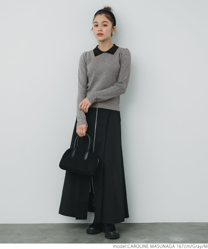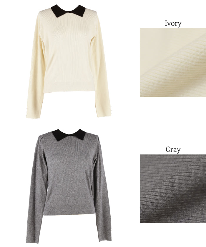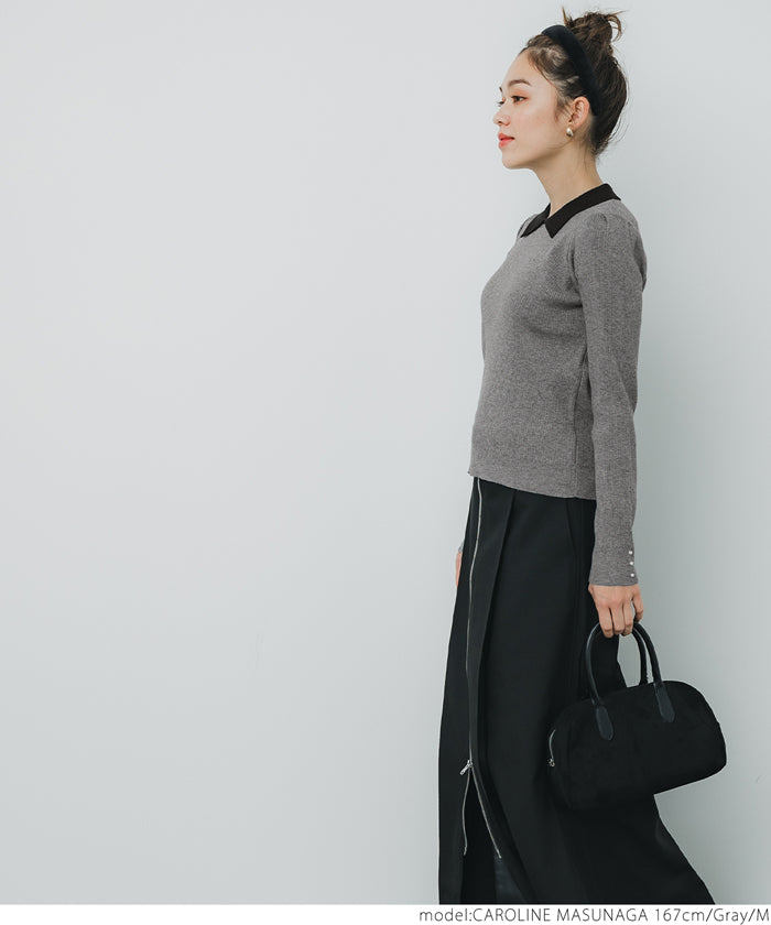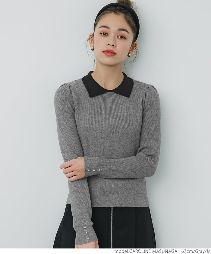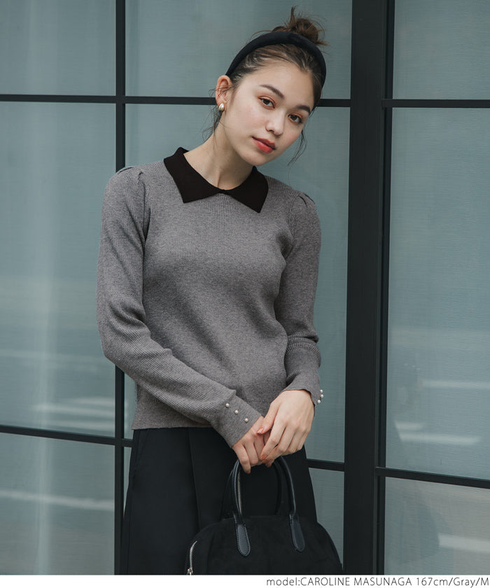 袖口にはさりげなくパールボタンが施されており、女性らしさを引き立てます。