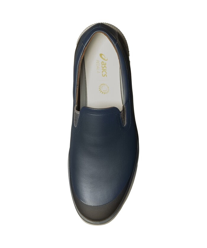 素足のような軽さと、長時間の歩行でも足への負担が少ないクッション性のよさが特長の、PEDALAシリーズ。アシックス独自の機能を搭載し、環境に配慮したカジュアルシューズです。エネルギー消費を抑えながら長く走り続ける、ランニングシューズの「エナジーセービング」機能を採用。つま先部分をカーブ形状にすることで、歩行時に足首の屈曲を減らし、足首関節のエネルギー消費を抑えて歩行効率を高めています。ソールには「ガイダンスライン」構造を採用。ソールの中央に縦に配置した溝で重心移動が安定し、スムーズな歩行をサポートします。ミッドソールには軽く耐久性のある、植物由来のセルロースナノファイバーを使用した素材であるFF BLASTを採用し、かかと部に衝撃緩衝機能GELを搭載。アウターソールには耐摩耗性に優れたAHARラバーを採用しています。アッパーは基材にリサイクル素材を用いた人工皮革を使用。クッション性に優れたハーフカップ中敷を採用。洗練されたデザインのスリッポンは、日常のさまざまなシーンで活躍するアイテム。3Eラウンドラストモデルです。