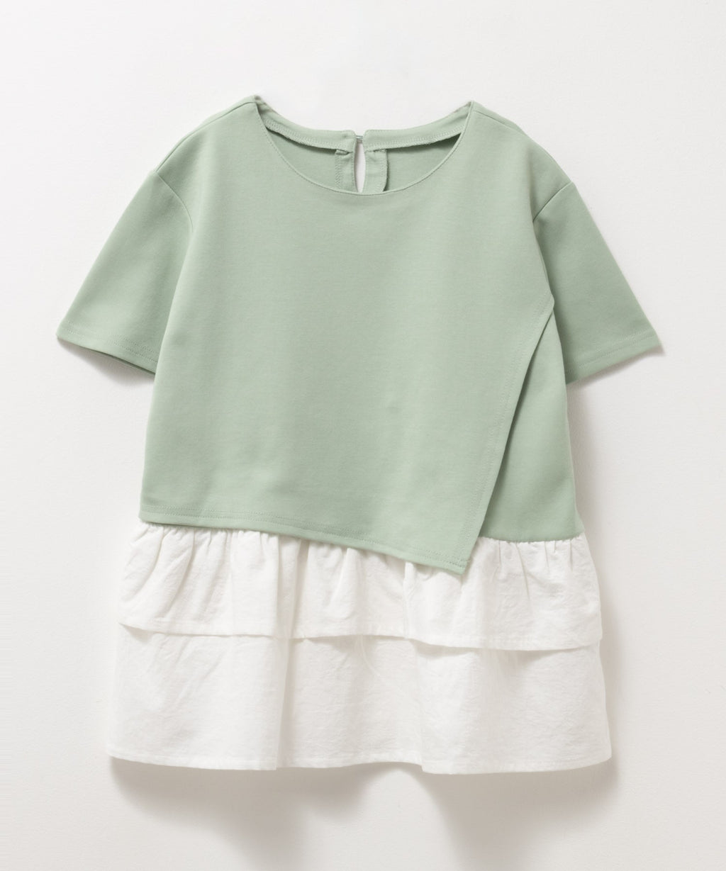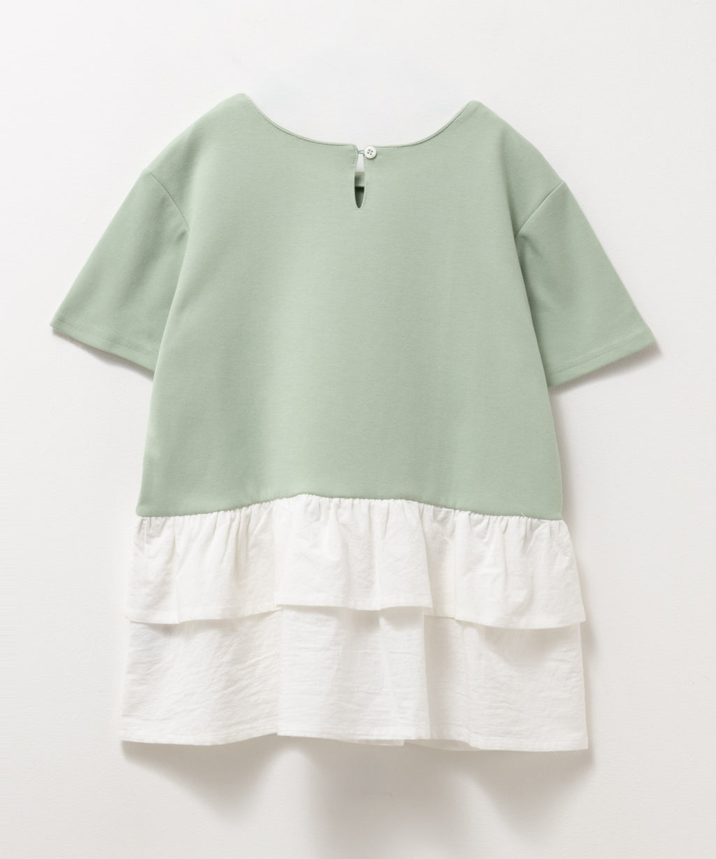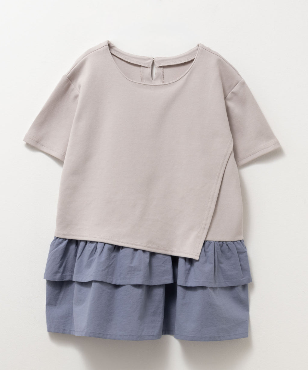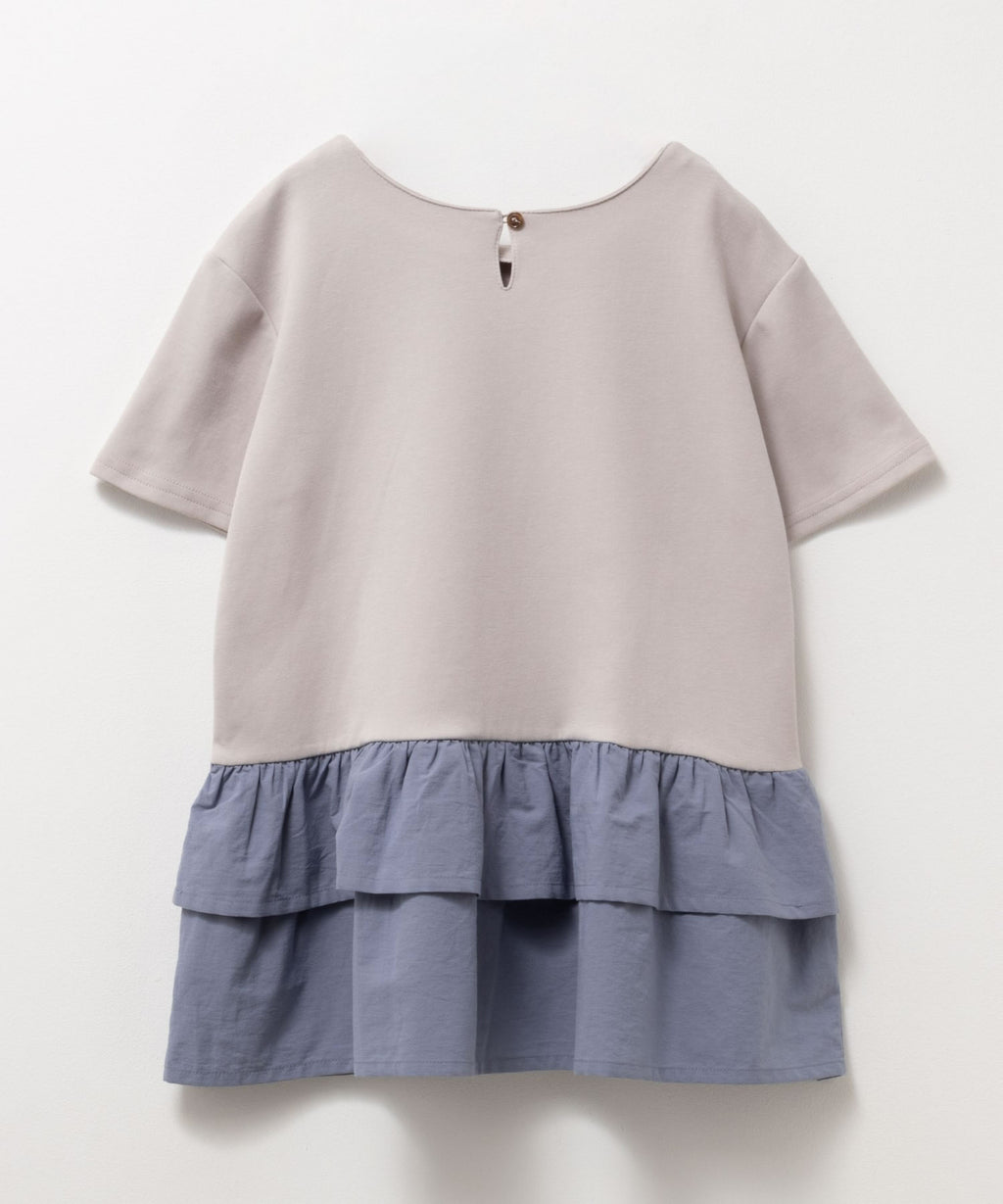 やわらかな触り心地のポンチ素材と裾の布帛を合わせたフェイクレイヤードチュニックです。