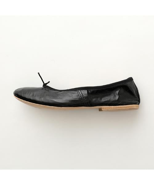 洗練された作業工程、厳選された素材の柔らかなナッパレザーでの包み込むようなフィット感、一度履くと手放せなくなる心地良さの『BALLERINE』は最もスタンダードなバレエシューズです。足先についているリボンは、履き口にぐるっと入っているので自分の足に合わせてサイズの微調整も可能。