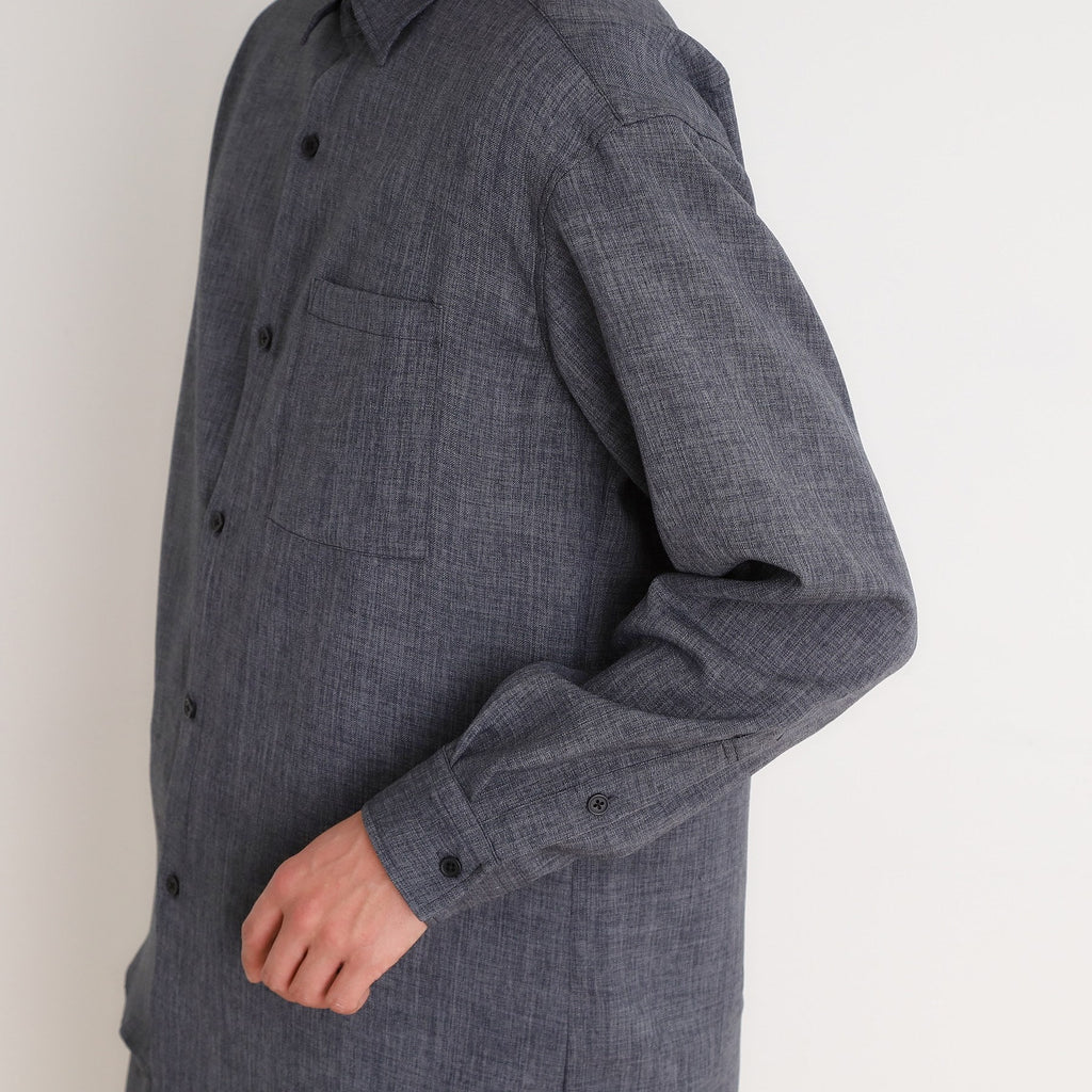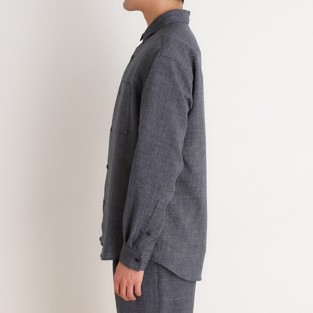やや薄手でさっくりとした表情とソフトでありながら、肌離れの良いドライさが特徴のシャツです。