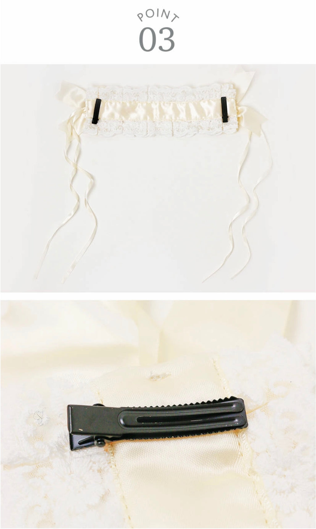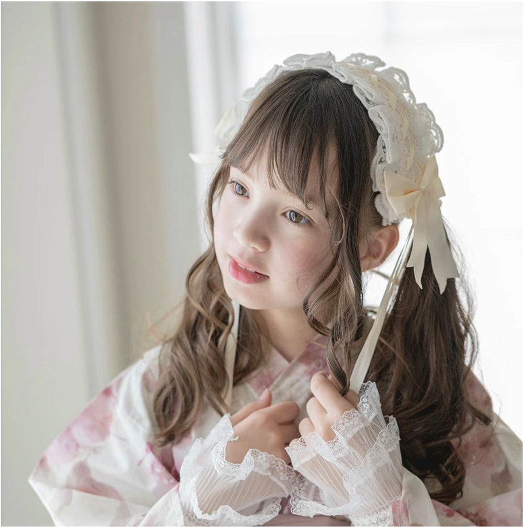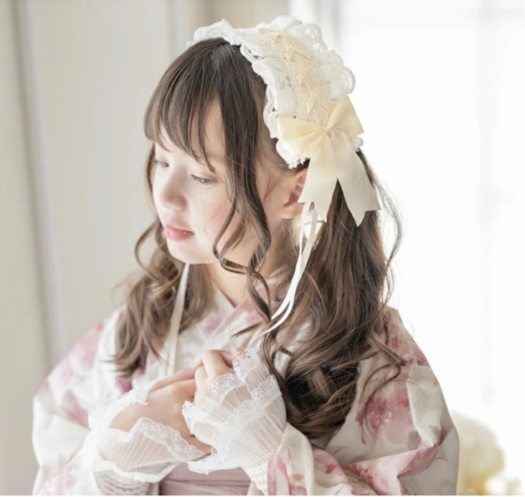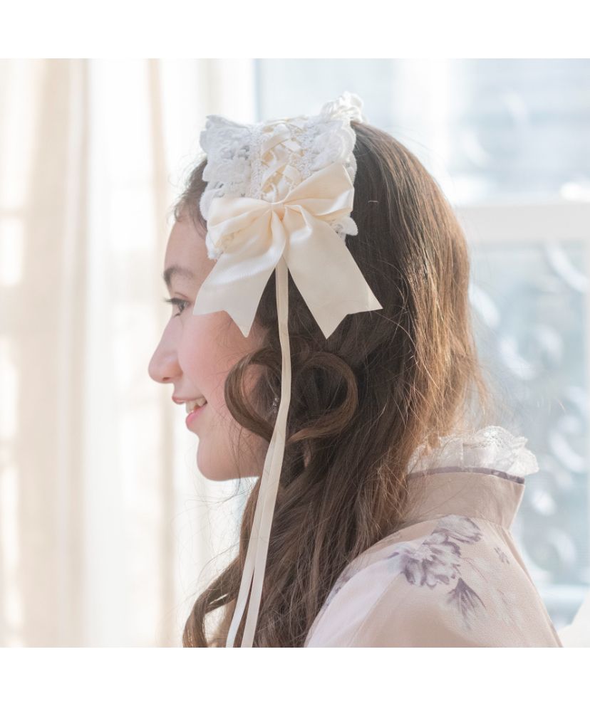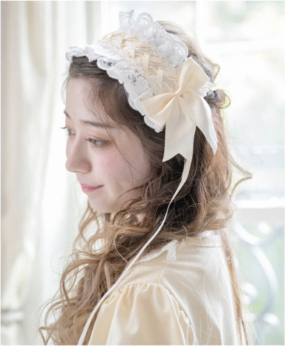 レースとリボンをたっぷりと使ったドーリーなヘッドドレスは、
