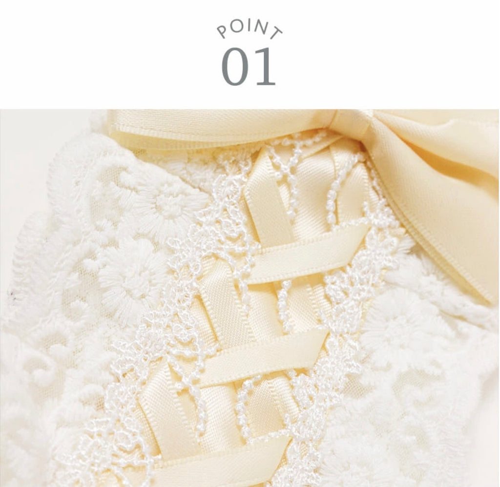 - たっぷりのレースに編み上げリボンで、存在感のあるデザイン