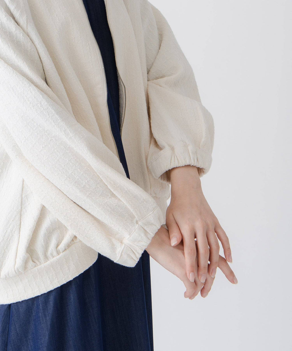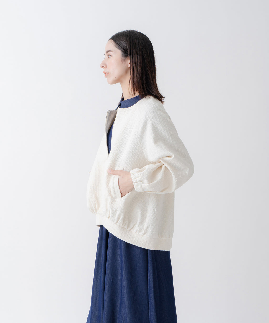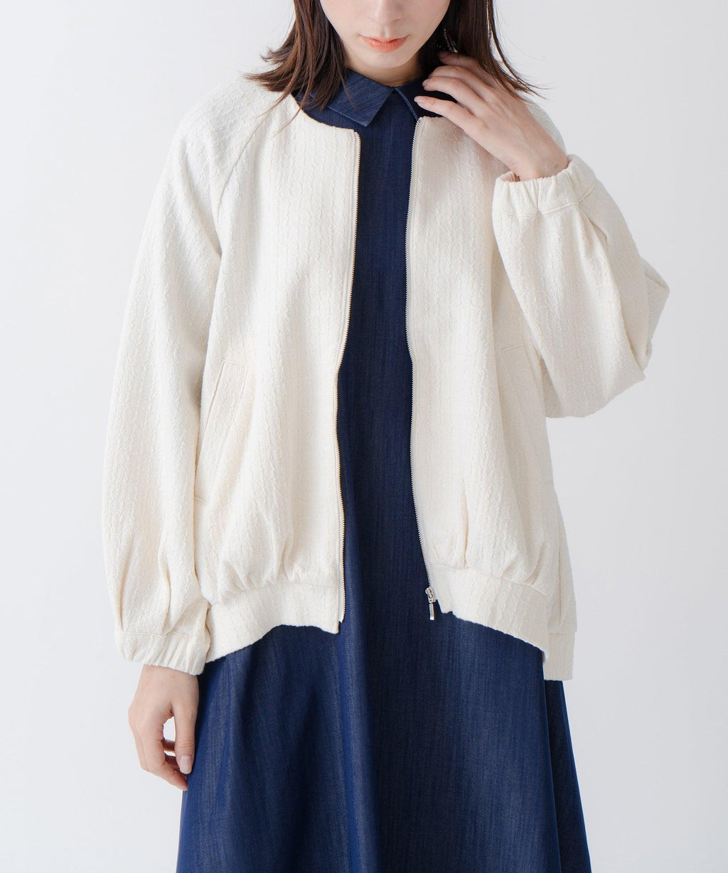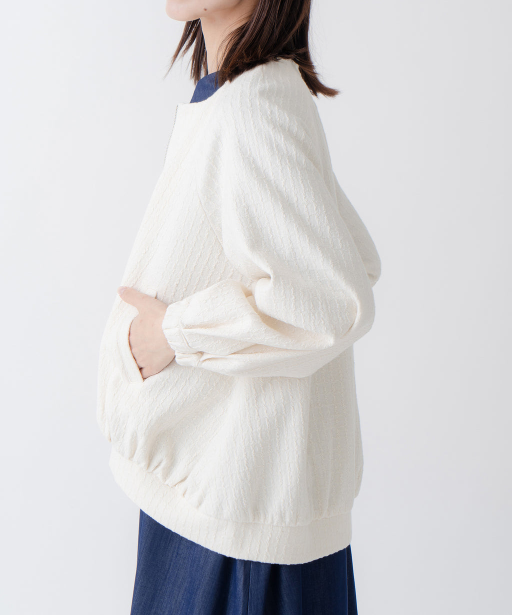 ・変化のあるジャガード素材を使用し、プレーンなインナーと合わせても異素材感がおしゃれな印象にスタイリングが楽しめるのがポイント。