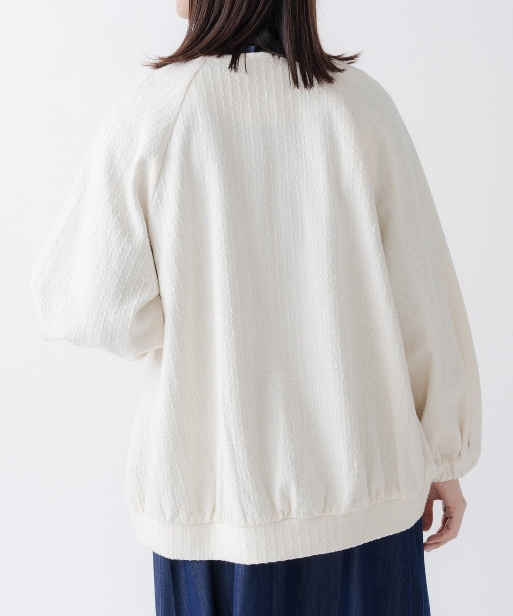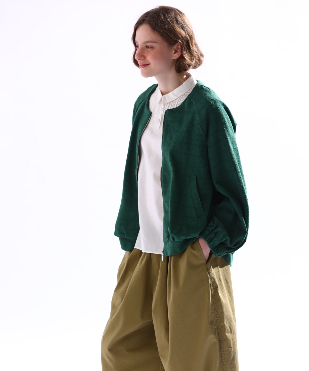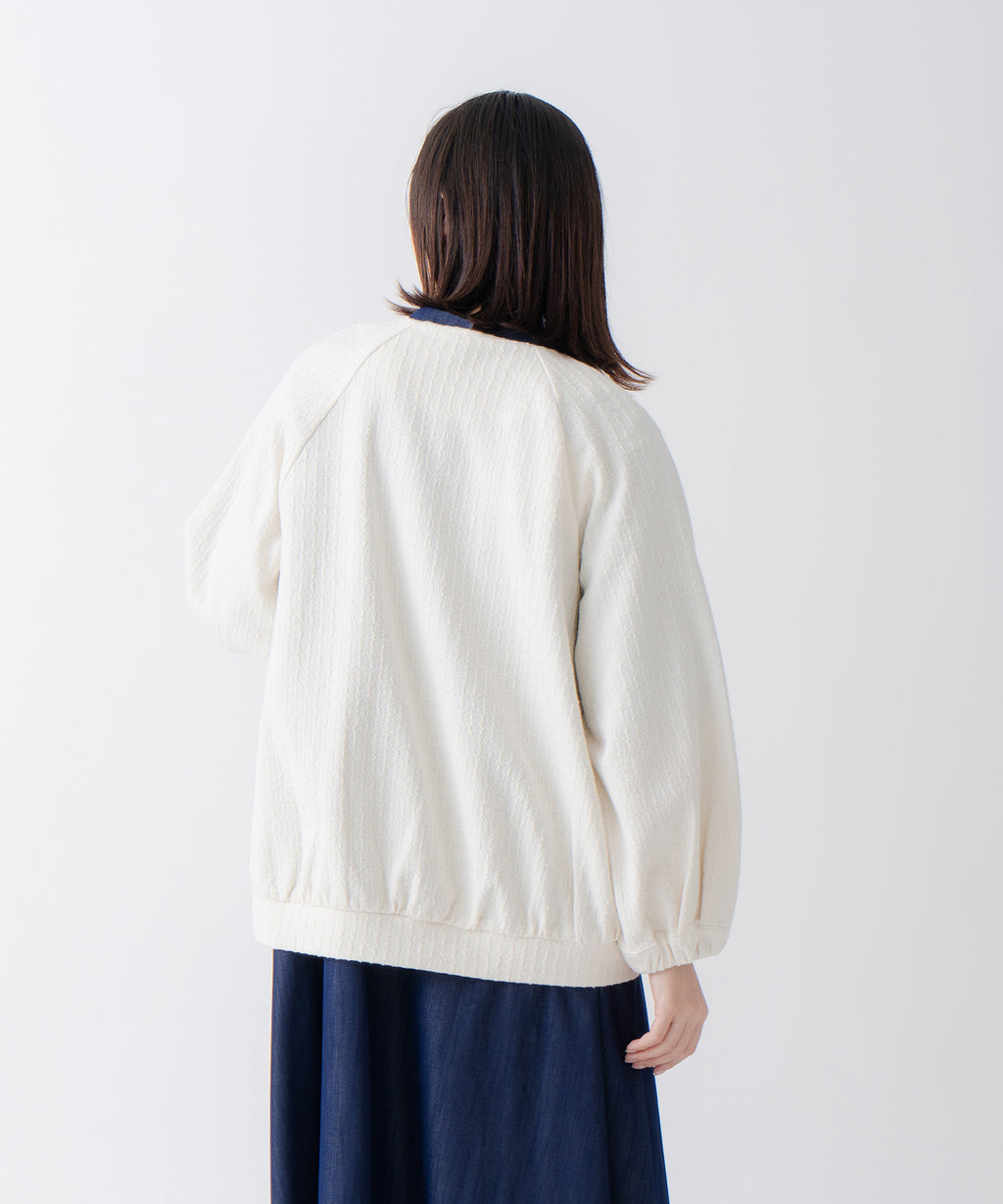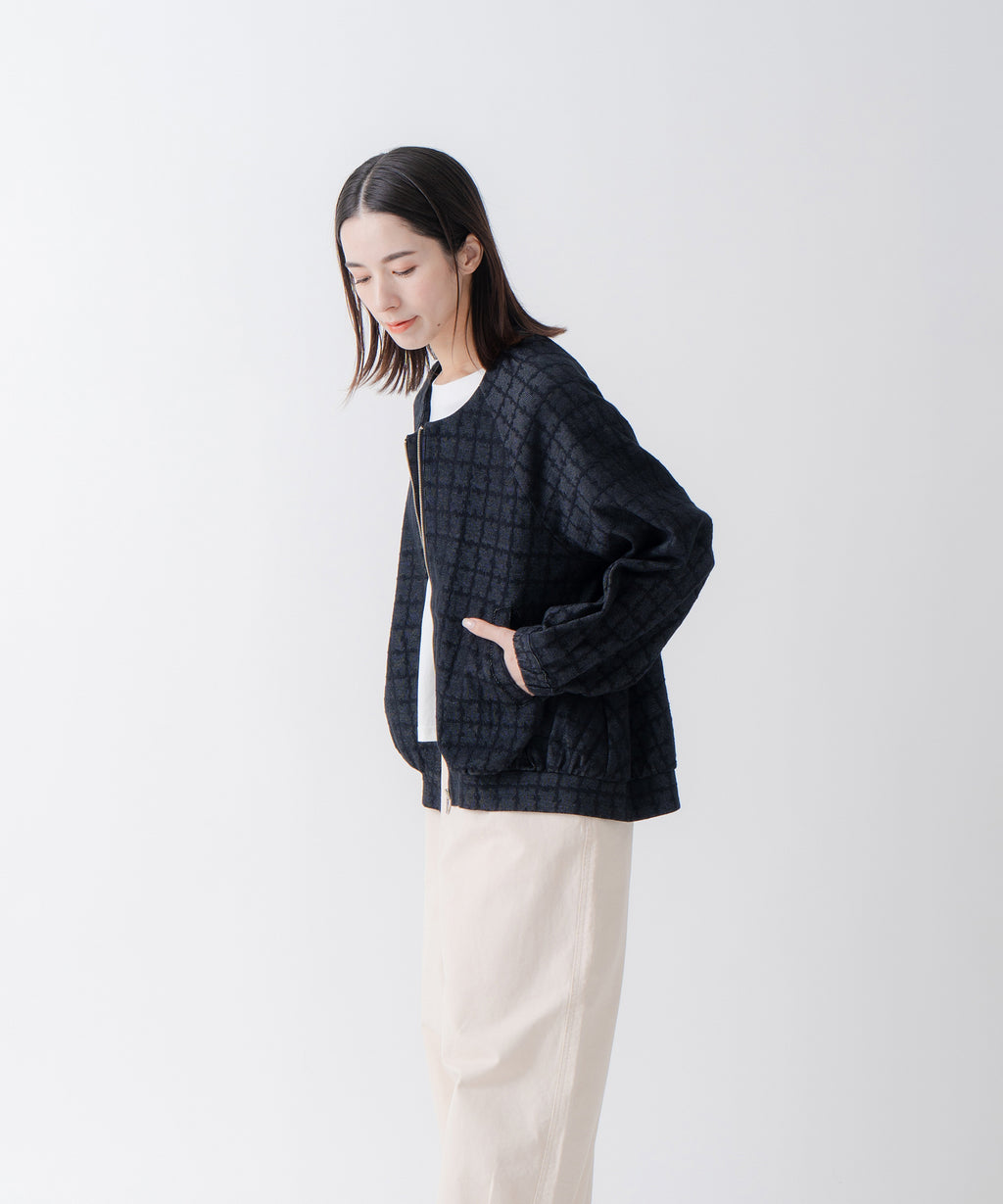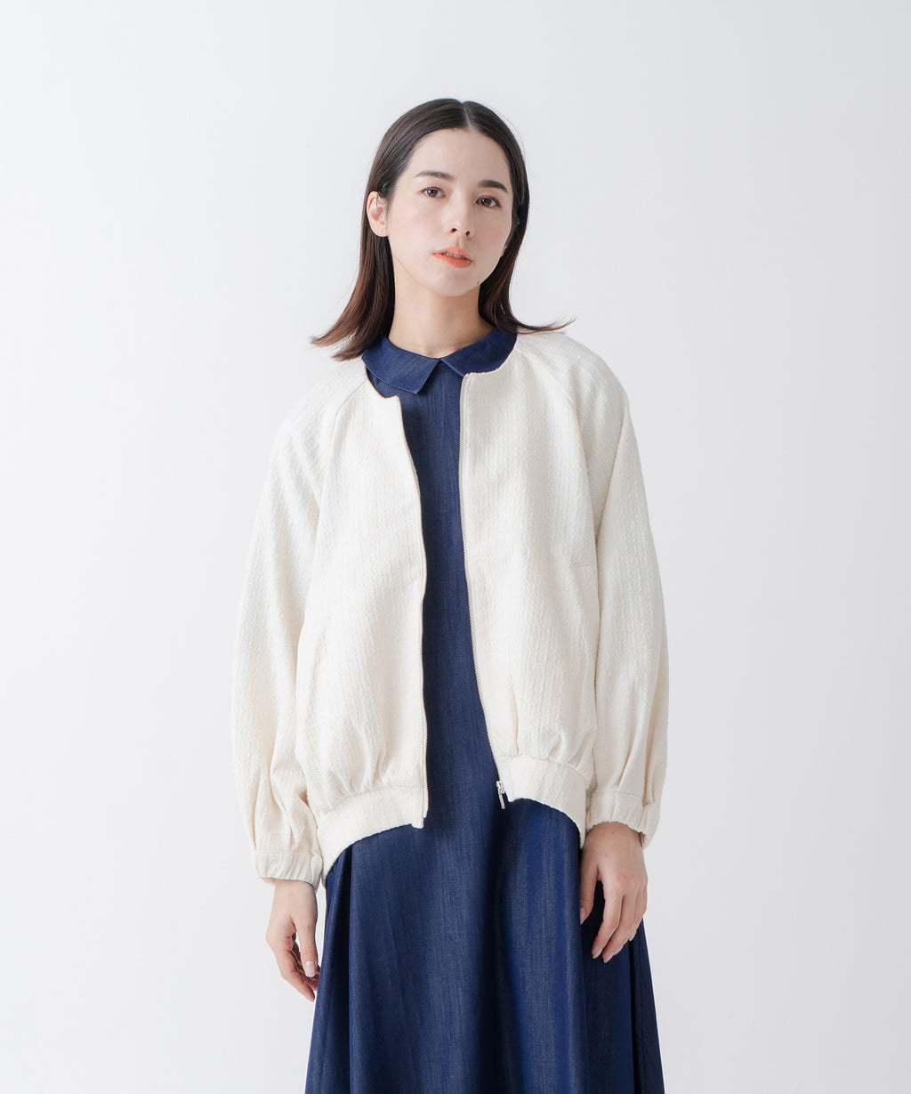 ・変化のあるジャガード素材を使用し、プレーンなインナーと合わせても異素材感がおしゃれな印象にスタイリングが楽しめるのがポイント。