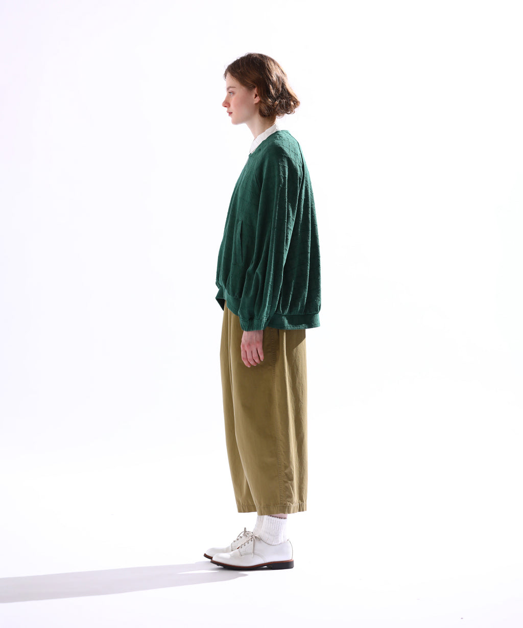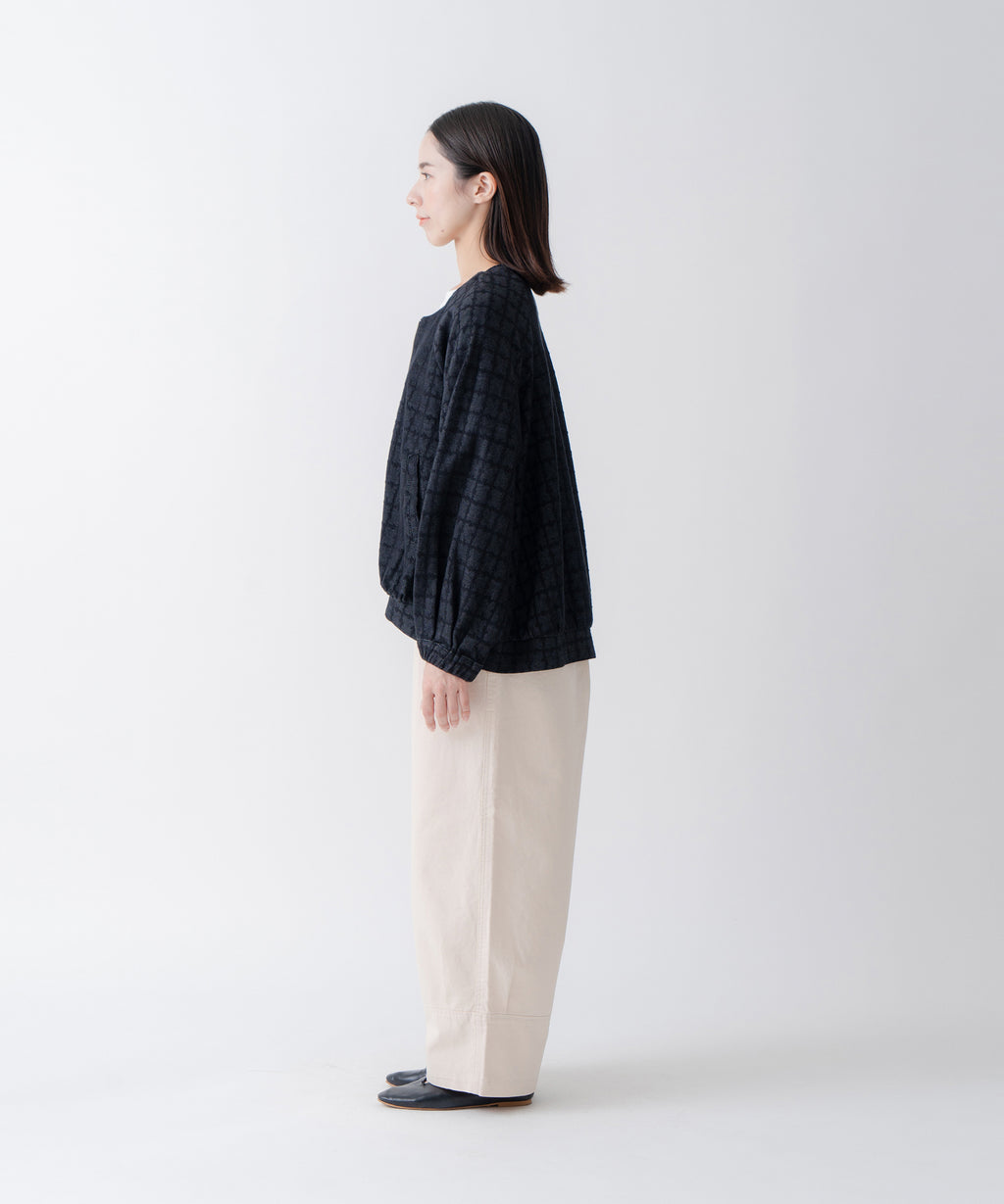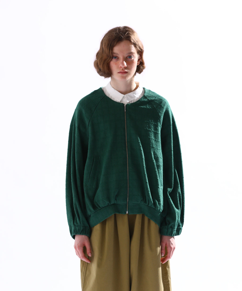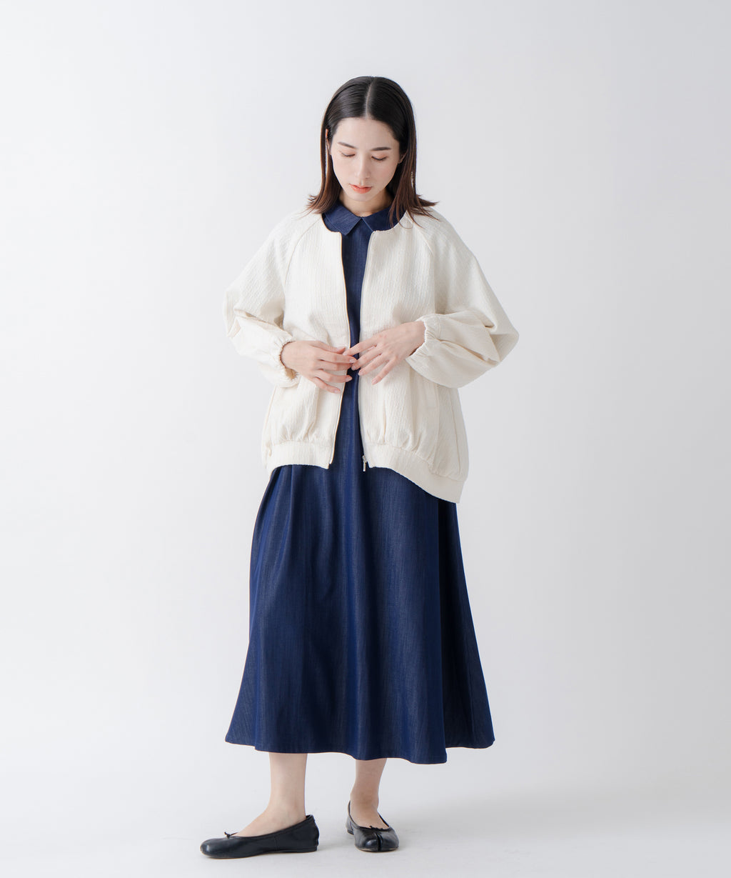 ・変化のあるジャガード素材を使用し、プレーンなインナーと合わせても異素材感がおしゃれな印象にスタイリングが楽しめるのがポイント。