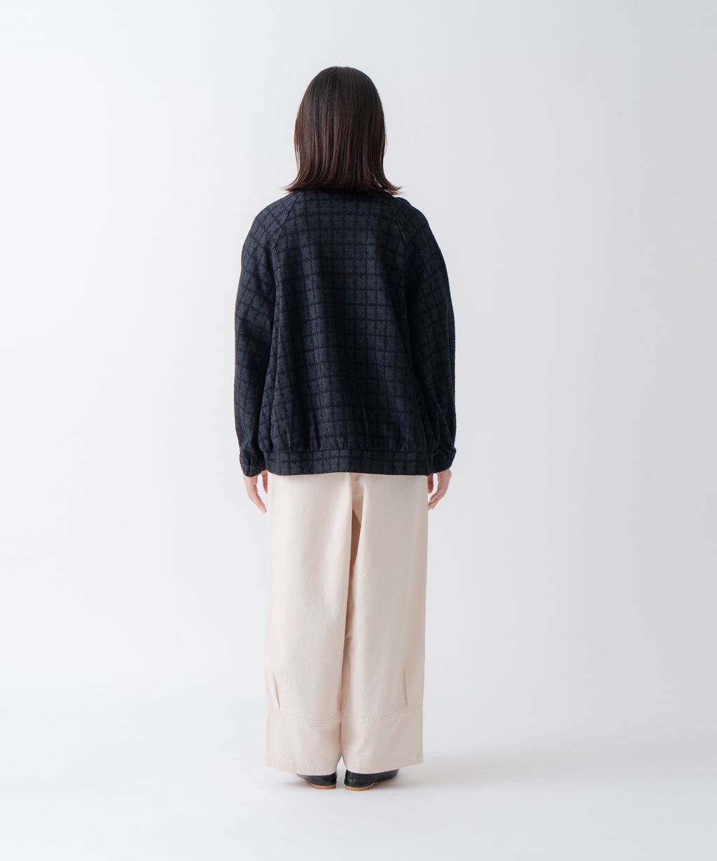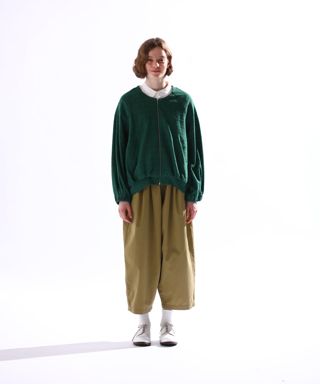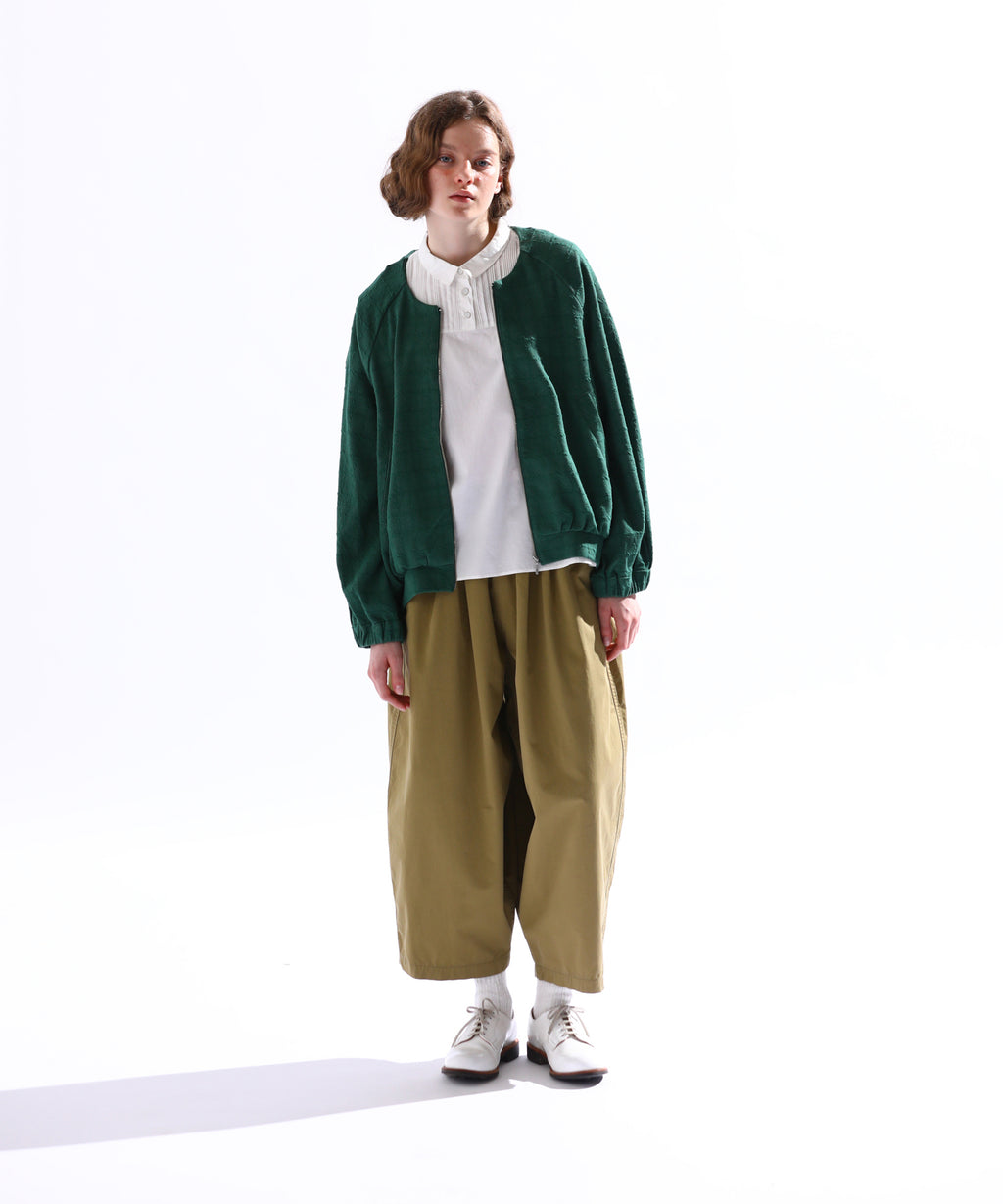・ラグランスリーブのノーカラージャケットは中のインナーを選ばず重宝すること間違いなし。