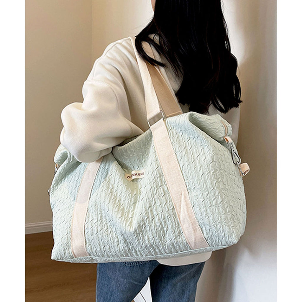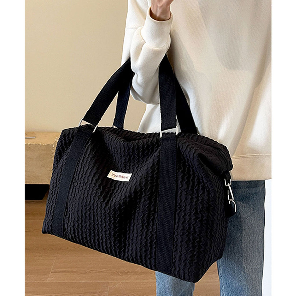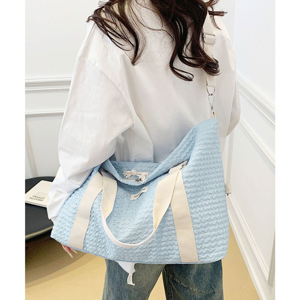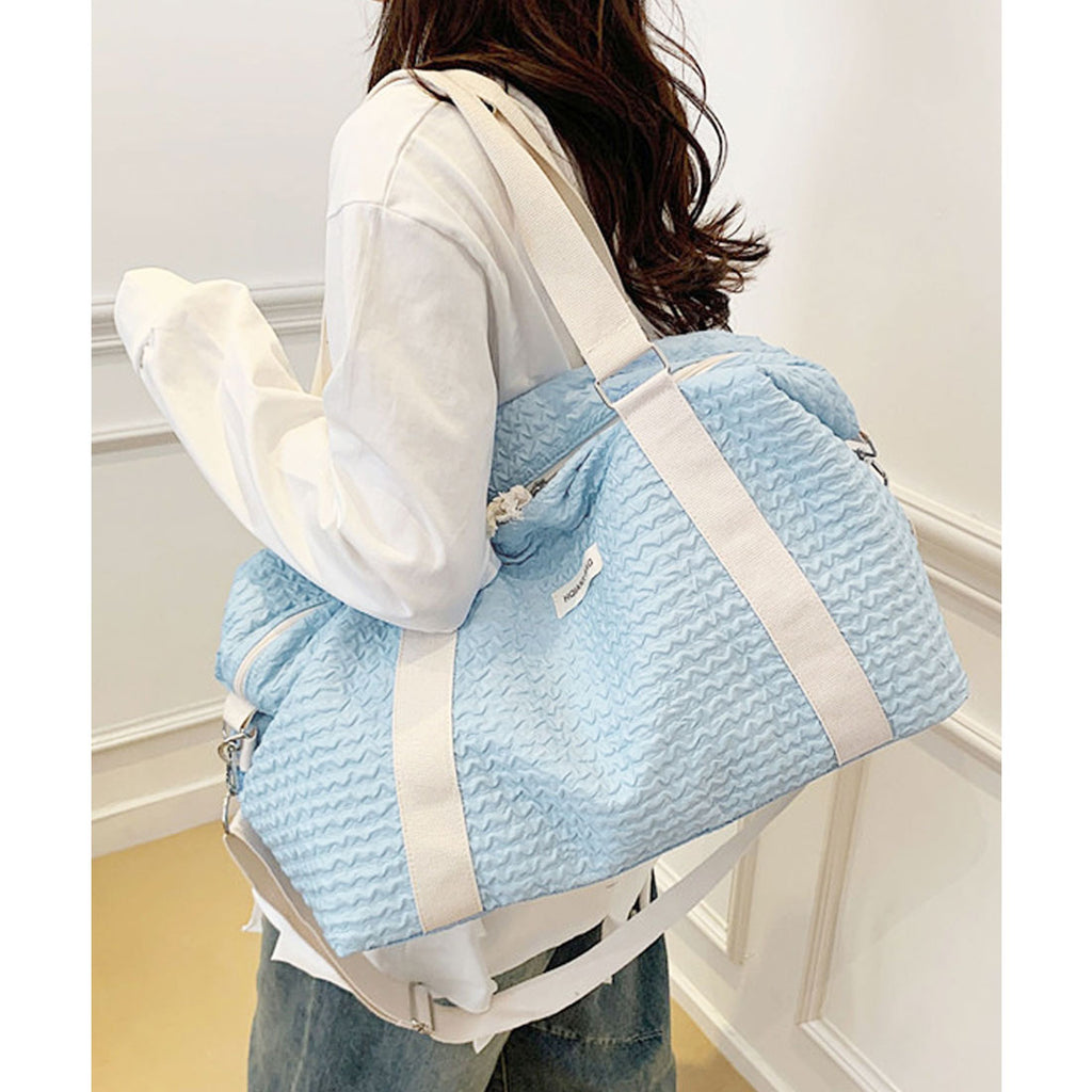ふくれジャガード配色ボストンバッグ/トラベルバッグ/ショルダーバッグ。