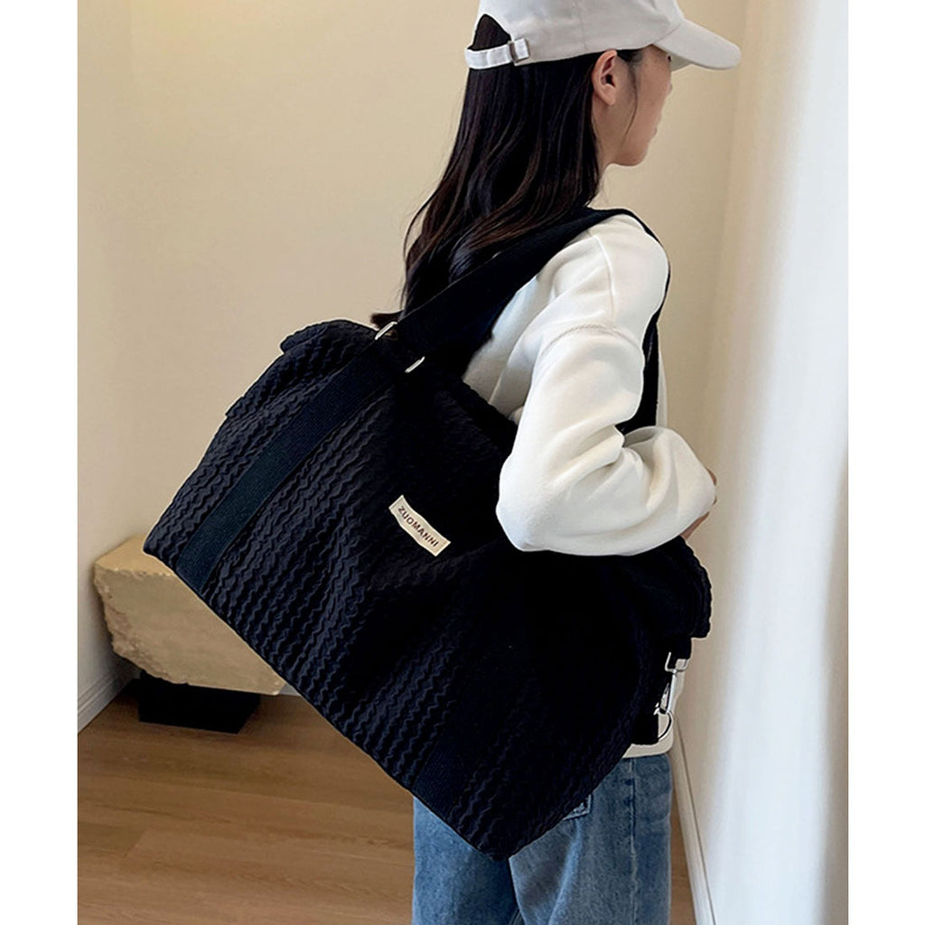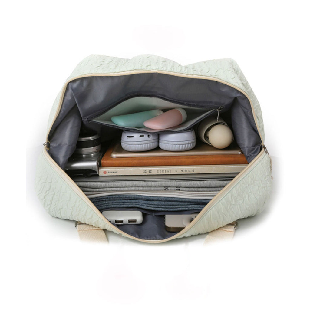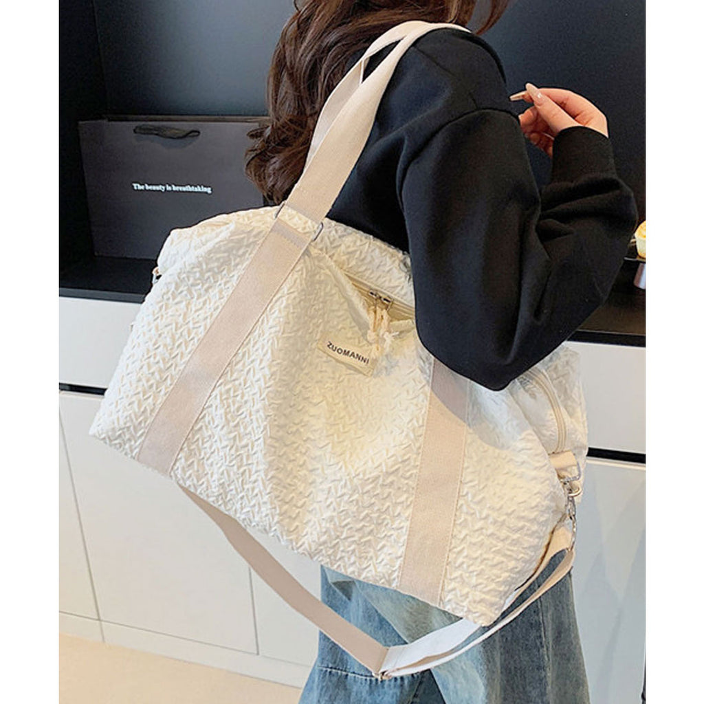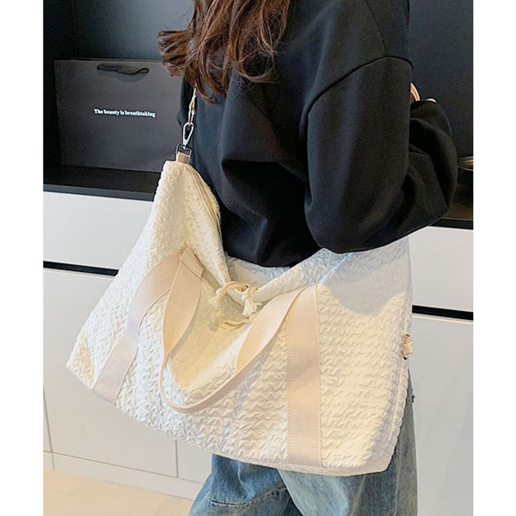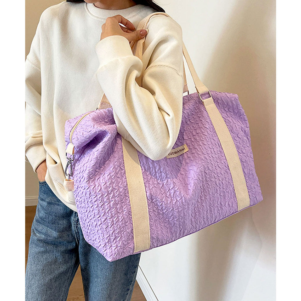 ふくれジャガード配色ボストンバッグ/トラベルバッグ/ショルダーバッグ。