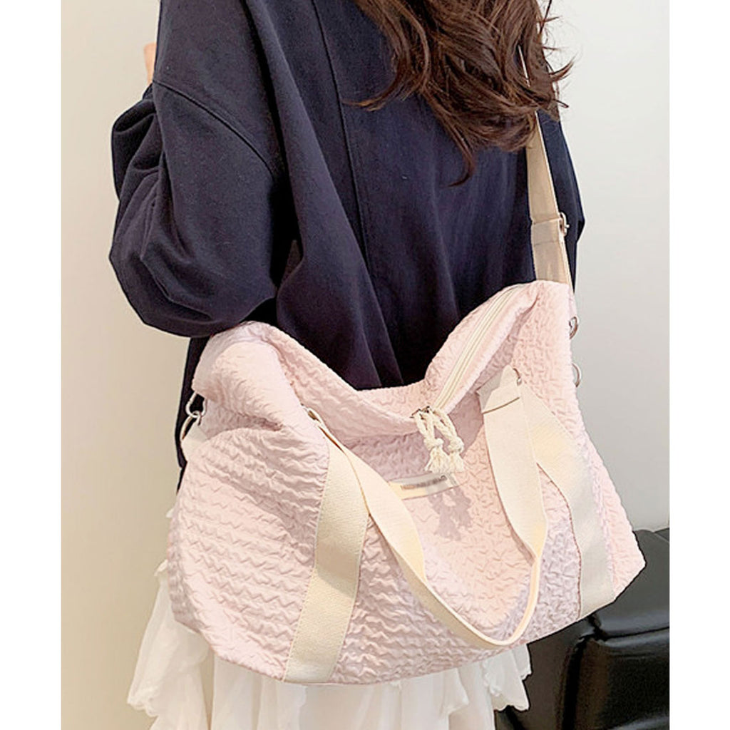 【軽量/撥水加工/ぷくぷく凹凸感がかわいい♪ボストンバッグ/ショルダーバッグ/旅行バッグ】